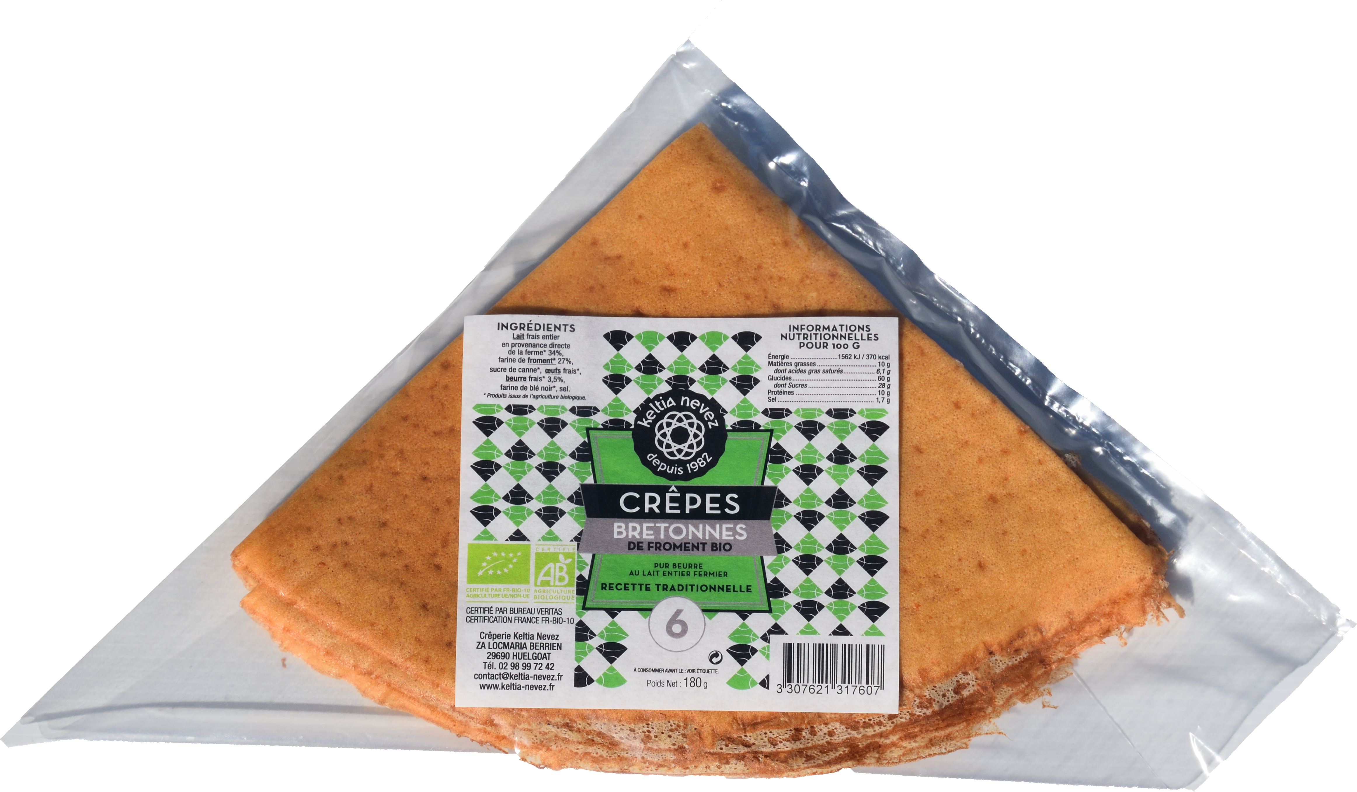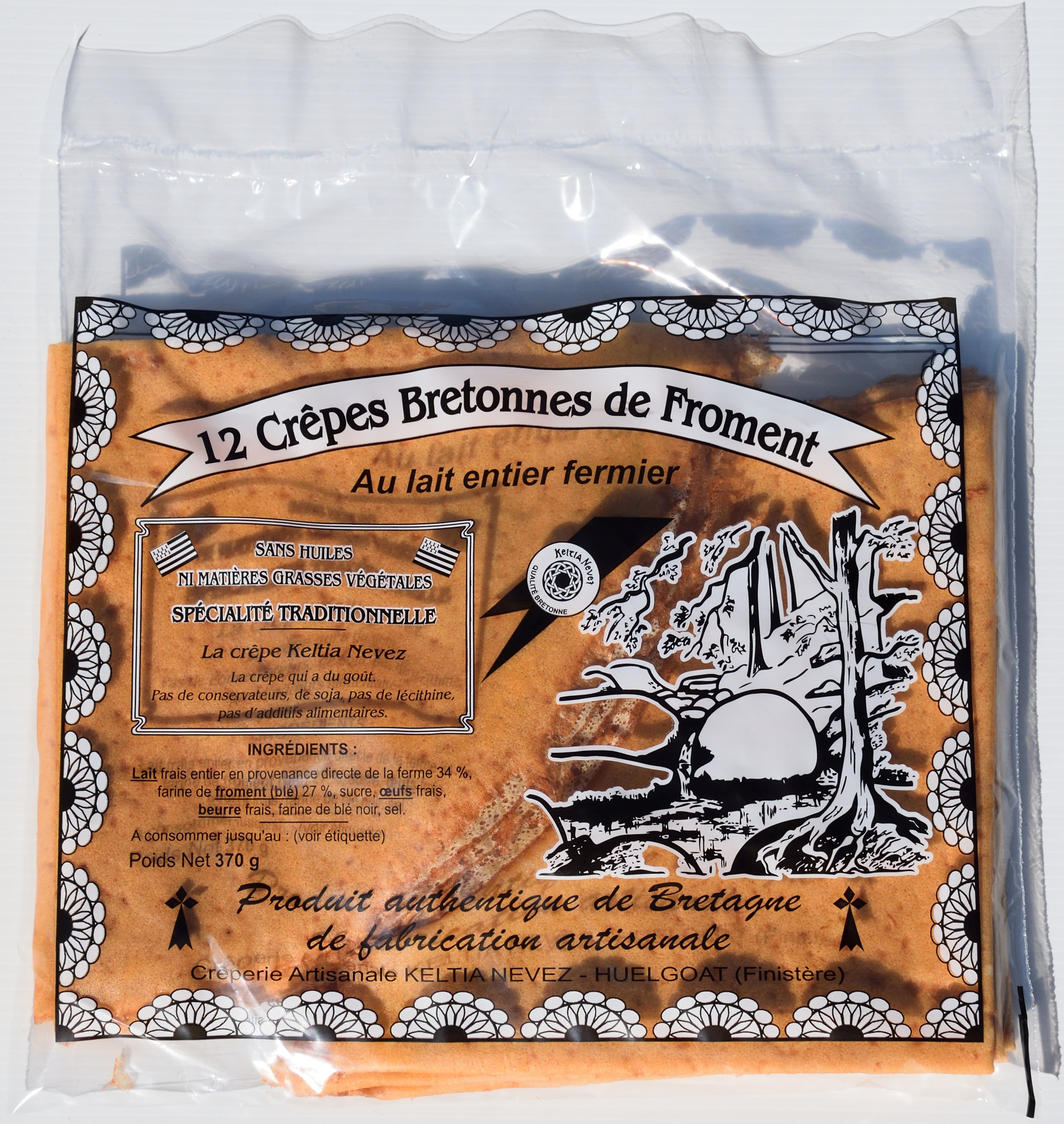 Crêpes sèches, l'emballage en met plein la vue en mode terroir, pour un produit plutôt industriel.