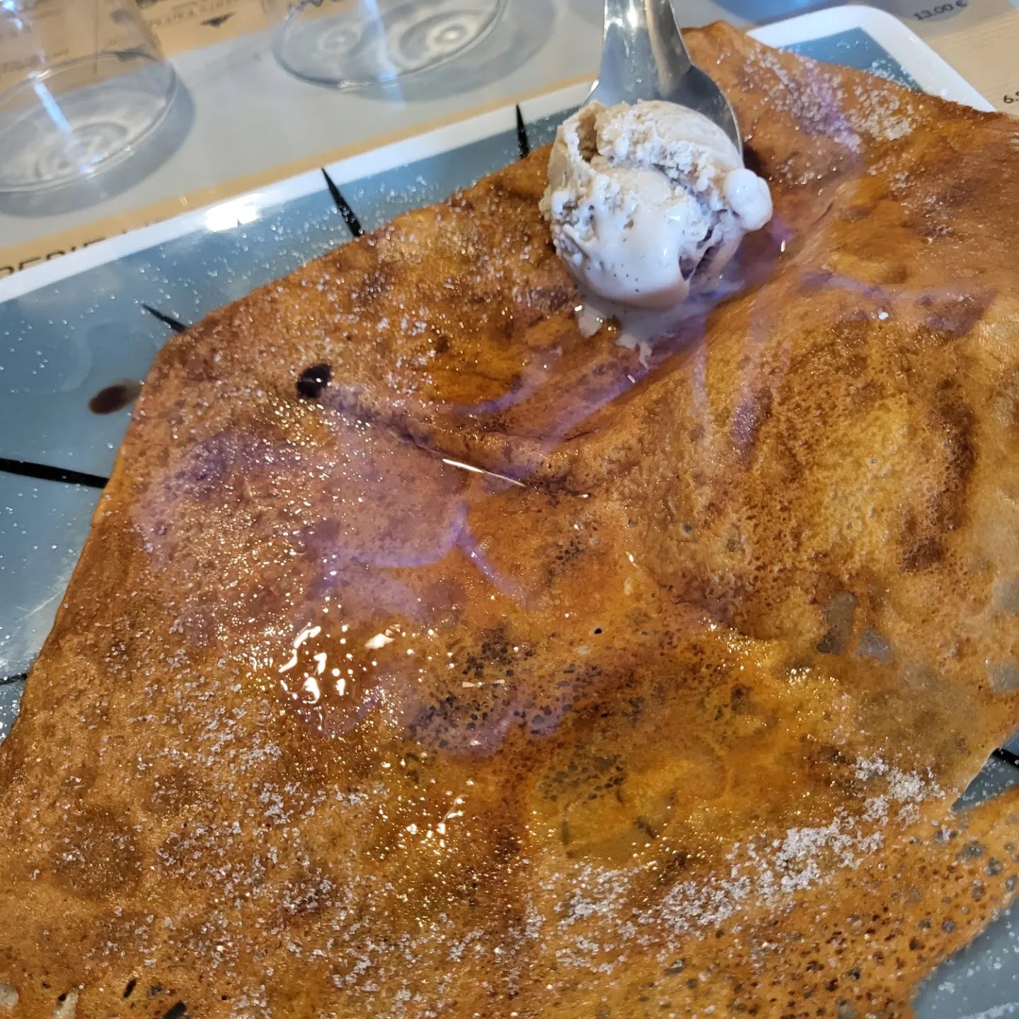 Belle découverte. Les crêpes sont succulentes, copieuses et les glaces sont délicieuses. Le personnel est très sympathique. Je comprends mieux pourquoi il faut réserver à l'avance. Merci pour votre accueil et pour ce dîner excellent.