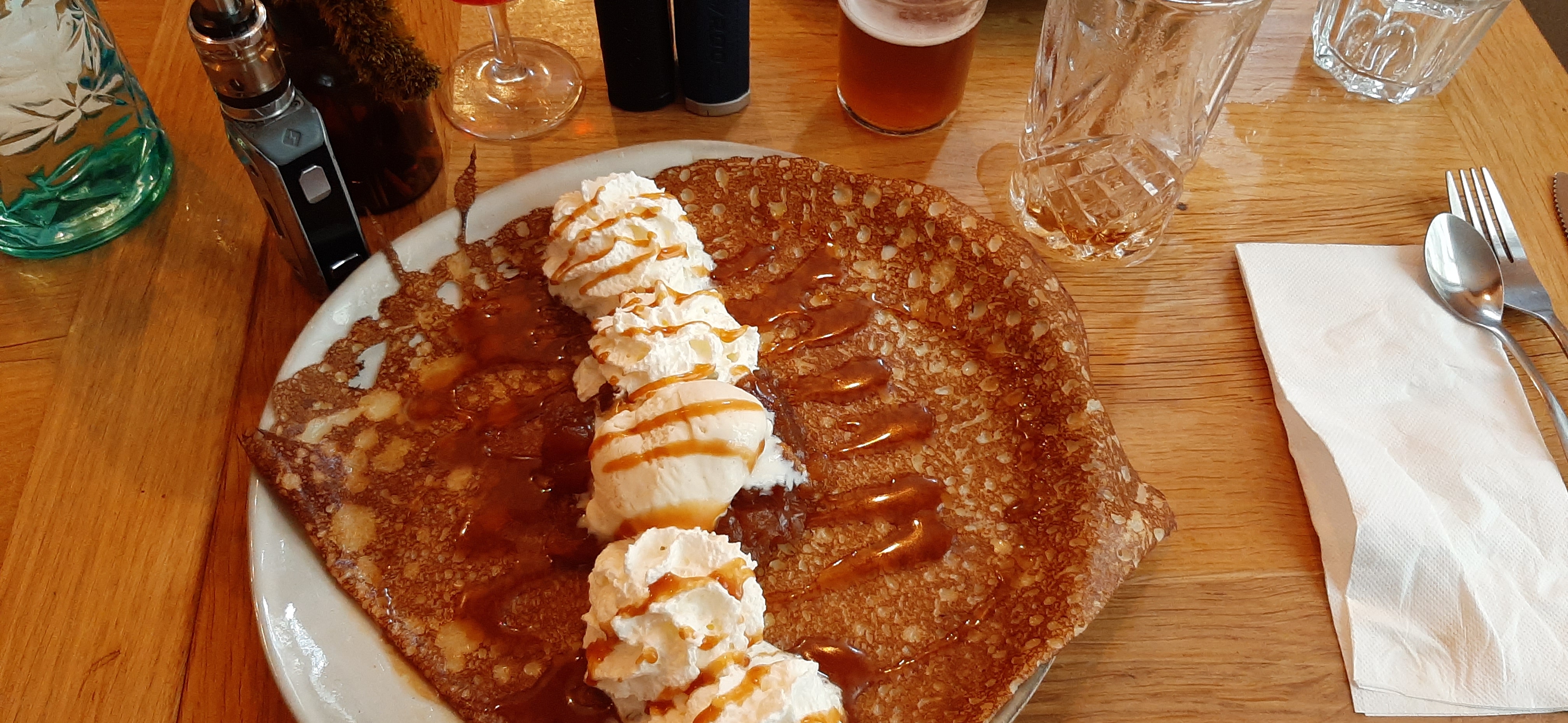 J'avais promis de laisser un commentaire en échange d'un bonbon, alors, chose promise, chose dûe : les galettes étaient belles en plus d'être bonnes 😍 la déco soignée et service rapide malgré une arrivée tardive un samedi soir ! Je recommande !