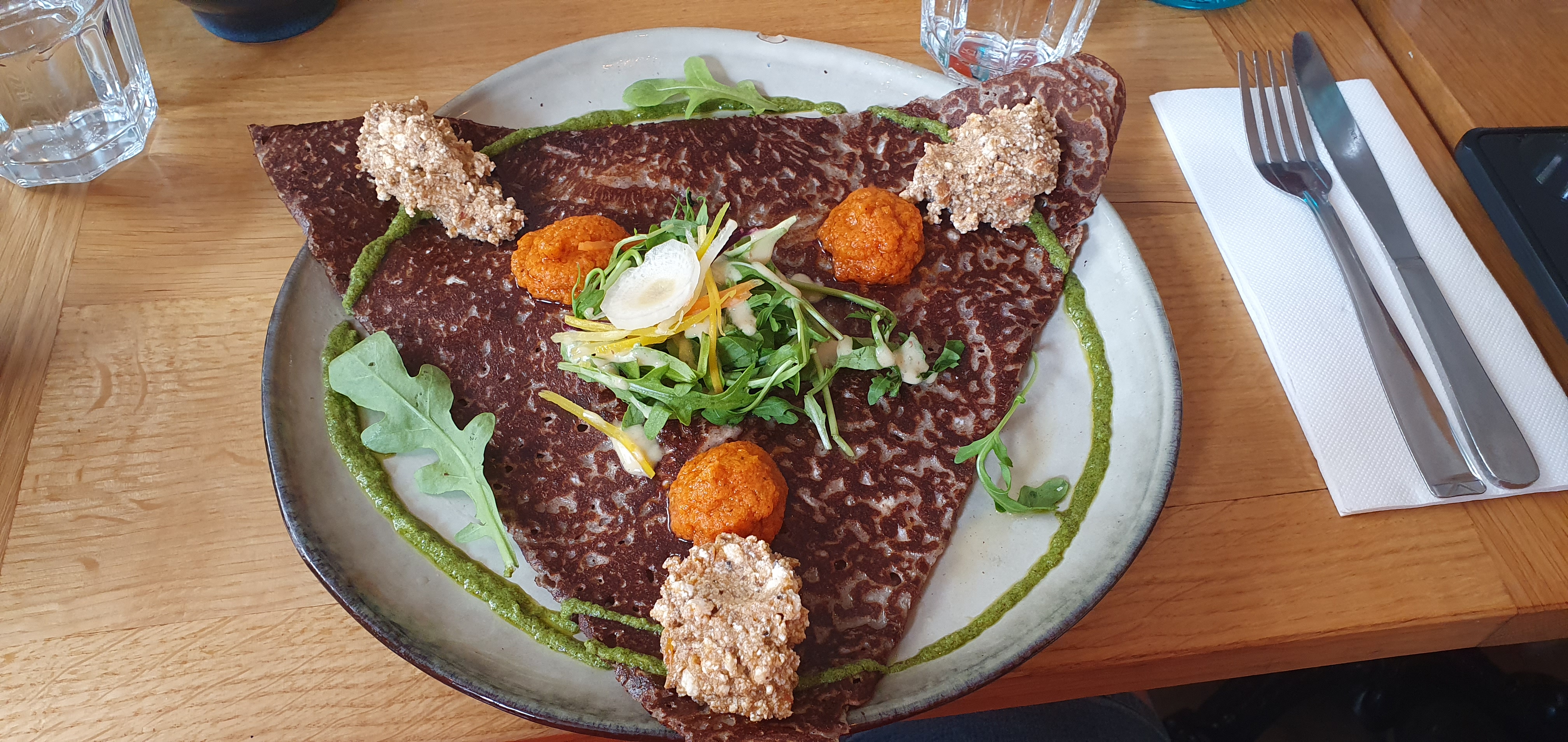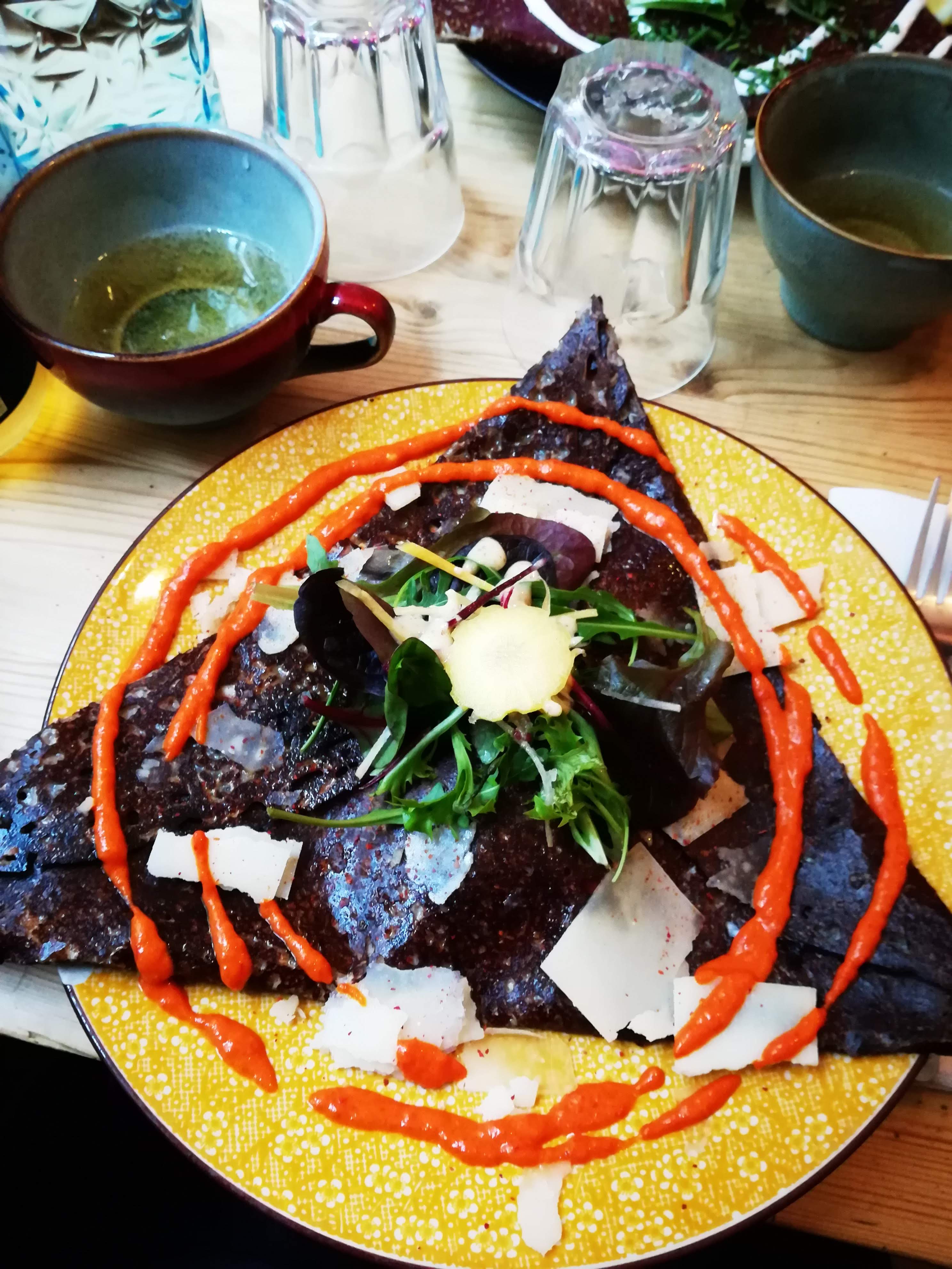 C'est à la fois original et rudement bon ! Probablement une des meilleures galettes que j'ai mangé, en plus avec plusieurs choix vege qui sortent des classiques