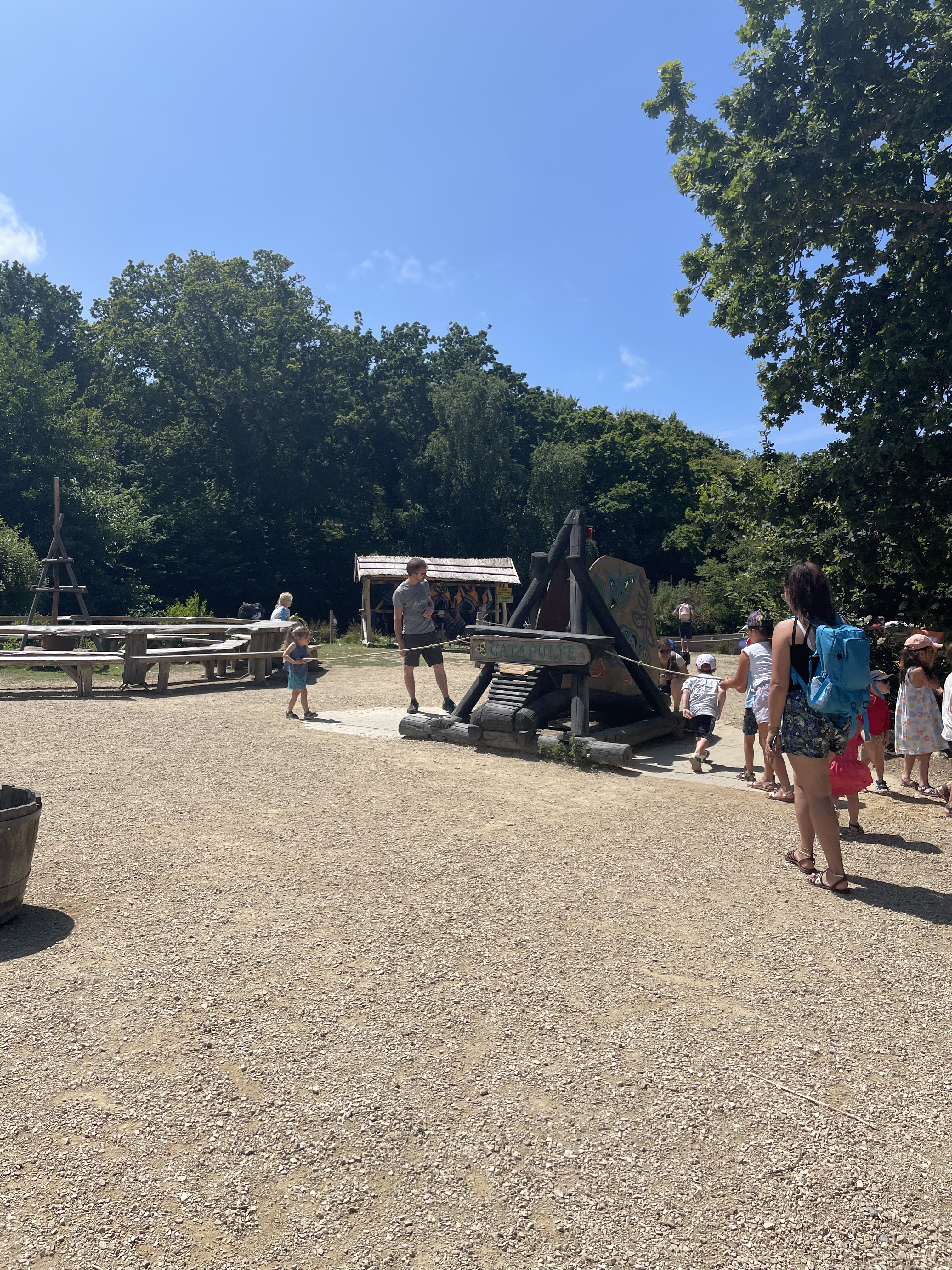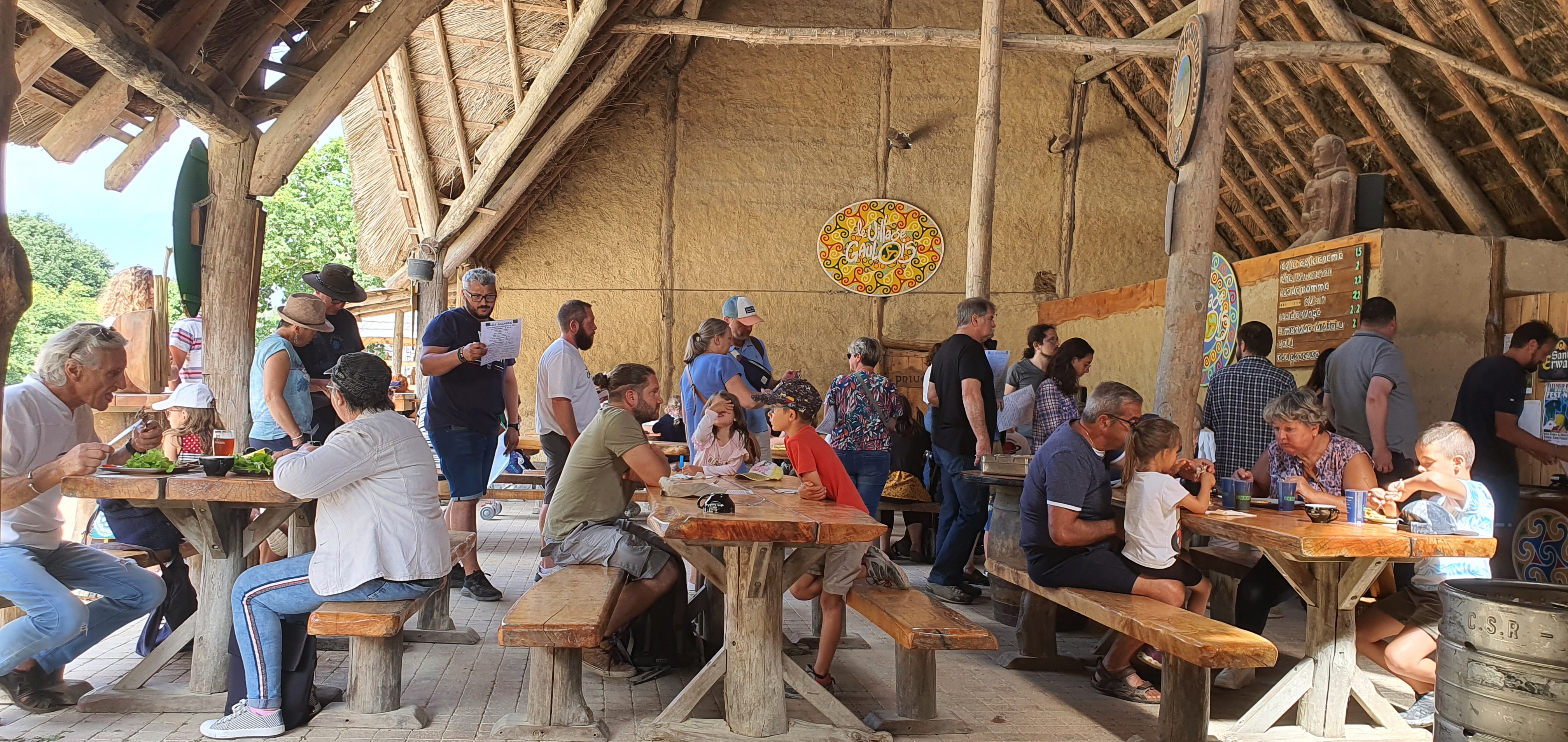 Crêperie à l'intérieur du village gaulois, les parents peuvent prendre un verre en regardant les enfants s'amuser en plein air
