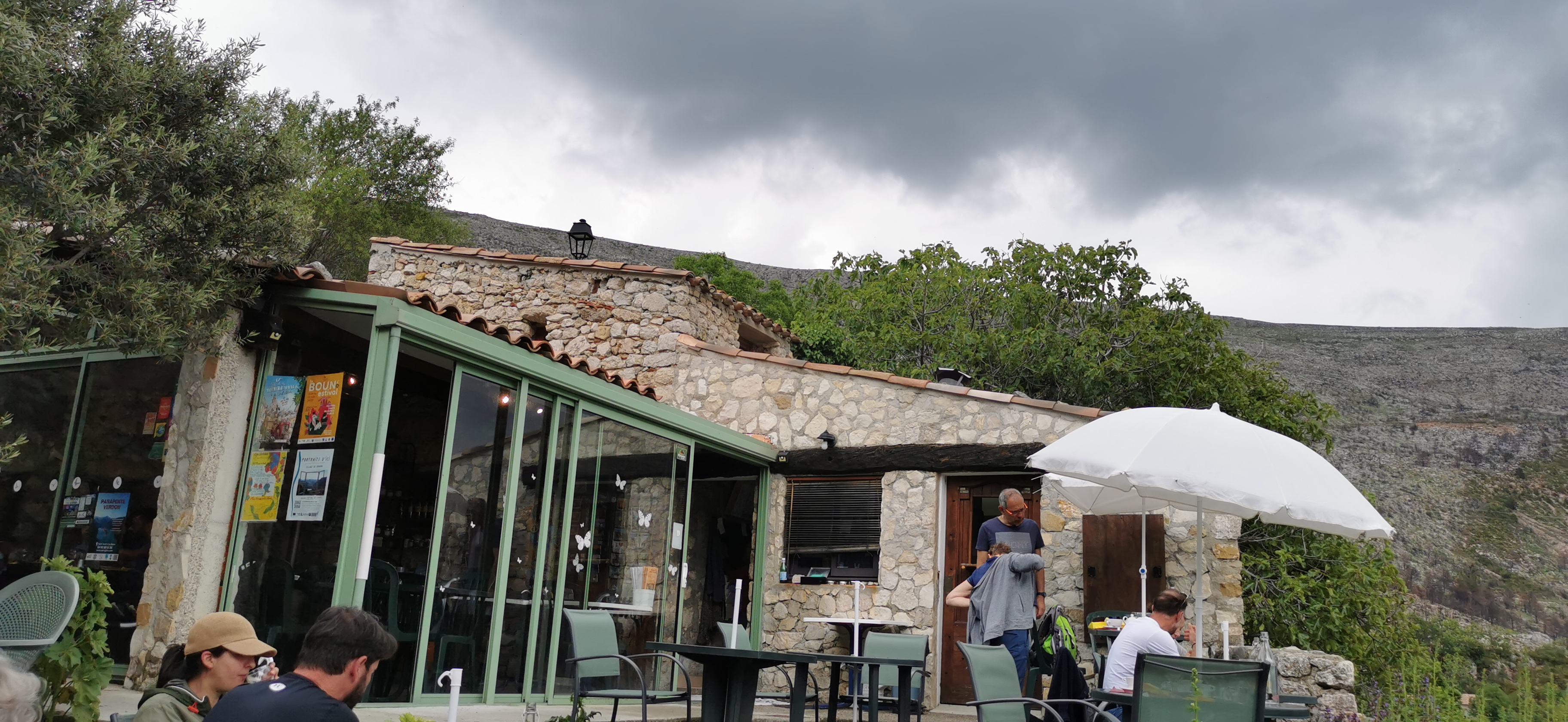 Un des plus beaux panoramas dont on puisse rêver dans le Verdon! Patronne adorable, équipe aux petits soins, compétente et souriante. Les crêpes sont une tuerie! Prix ultra raisonnables, terrasse sublime, vols de vautours spectaculaires... What else?