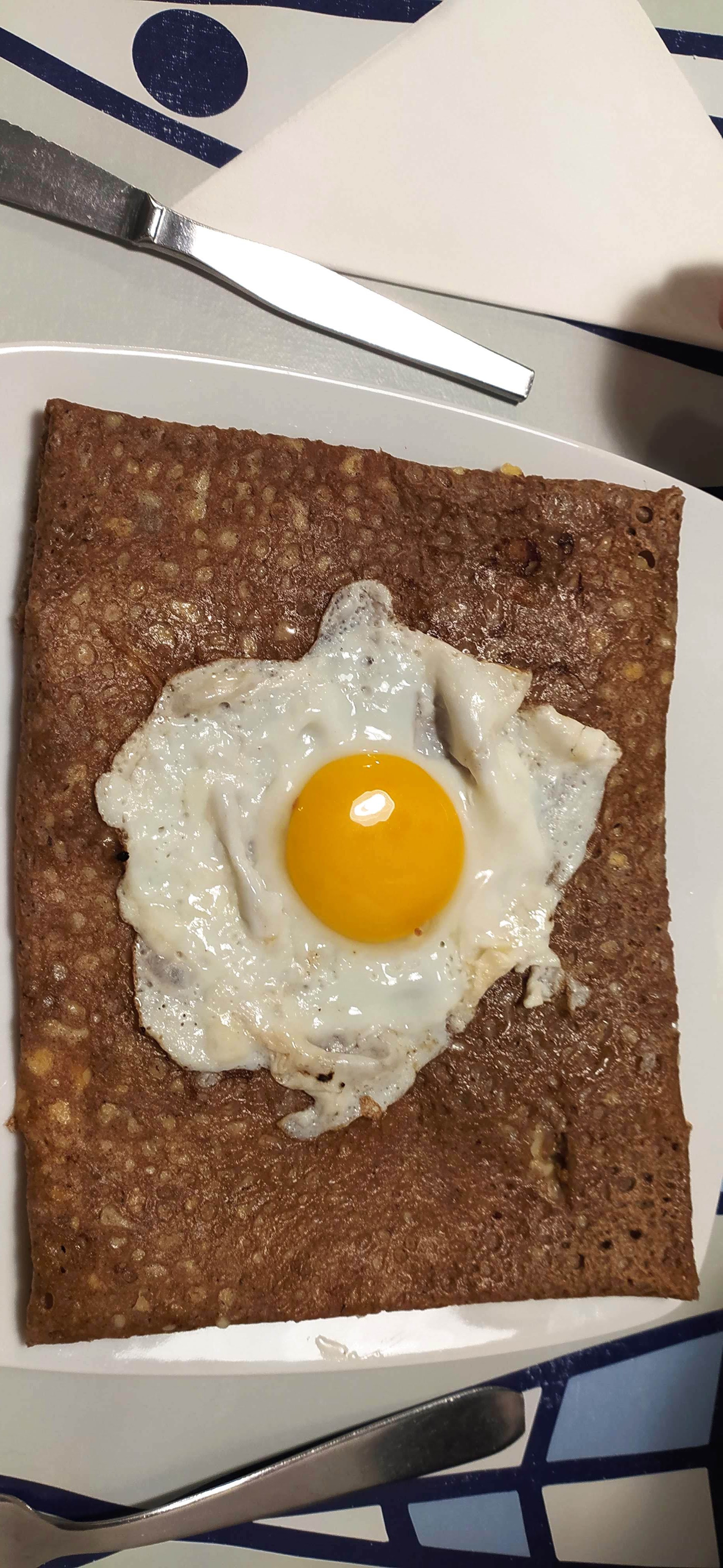 Une galette en Bretagne. Un Classique ! Pas déçue puisque tout était très bon et surtout très copieux. La crêpe Toukaram est une tuerie.