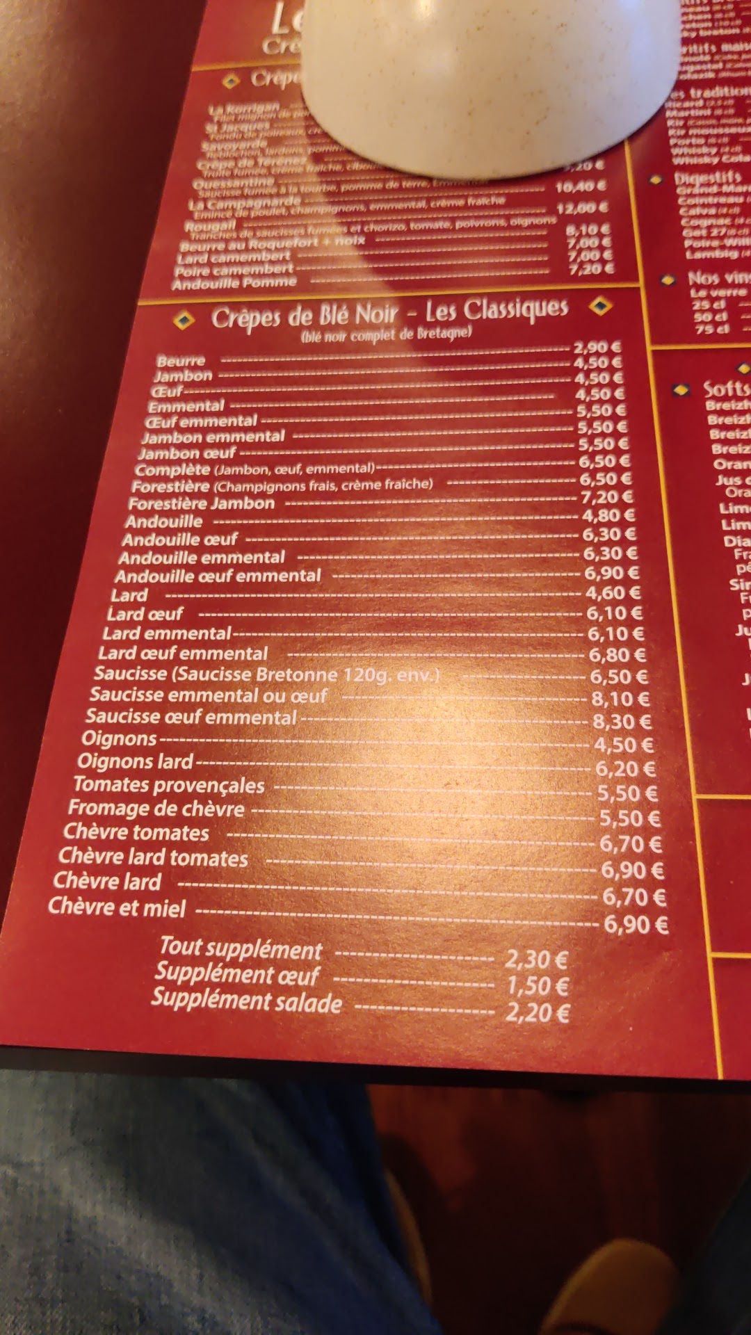 L'accueil manque de sourire, les crêpes sont moyennes, pas grand chose dans l'assiette, les desserts sont cher pour ce que c'est, le cidre est vraiment très bon.