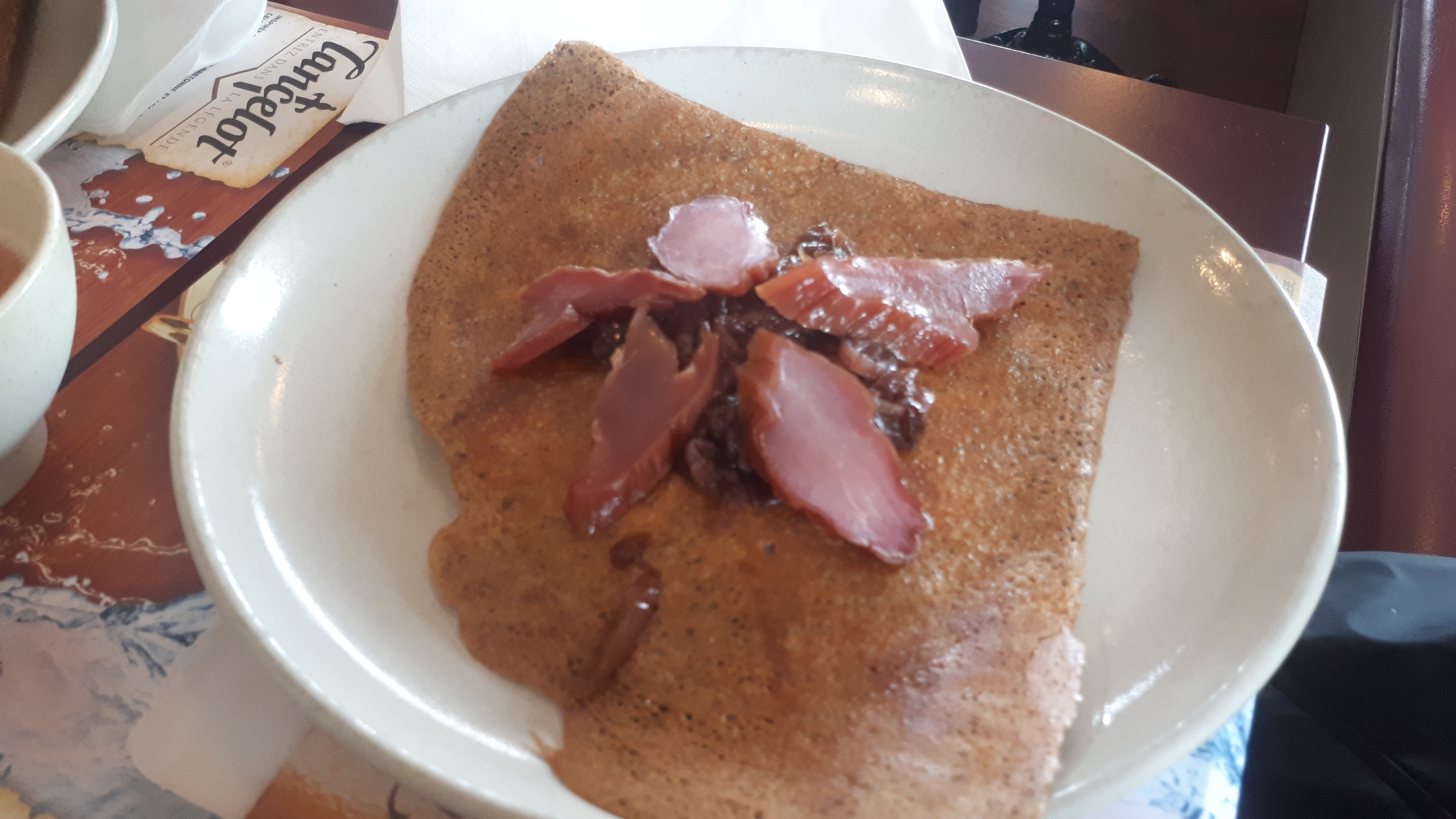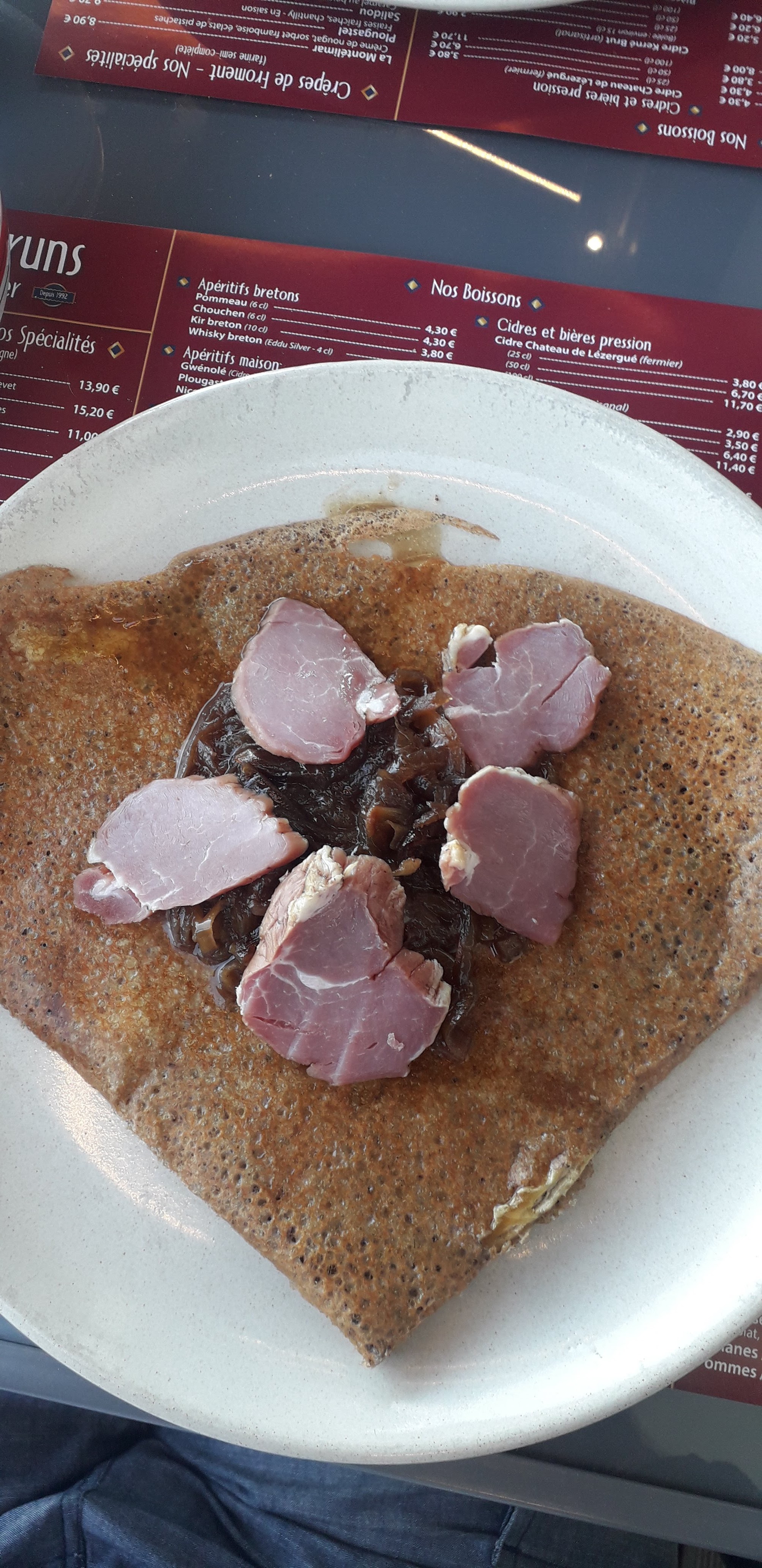 Mauvais, il n’y a pas d’autres mots. La crêpe en elle même a mauvais goût, très peu de Sarrazin. Les ingrédients fades, le supplément champignon trop gras. Et c’est cher. 3 semaines passées dans le Finistère, pour le moment seules les crêperies de Locronan nous ont offert de vraies galettes. Piège à touristes.