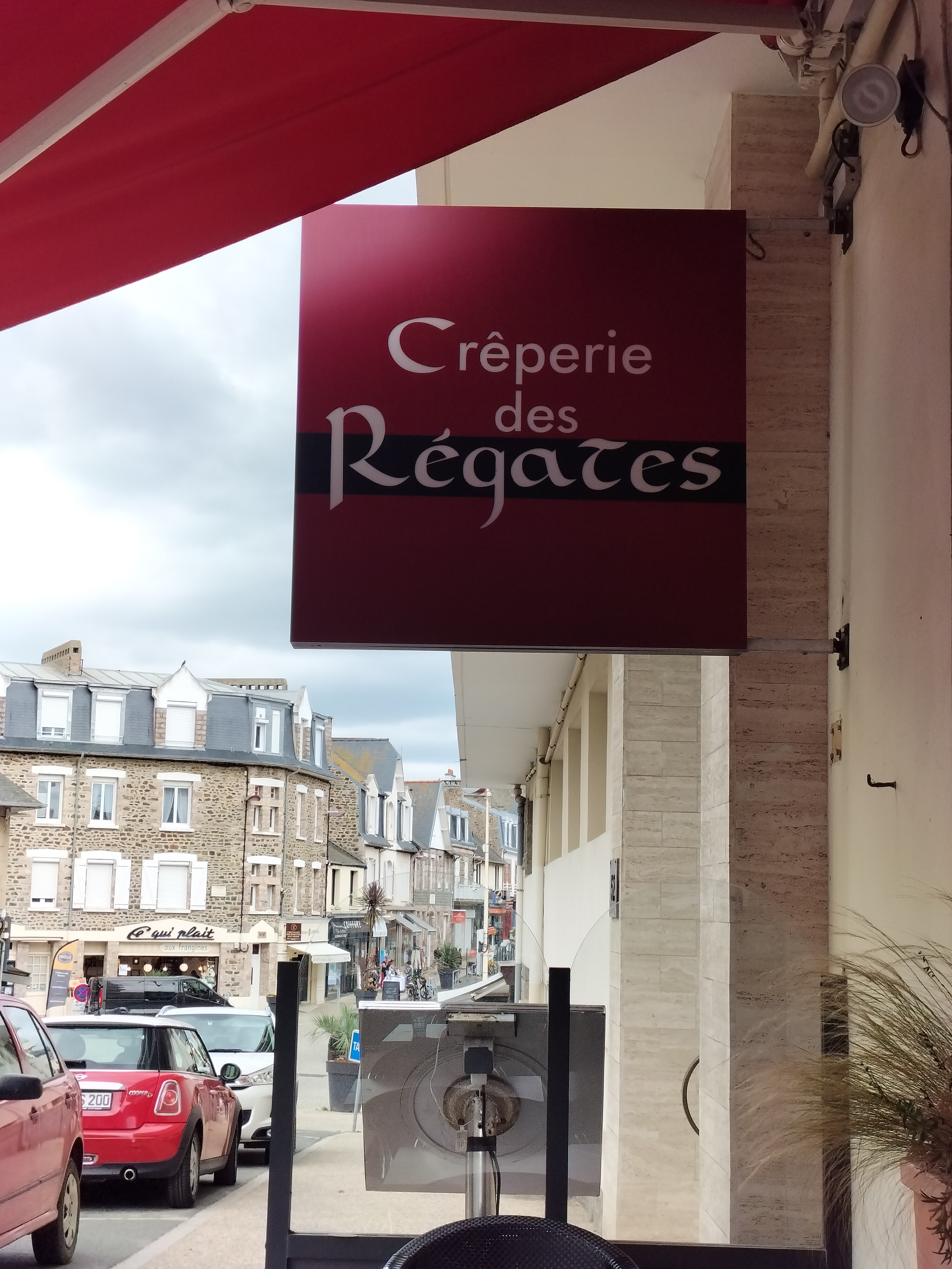 En vacances en Bretagne Nord, pour notre dernier repas nous avons choisi la crêperie des régatesplats traditionnels et originaux : galette avec boule sorbet chèvre, très bon, à recommander, merci à toute l'équipe
