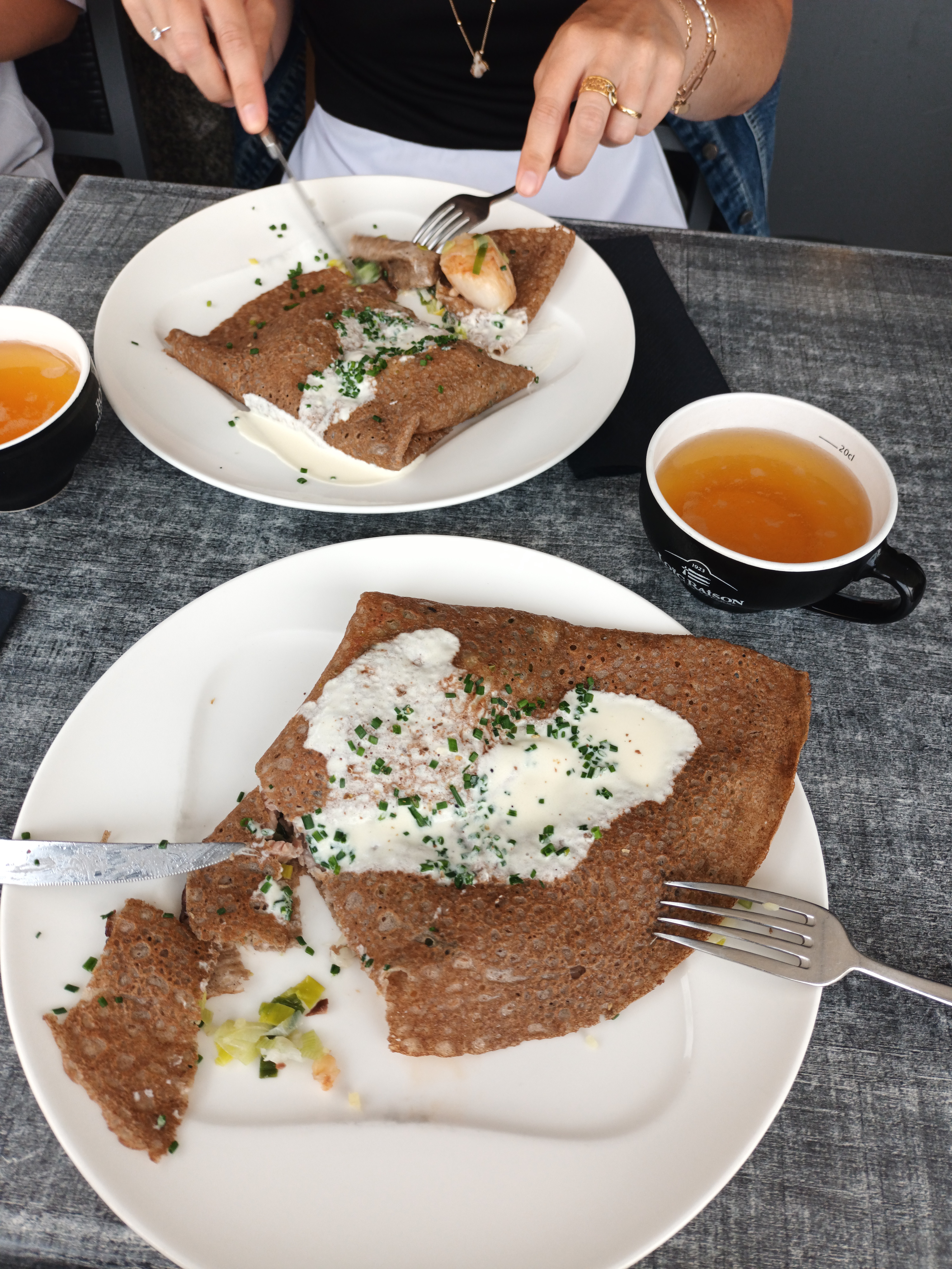 excellent repas, galette au saumon un régale, et en dessert une crêpe bigoudene à tomber par terre 😍