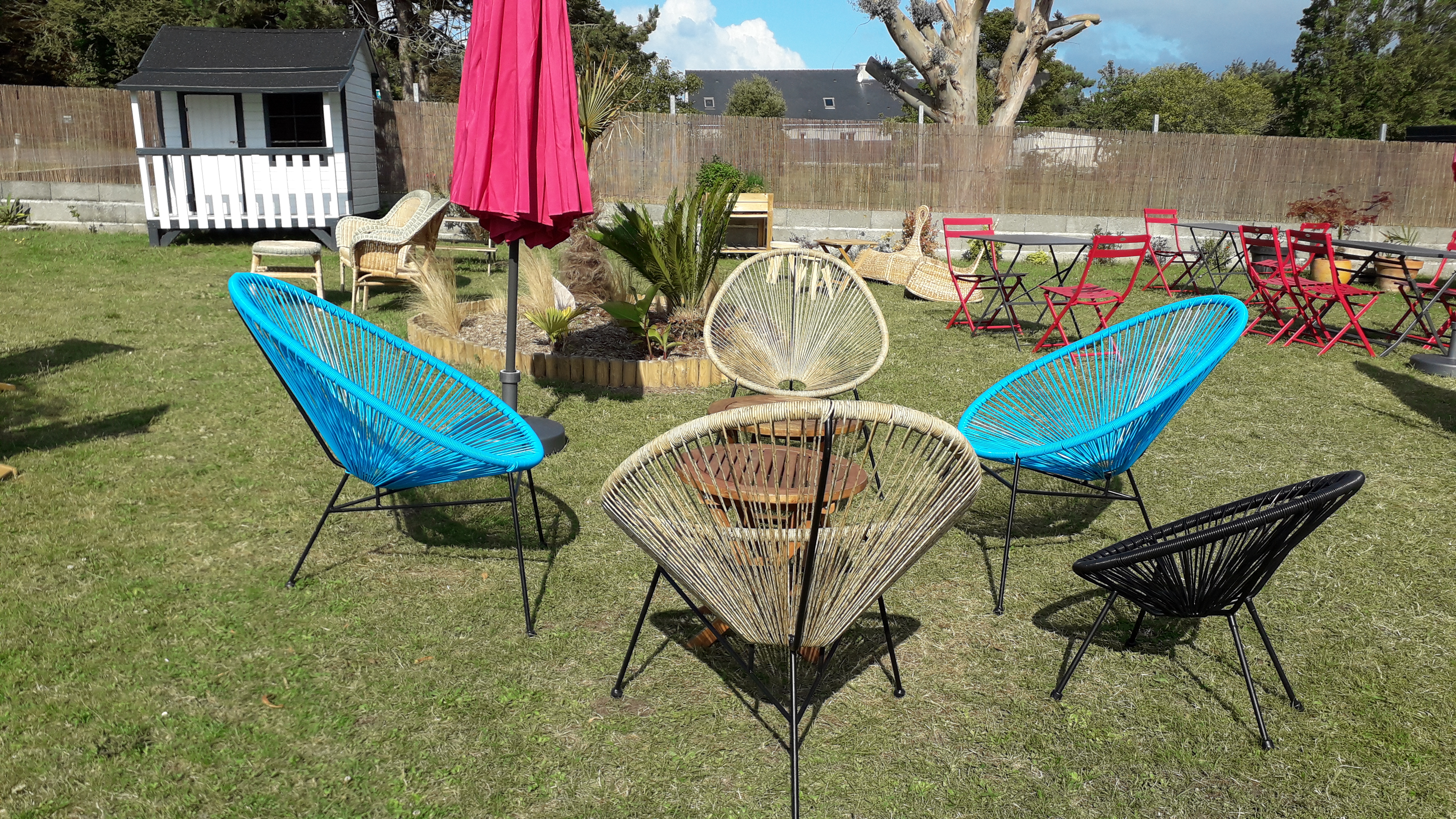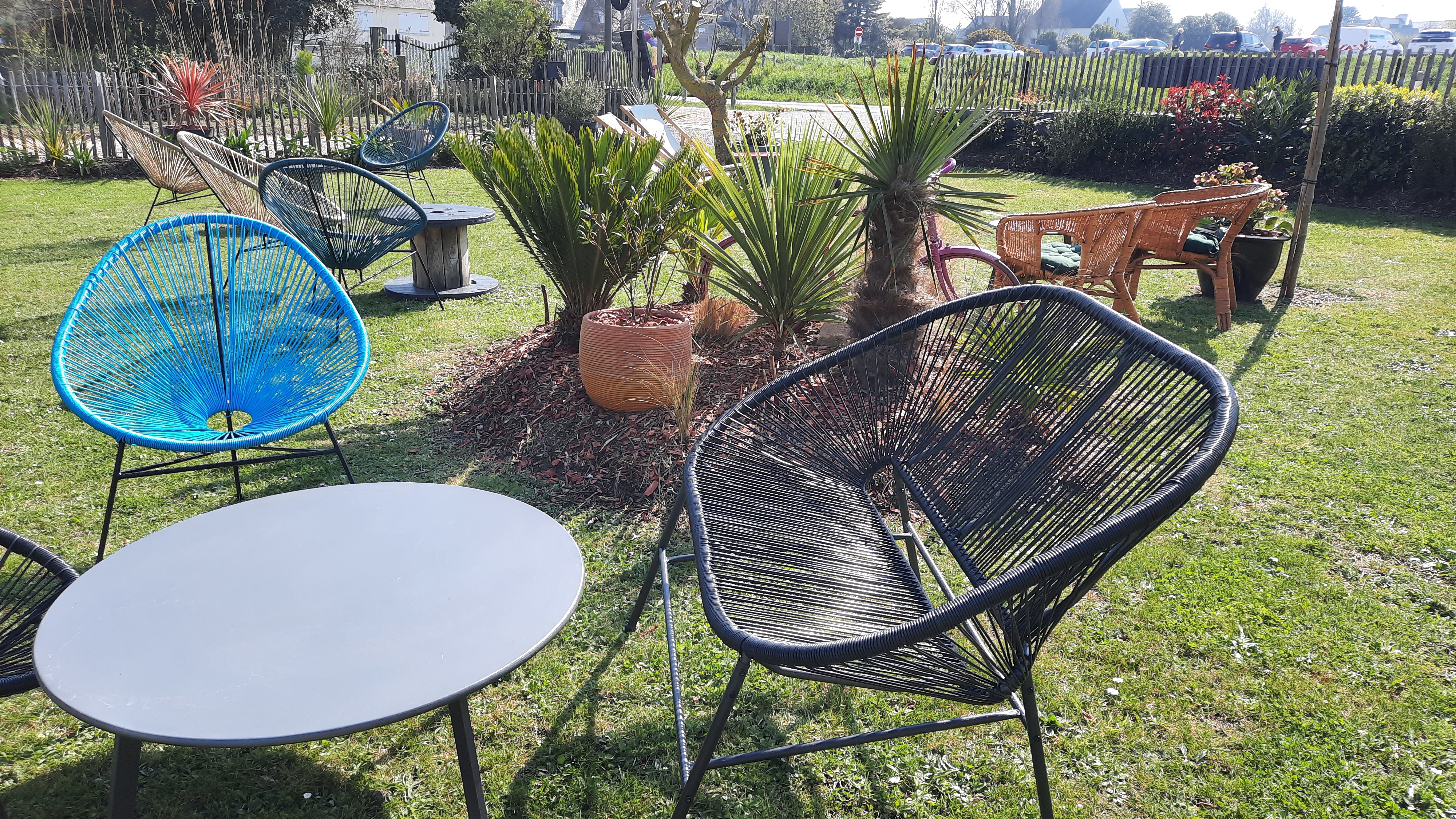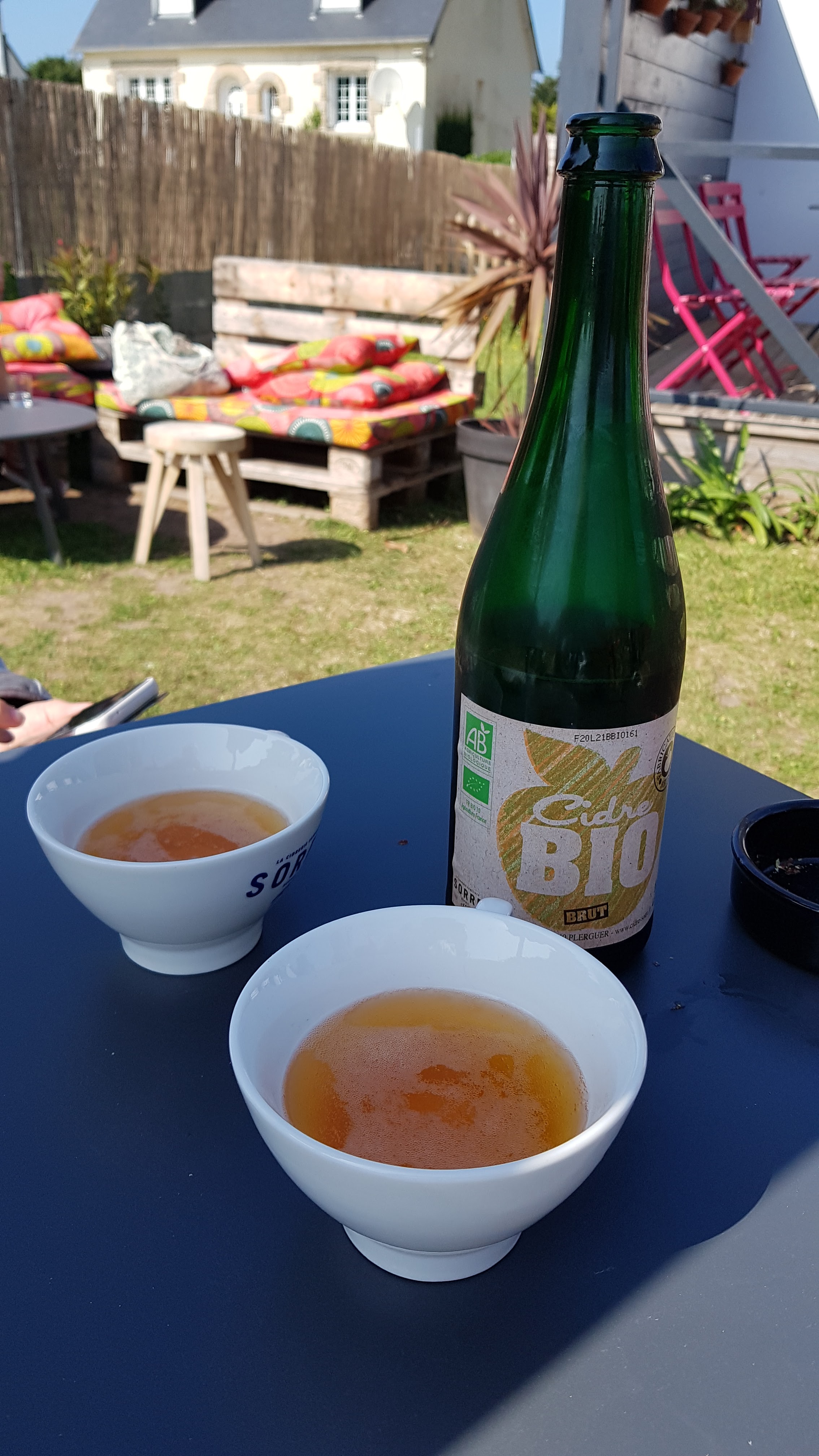 On a eu la chance d'y venir par beau temps où le nom de cette crèperie Au Jardin prend toute sa défintition car une dame et sa fille ont fait de cet endroit à première vue plutôt anodin, un petit coin invitant à la paresse avec des transats ,chaises, et parasols colorés et un coin palette/fauteuil aux coussins rebondissants et mutlicolors où il est bon de se reposer en dégustant une bonne bolée de cidre et une galette après une ballade inoubliable au Cap d'Erquy.
