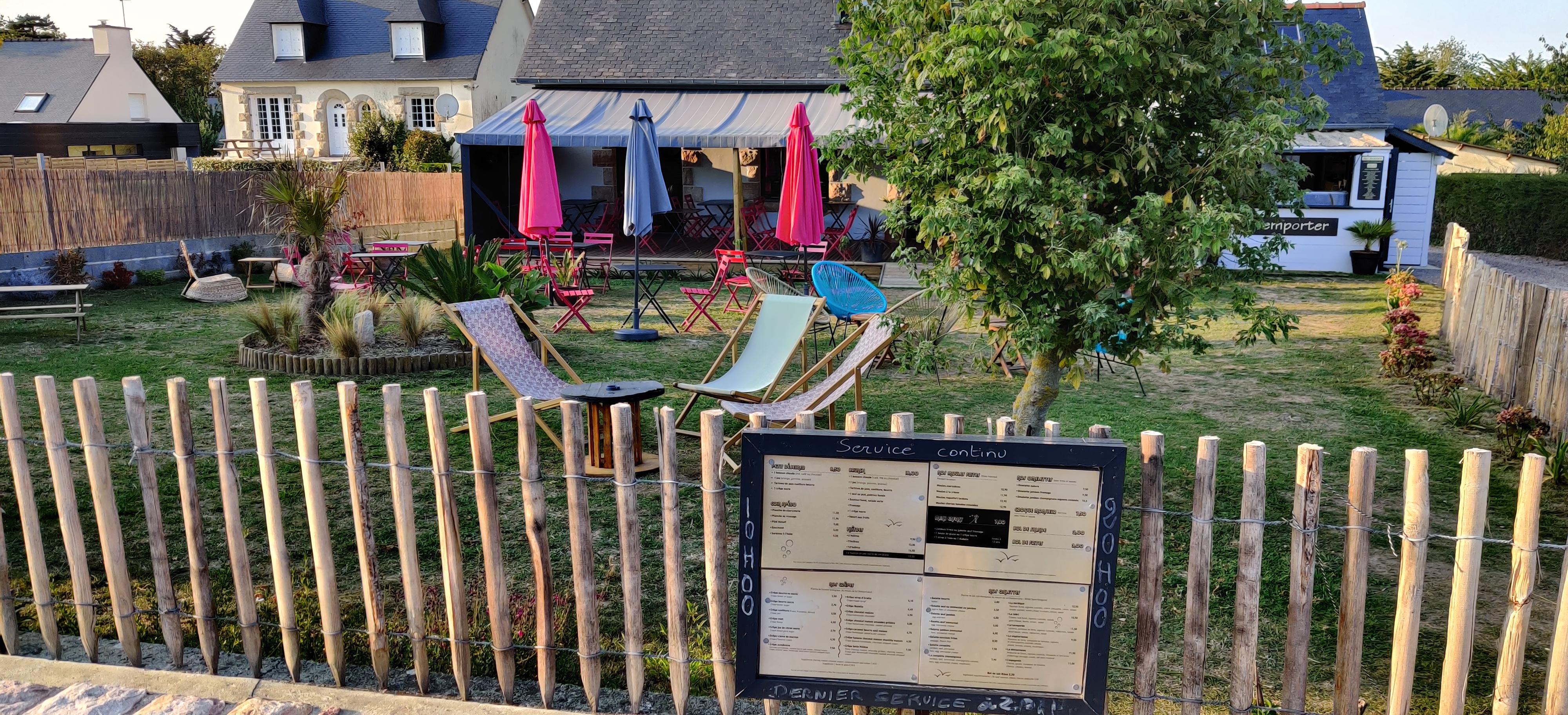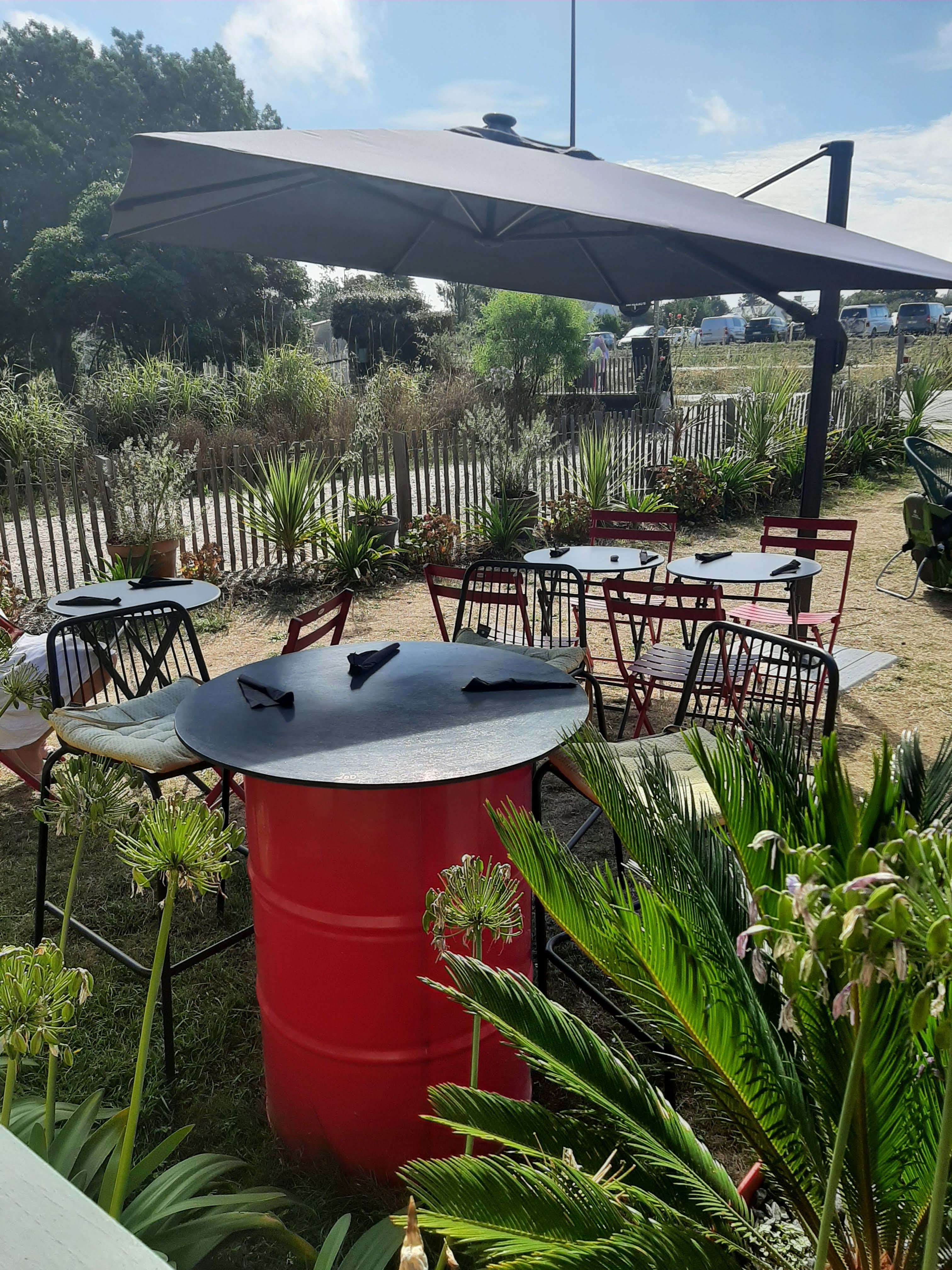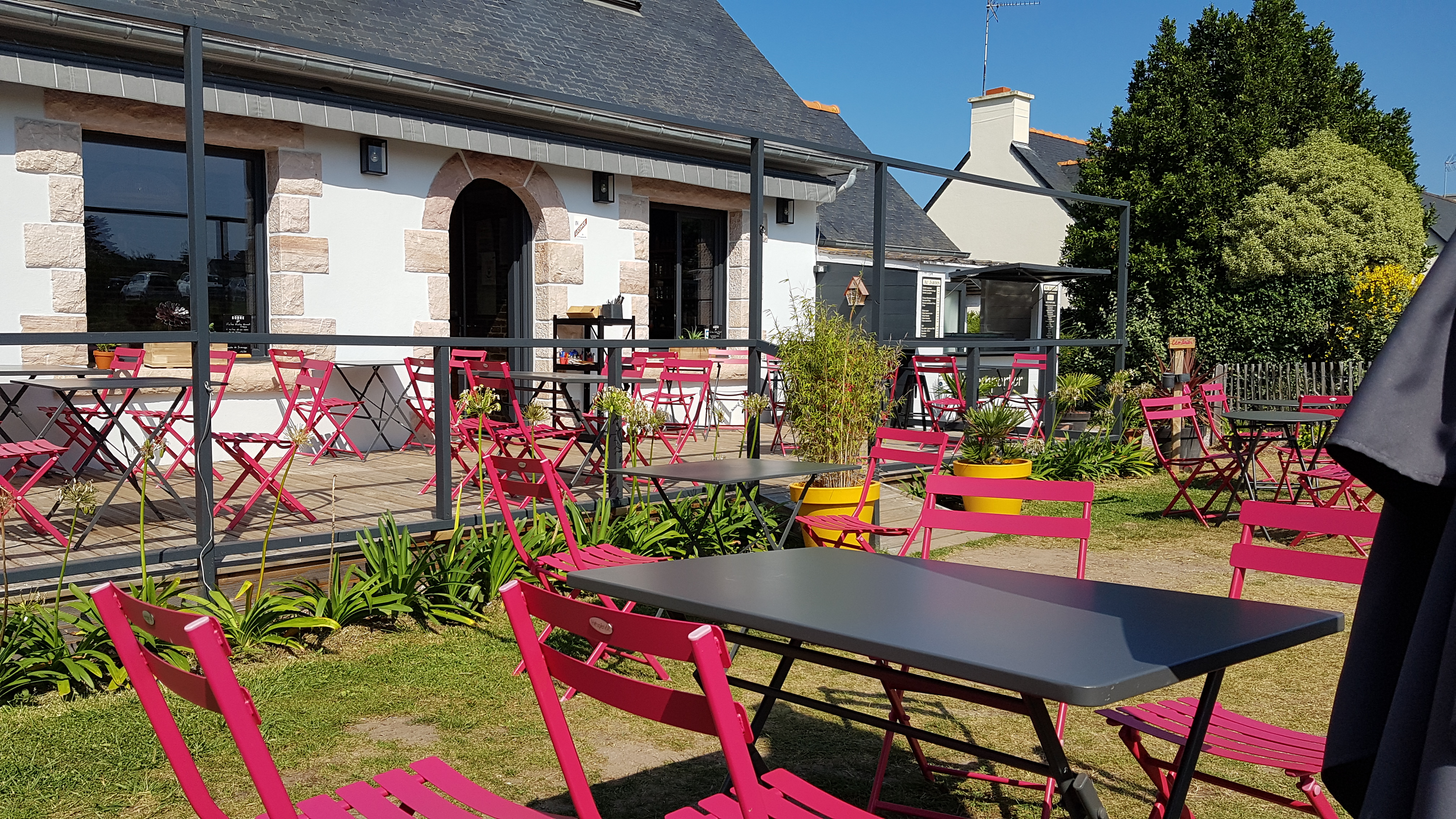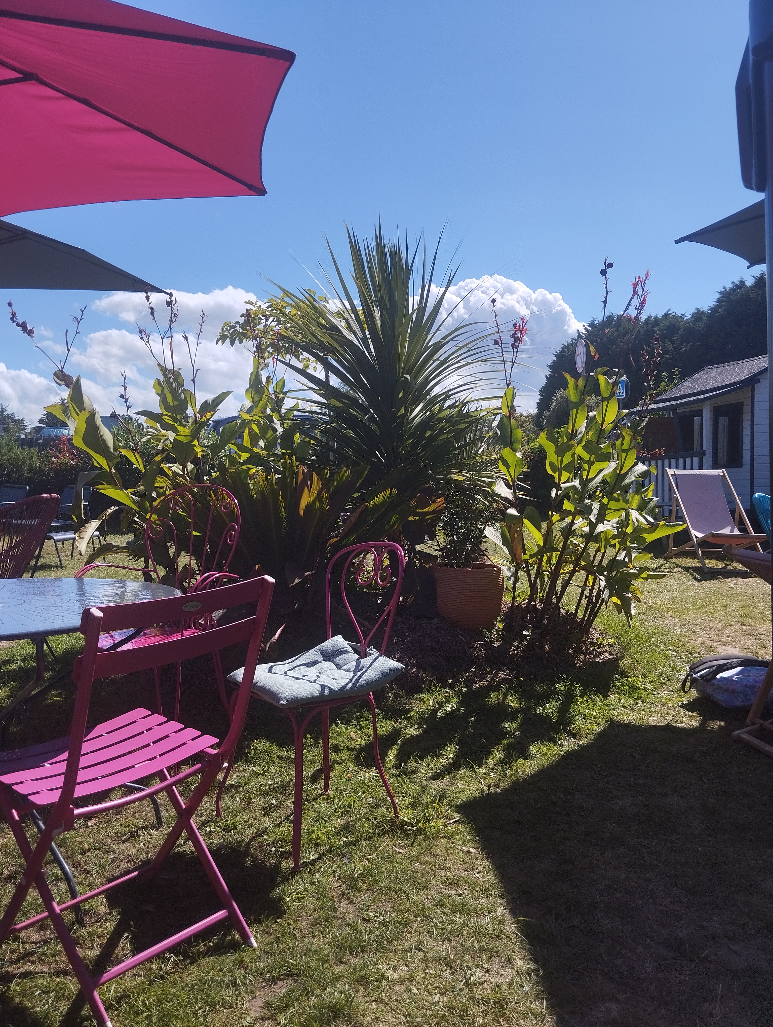 Grand moment de détente pour manger une crêpe et siroter une boisson dans ce jardin au calme au pied du Cap d'Erquy !
