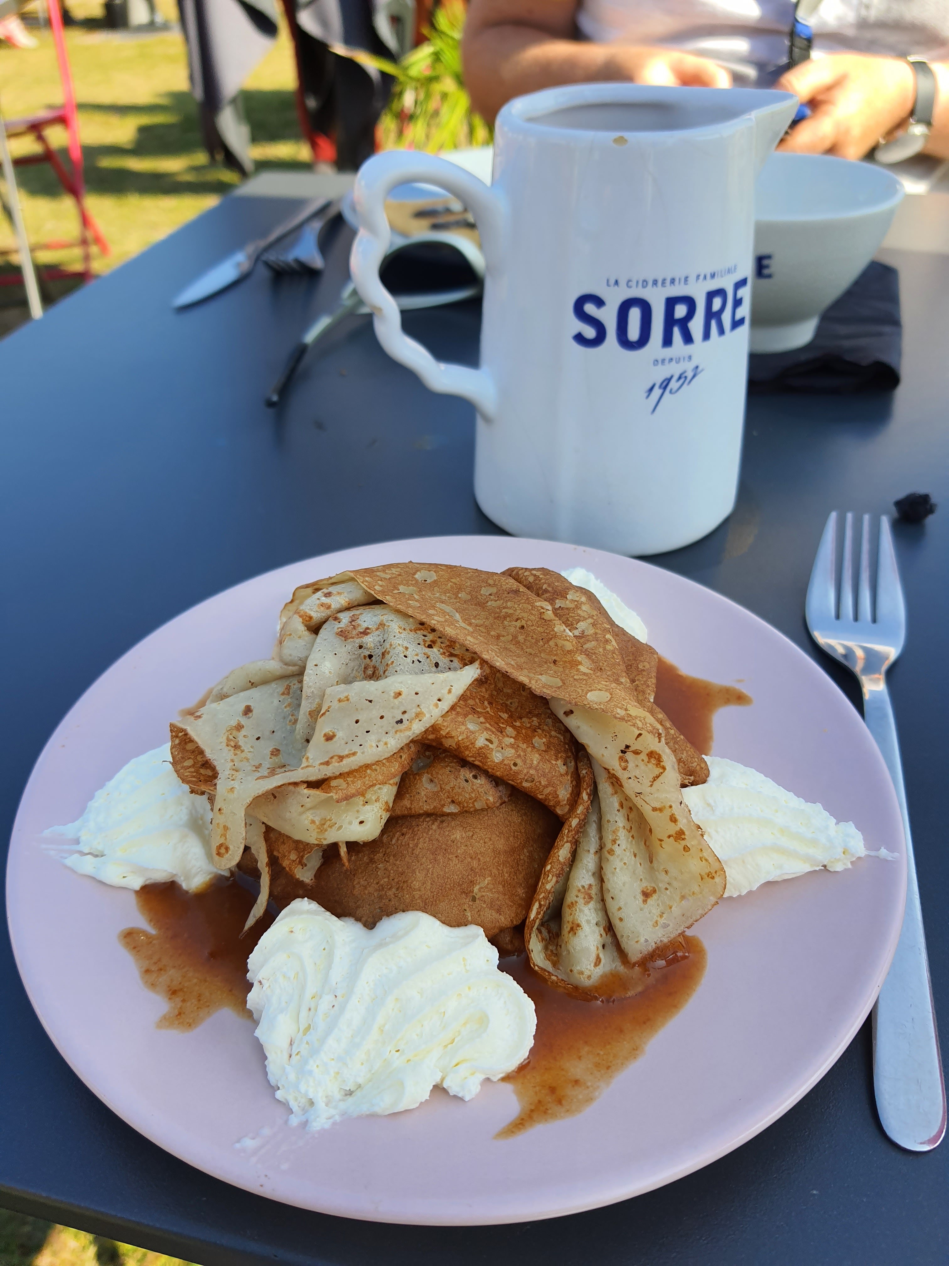 déjeuner ce midi.parfait pour la crêpe complète champignon .la bière lance lot et une dame blanche avec une excellente chantilly.bonne saison 2024