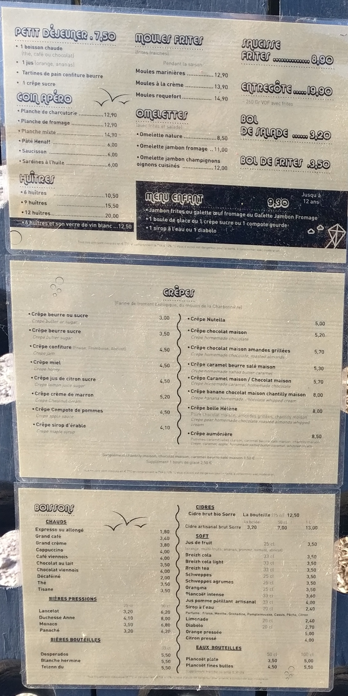 Cette crêperie est idéalement située près des plages sauvages et en face du parking principal du cap d’Erquy. Nous venons chaque année. Crêpes desserts et coquillages y sont bons et l’ambiance agréable ( une partie couverte et une « au jardin » Même si les prix ont beaucoup augmenté en deux ans, ils restent relativement sages. English spoken