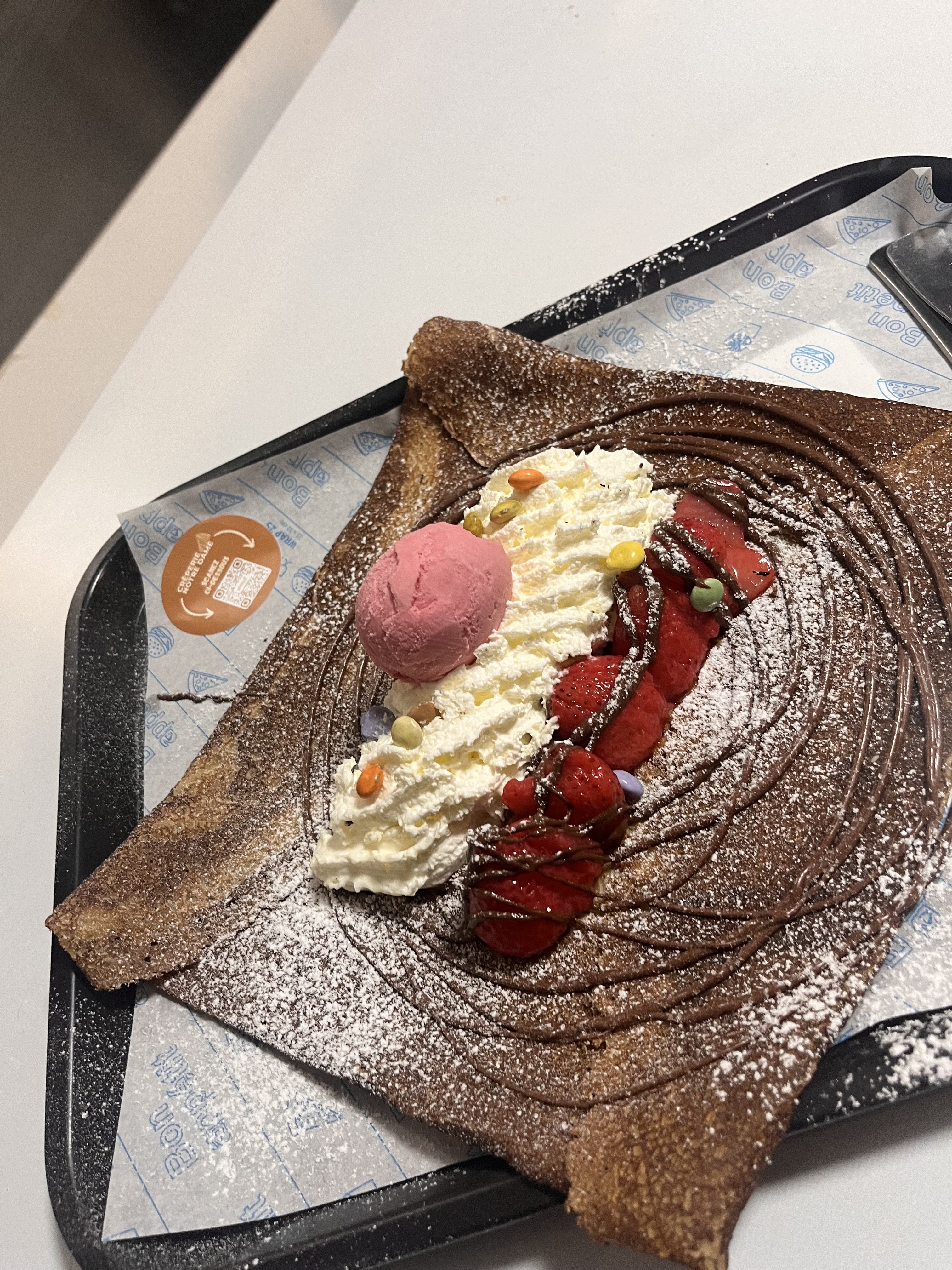 Crêpes très généreuses et délicieuses. Ma nièce de 6 ans et moi-même nous nous sommes régalées. J'y reviendrai avec plaisir!