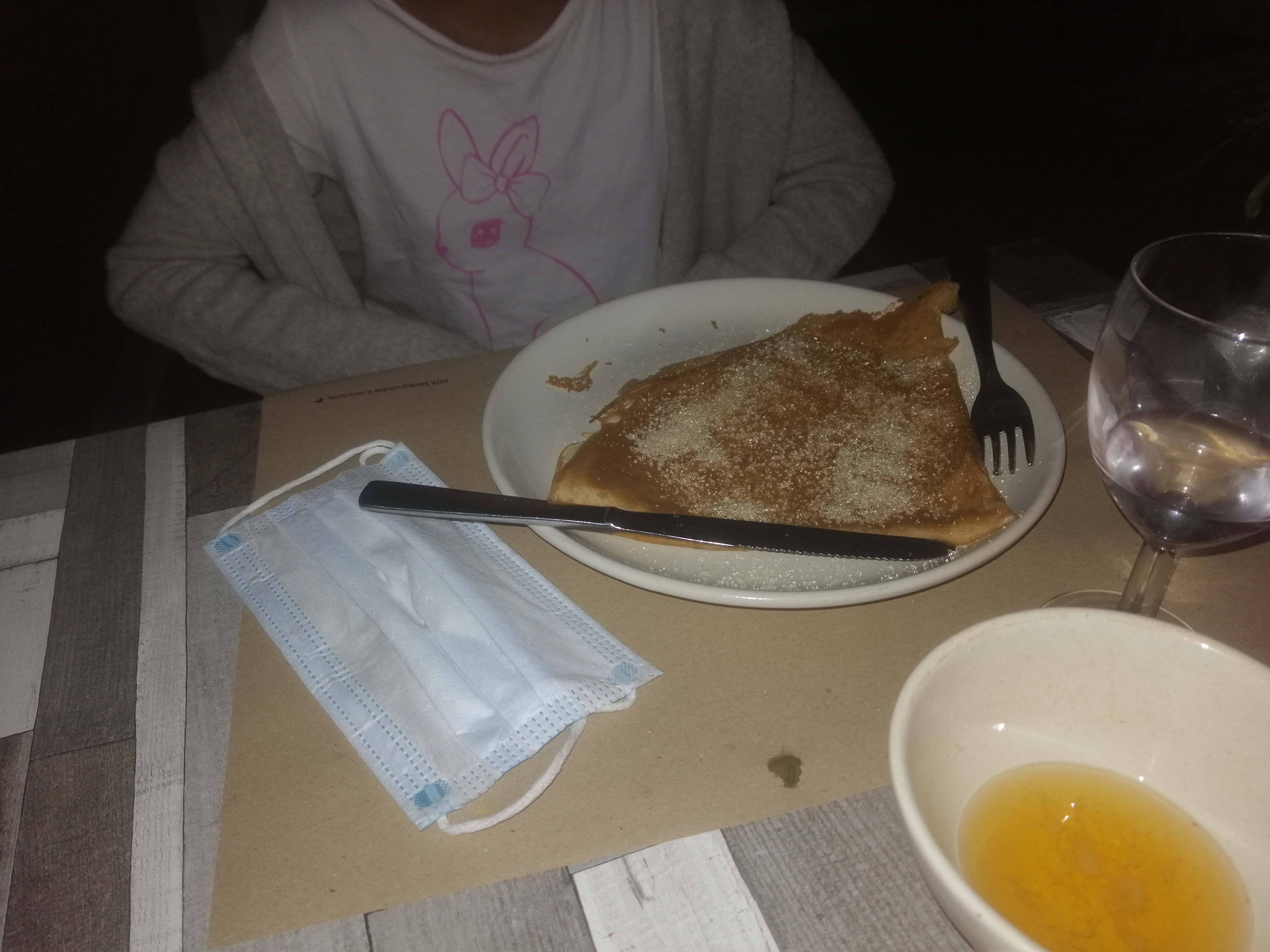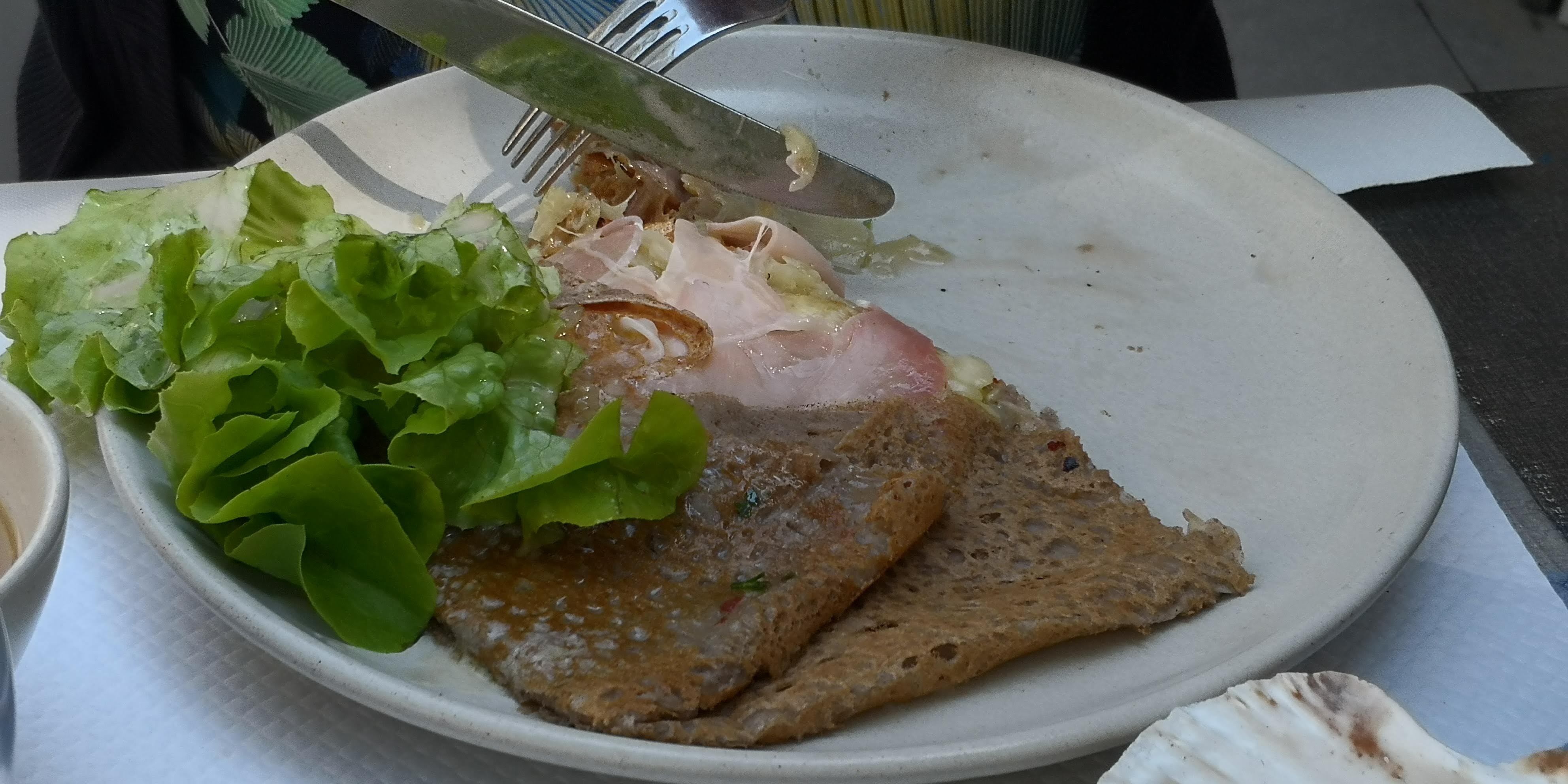 1 crêpe salée + 1 crêpe sucrée : un peu juste pour un déjeuner, mais c'est bon et sympa !