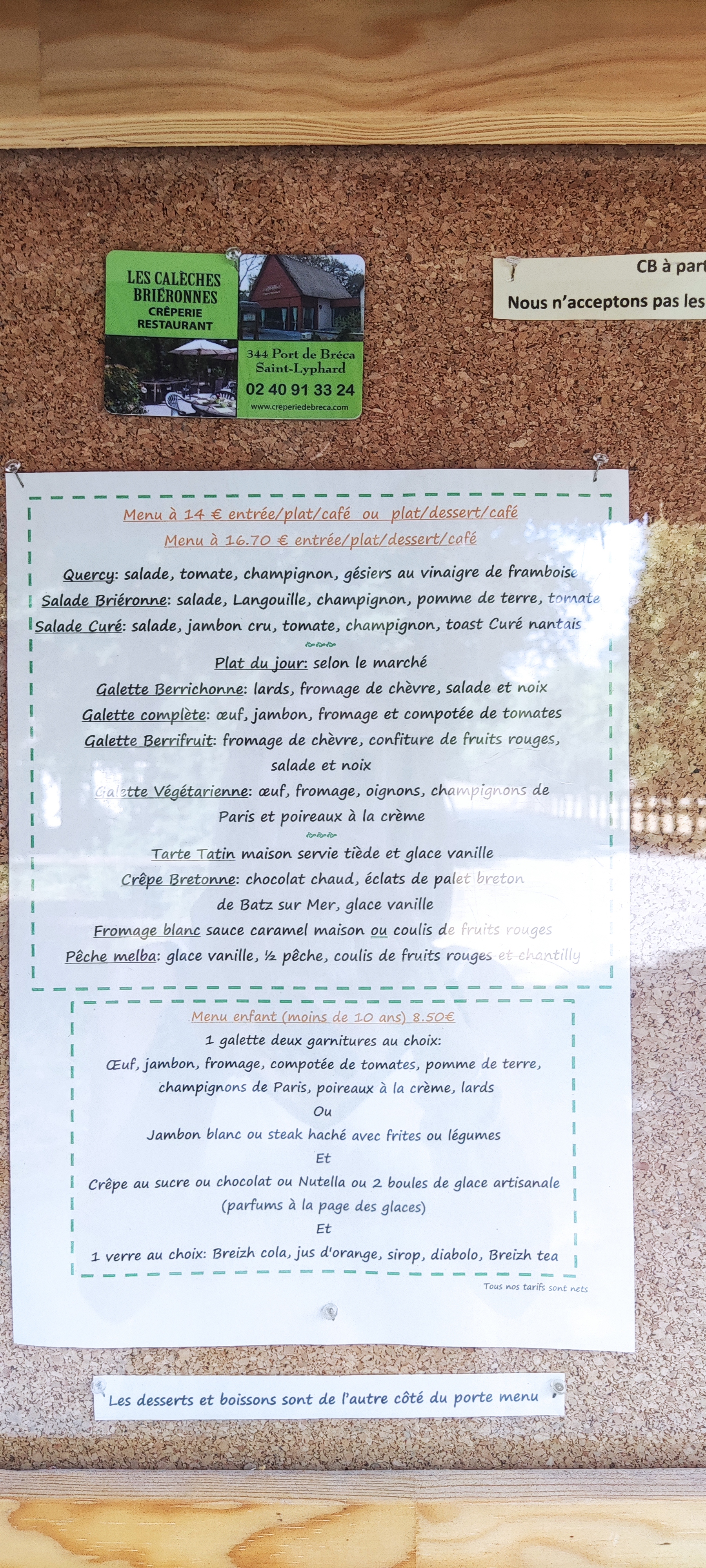 Très bon restaurant crèperie, en bord de Brière, parking en face, menus enfants et jeux à côté de la terrasse, nous avons dégusté les moules de Pénestin à la crème excellentes accompagnées de bonnes frites maison, service impeccable malgré le monde en cette période , merci aux personnels et aux patrons pour leurs gentillesses, prix abordables, nous reviendrons avec plaisir
