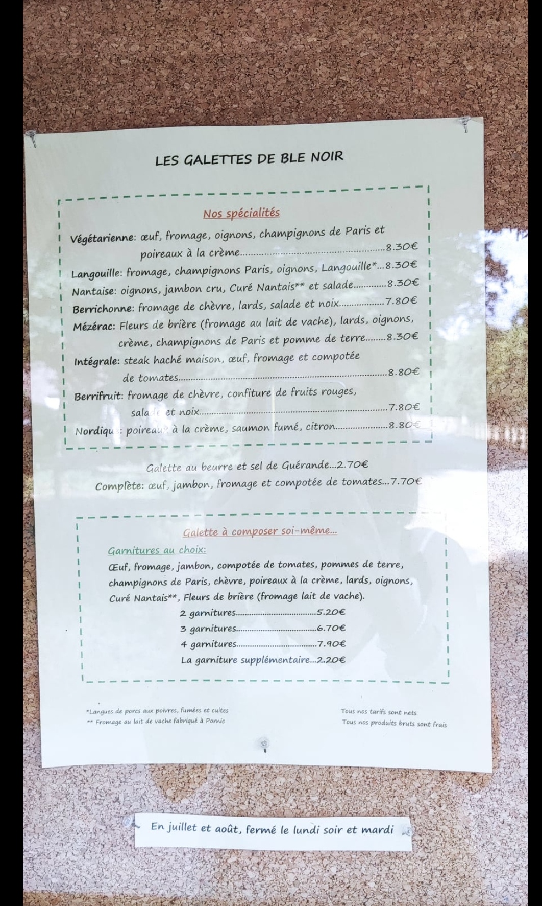 Un accueil chaleureux, une terrasse très agréable, une carte de produits régionaux à prix plus que raisonnable (galette garnie et copieuse 7 euros). Une adresse à retenir et le détour vaut le déplacement. Parking facile et gratuit