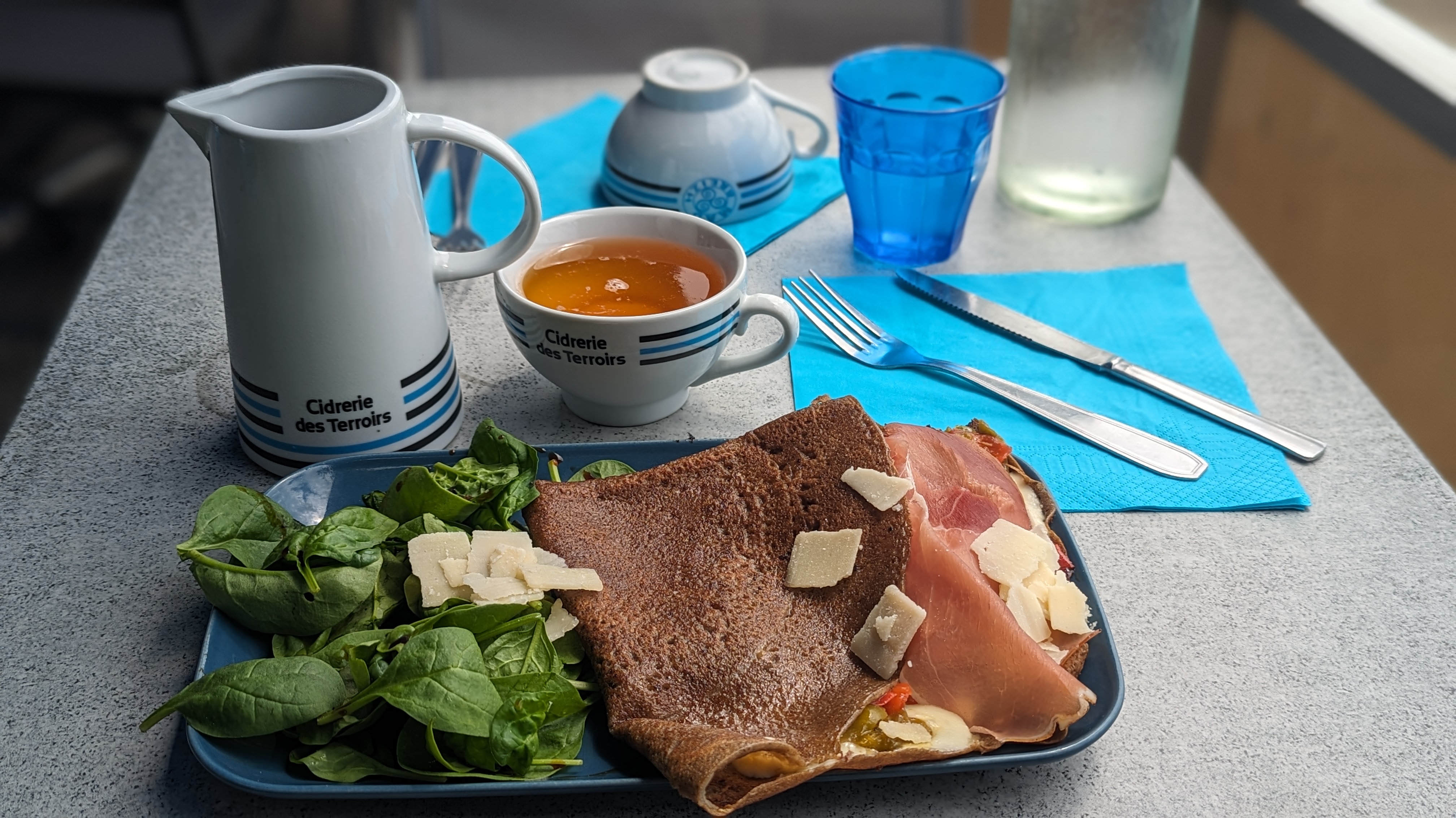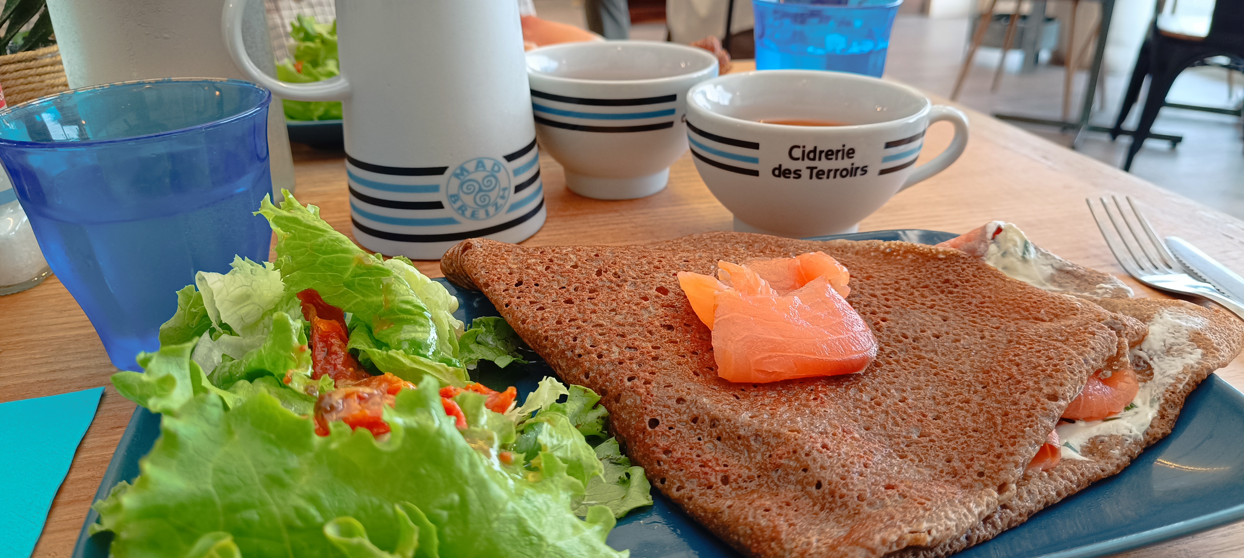 La galette Monsignor était délicieuse, le fromage de chèvre avec le confit d'oignons c'est une combinaison parfaite. Le cidre doux est également très bon. Rien à redire, tout était parfait, les serveuses étaient très agréables et n'hésitaient pas venir nous voir pour prendre des nouvelles des diverses dégustations. En plus le cadre est magnifique, vue sur la mer. Je recommande vivement ce restaurant.