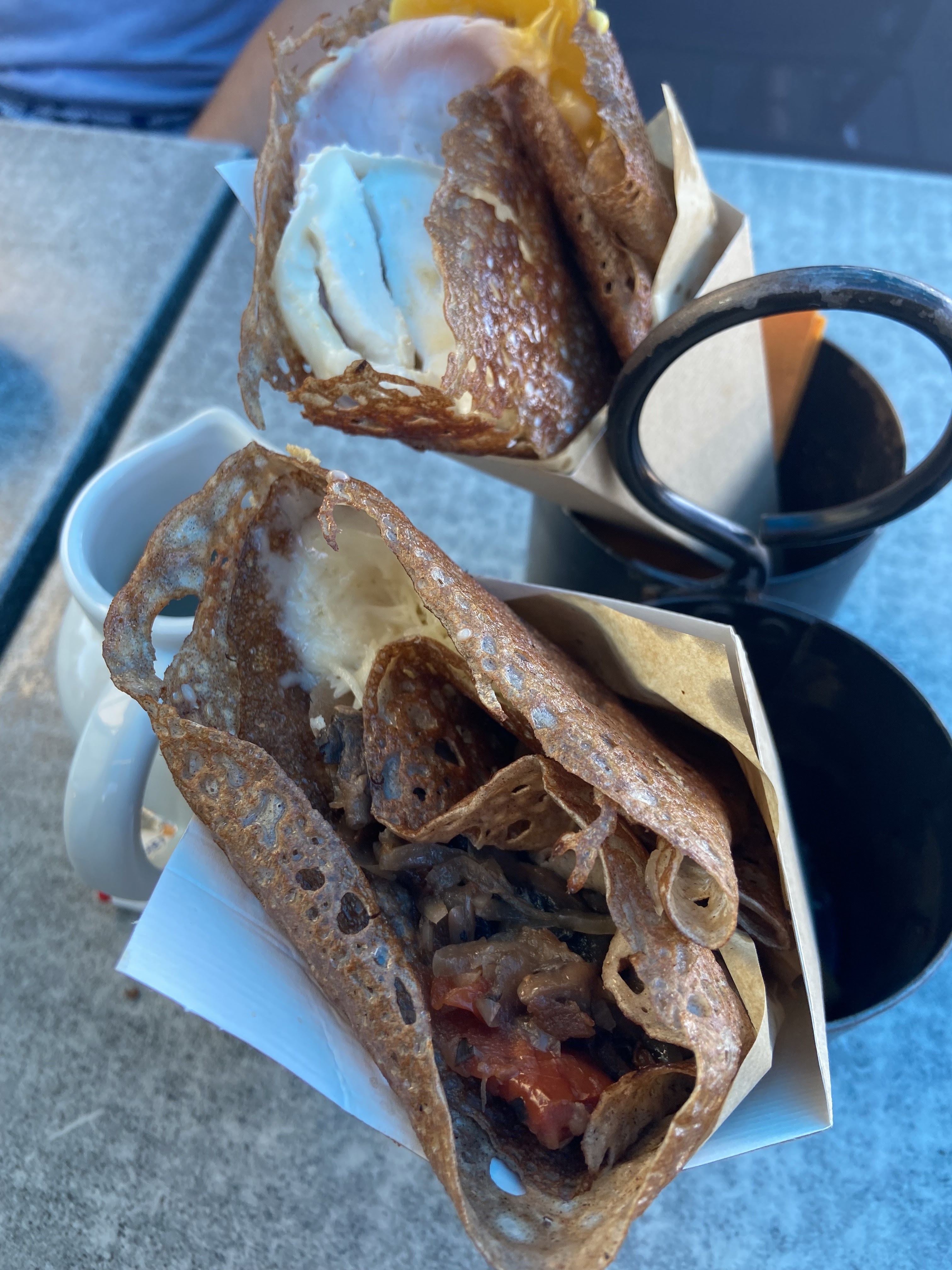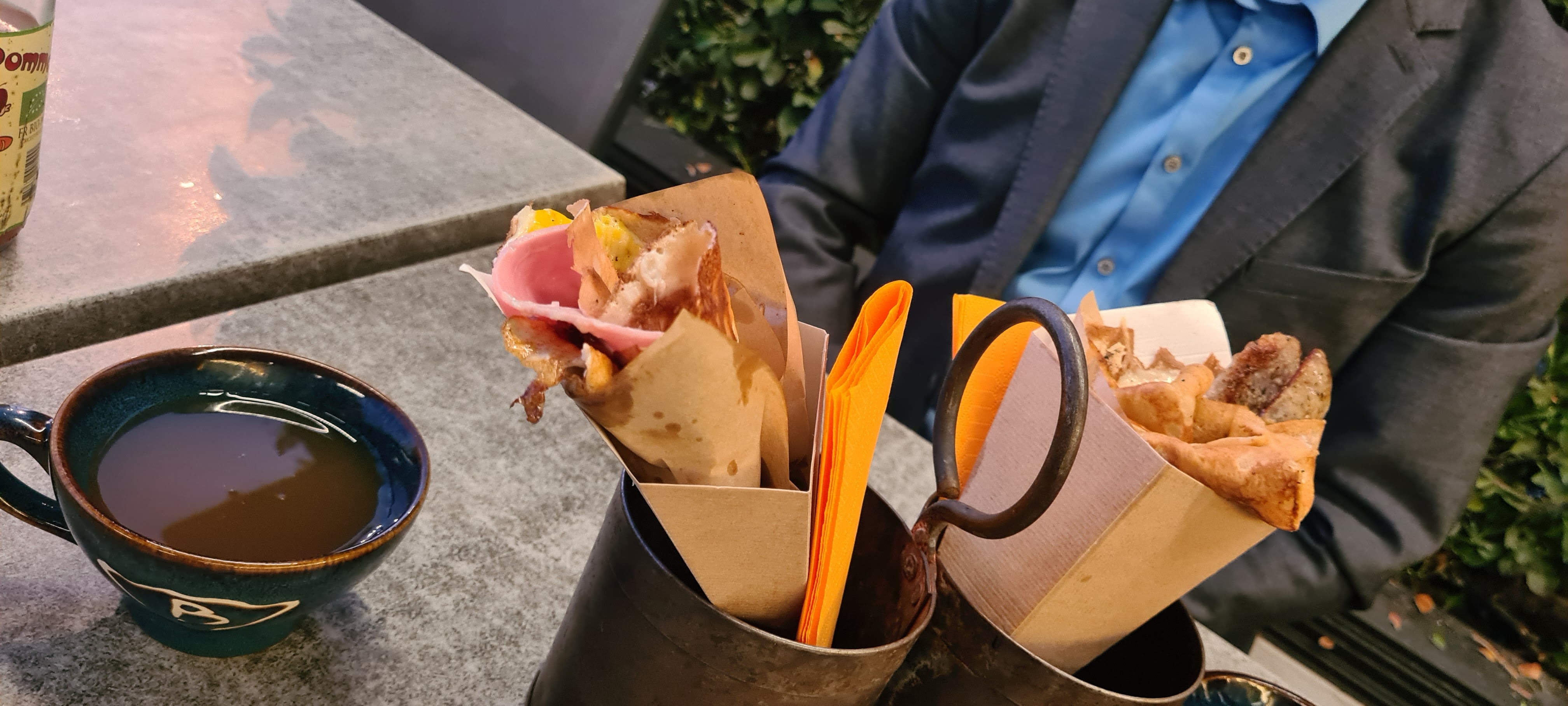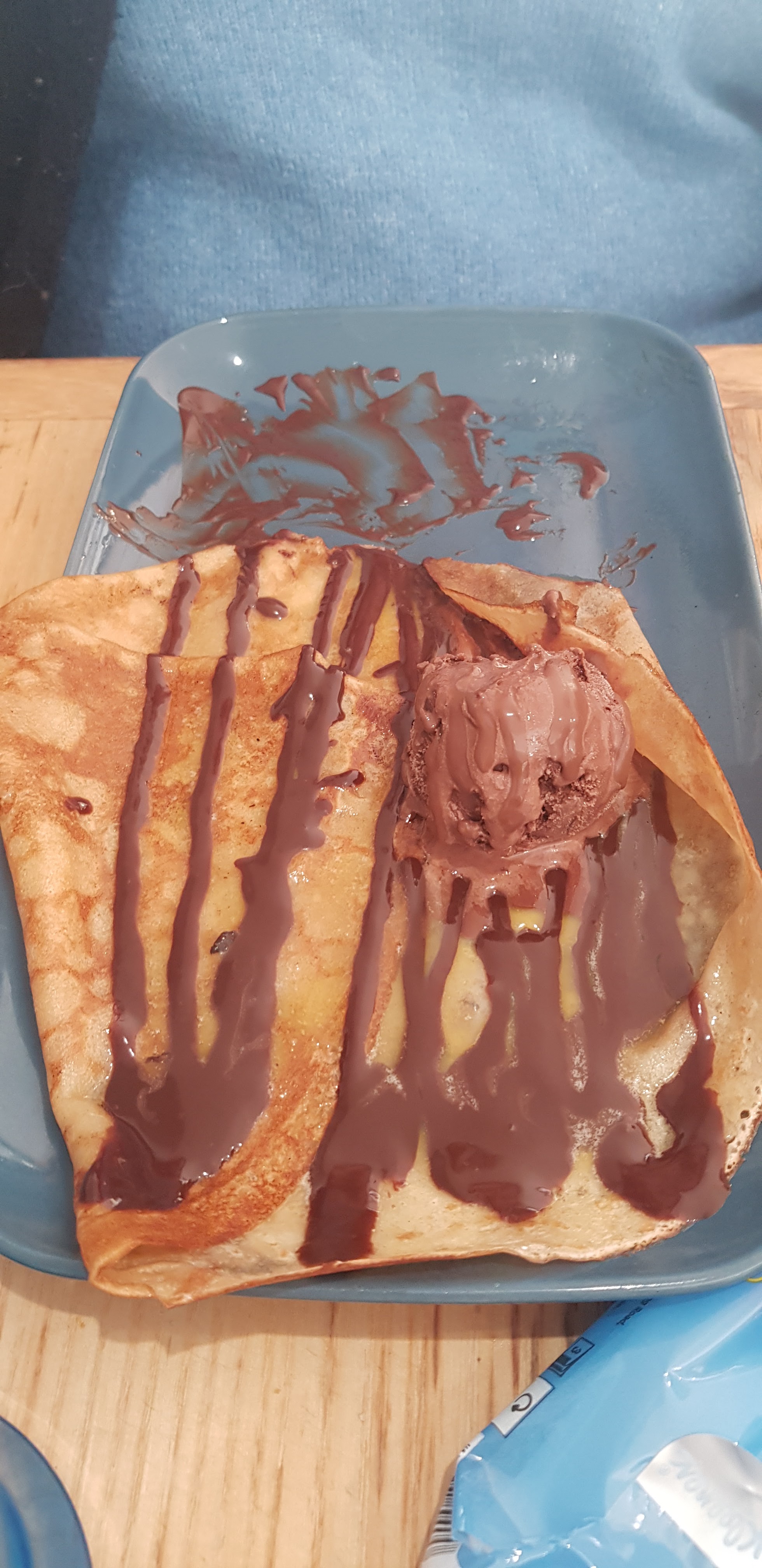 Des galettes et crêpes savoureuses avec un large choix à des prix très abordables ce qui permet d’en prendre plusieurs par personne. Un concept différent car les galettes et crêpes sont servies enroulées ce qui est super sympa (et pour ce qui est de se salir les doigts il y a des serviettes et des rinces doigts gentiment mis à disposition 😉)
