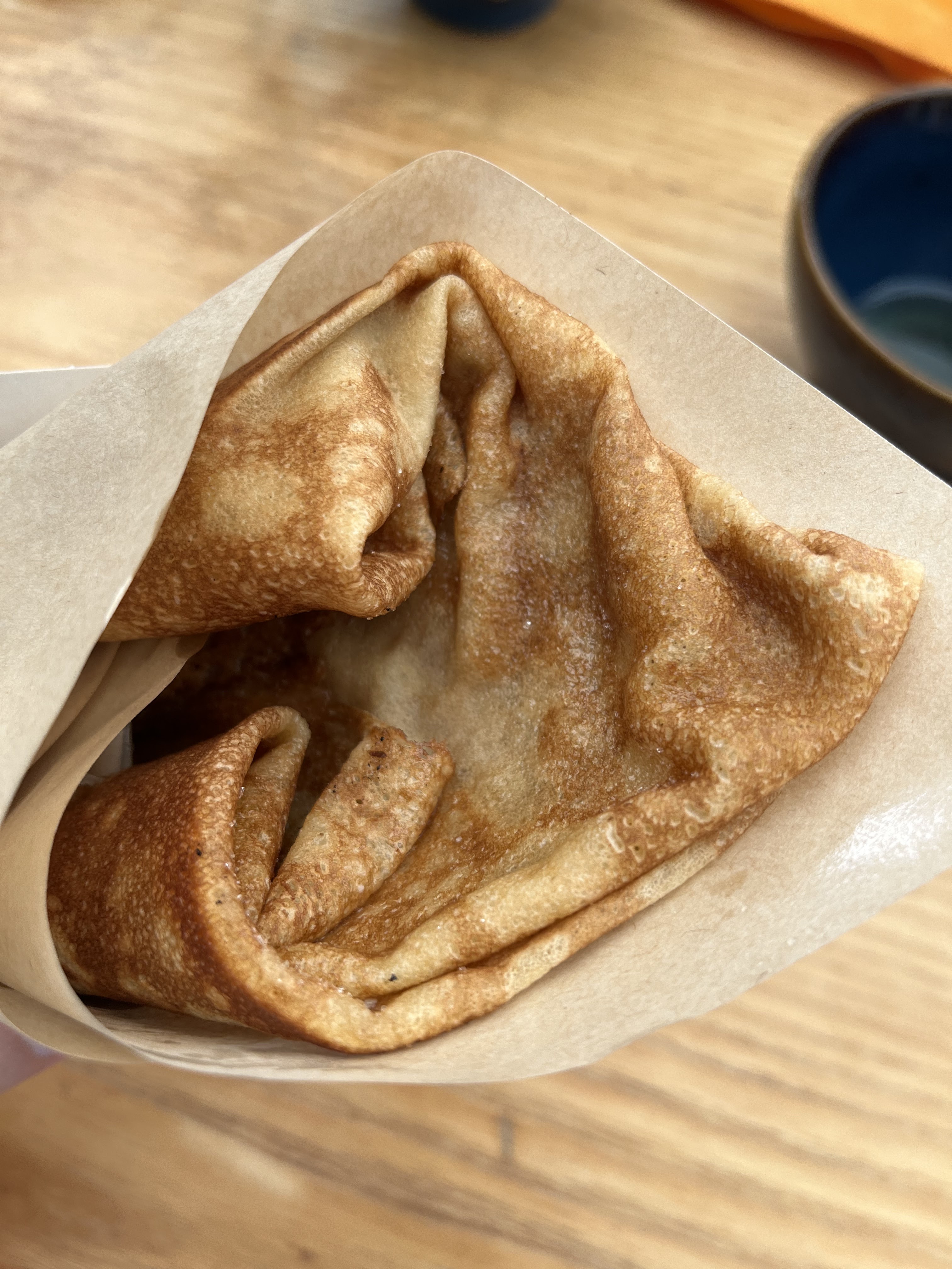 Service chaleureux, crêpes très bonnes, concept sympa avec les galettes en cornet pour un prix très correct.