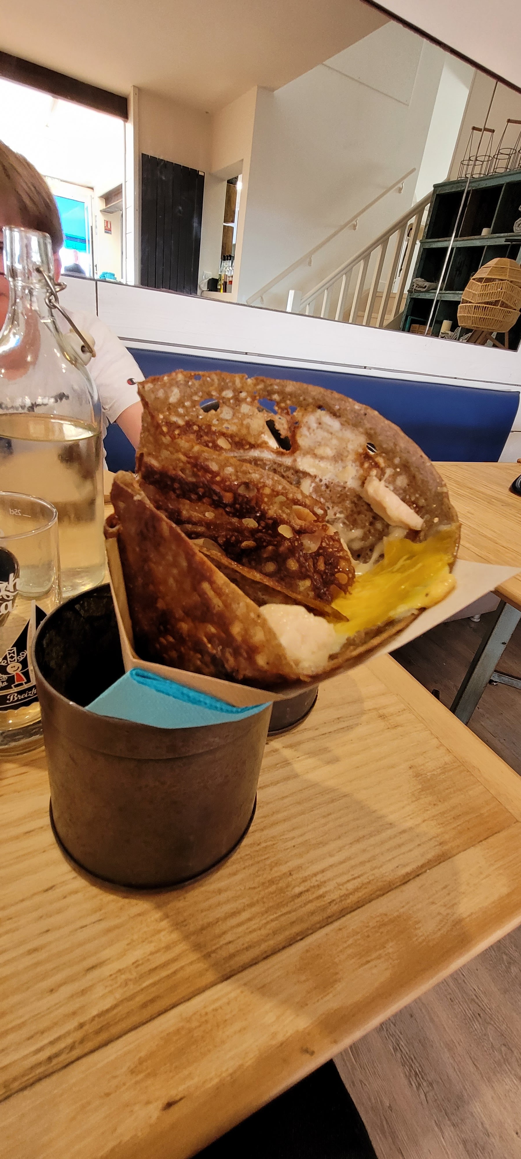 C’était juste succulent! Belle terrasse en face de la mer. On était très contents de constater que c’était ouvert après 15h vu qu’on avait pas encore déjeuné. Le serveur était très aimable. Les galettes très généreuses! Vraiment je recommande