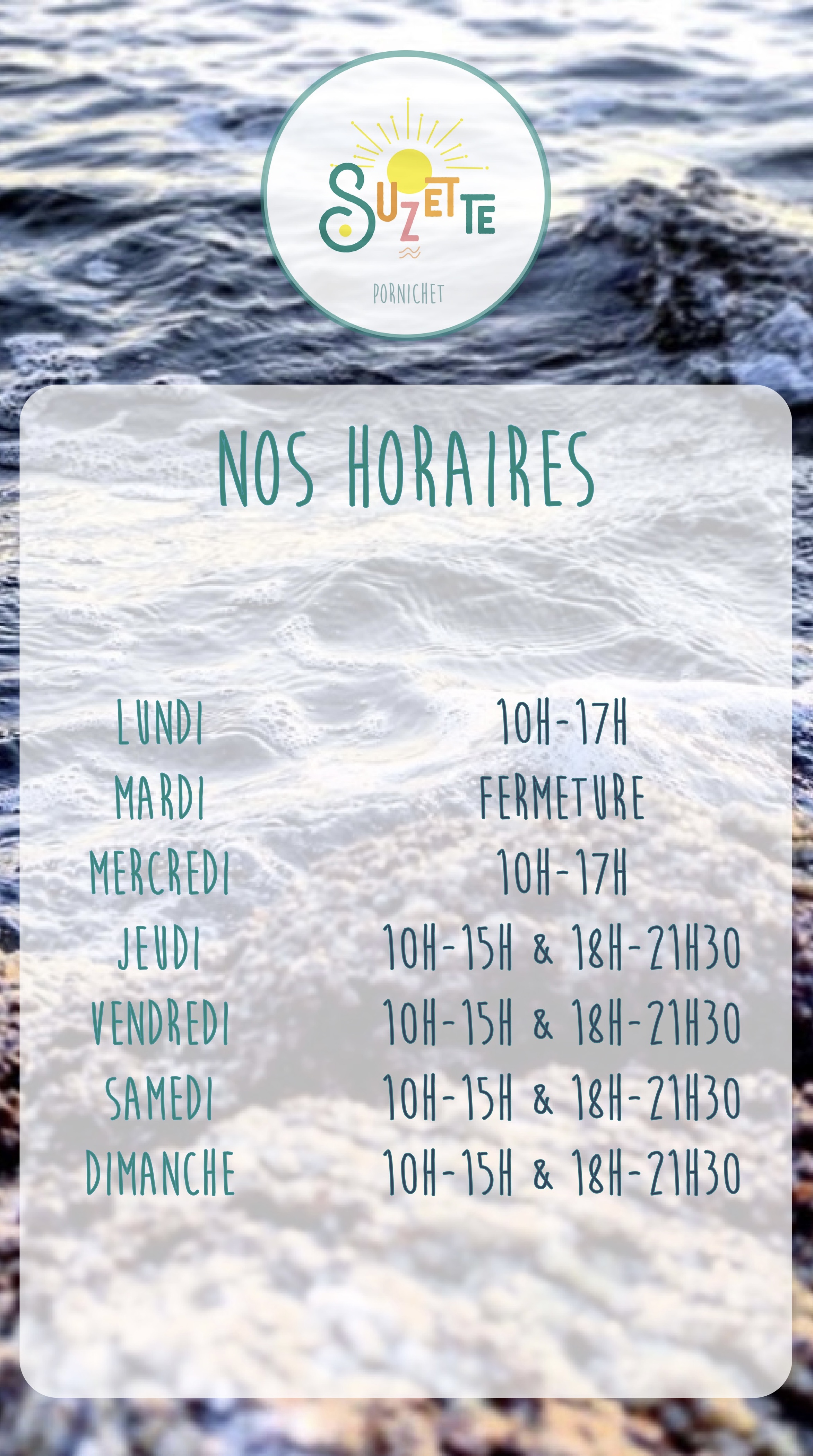 Nous sommes allés Chez Suzette ce mercredi 31 juillet et ce fut un moment exceptionnel, autant pour la cuisine, l’accueil et le service formidable!!! Le cadre est juste parfait, à 20 mètres de la plage, la vue de la terrasse est magnifique surtout au moment du couché de soleil, bref il n’y a rien à jeter ! C’est l’endroit où il faut avoir été à Pornichet ! Merci pour cette soirée.