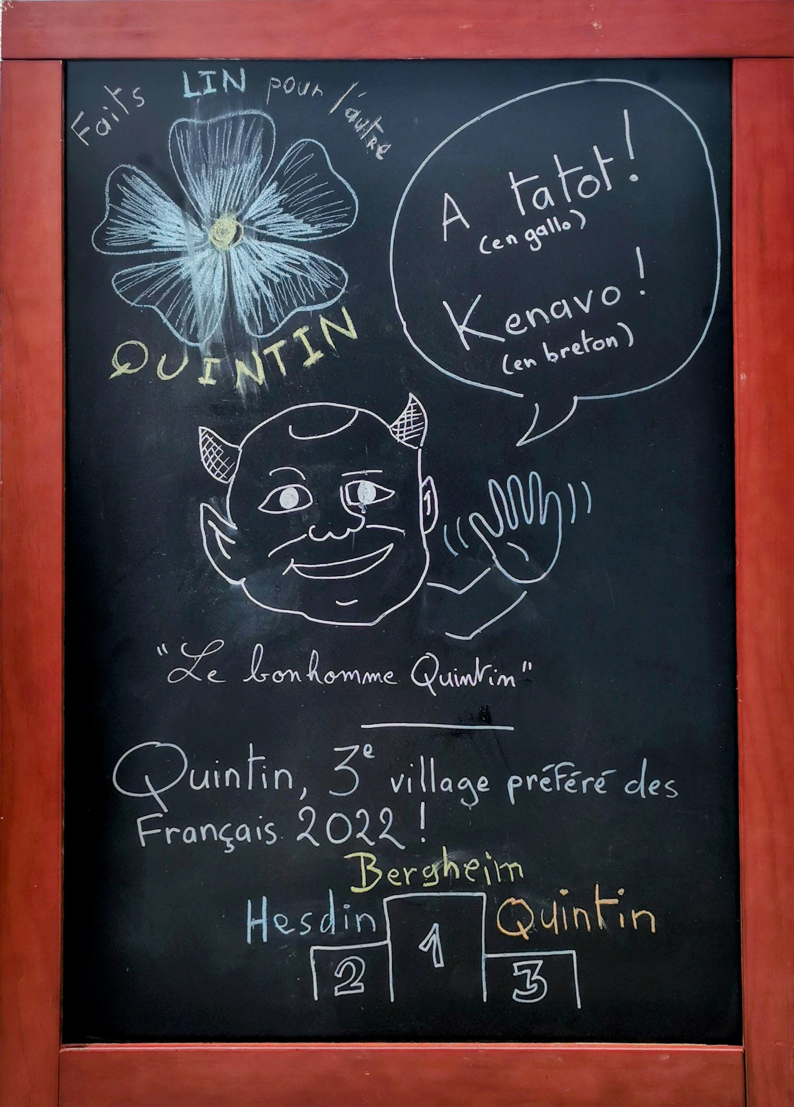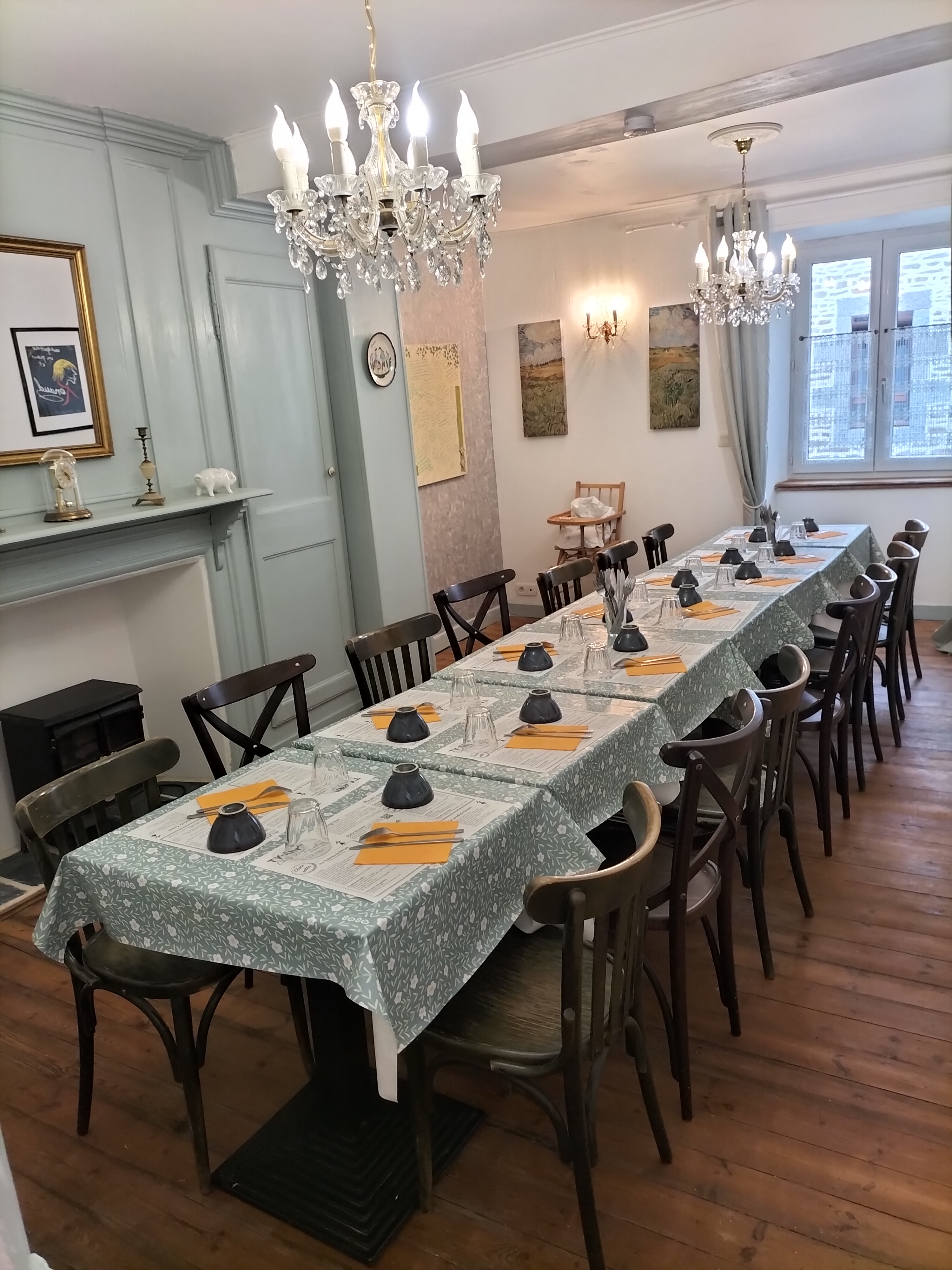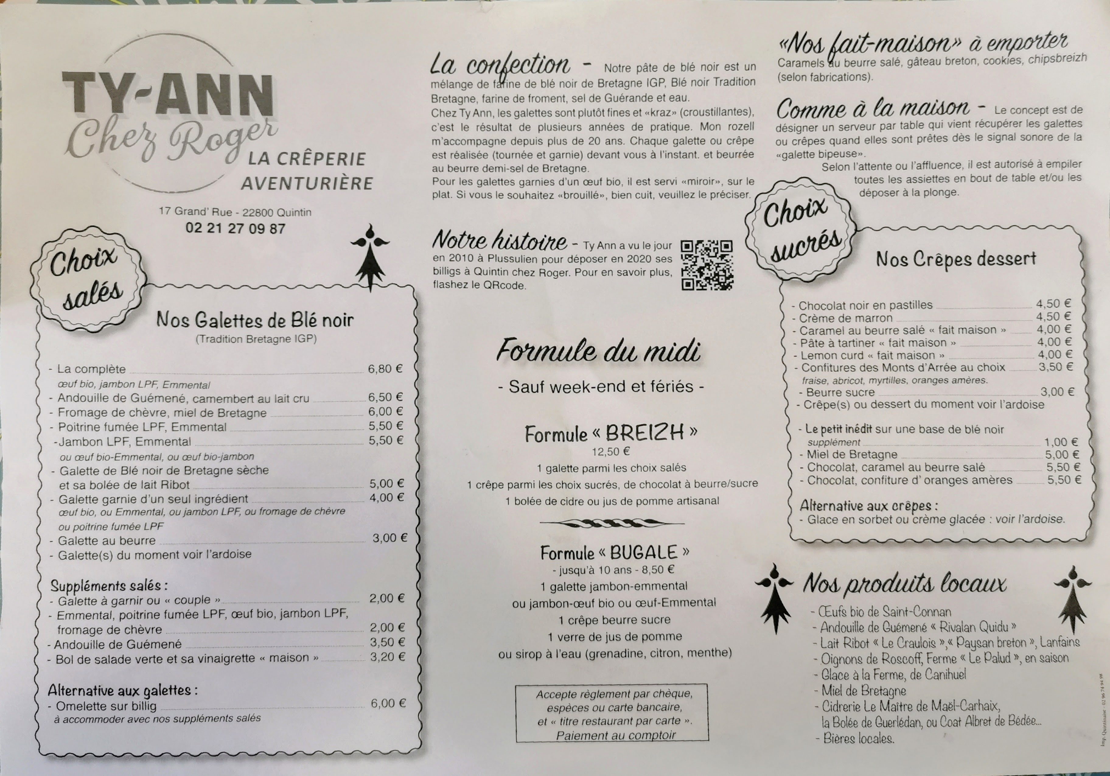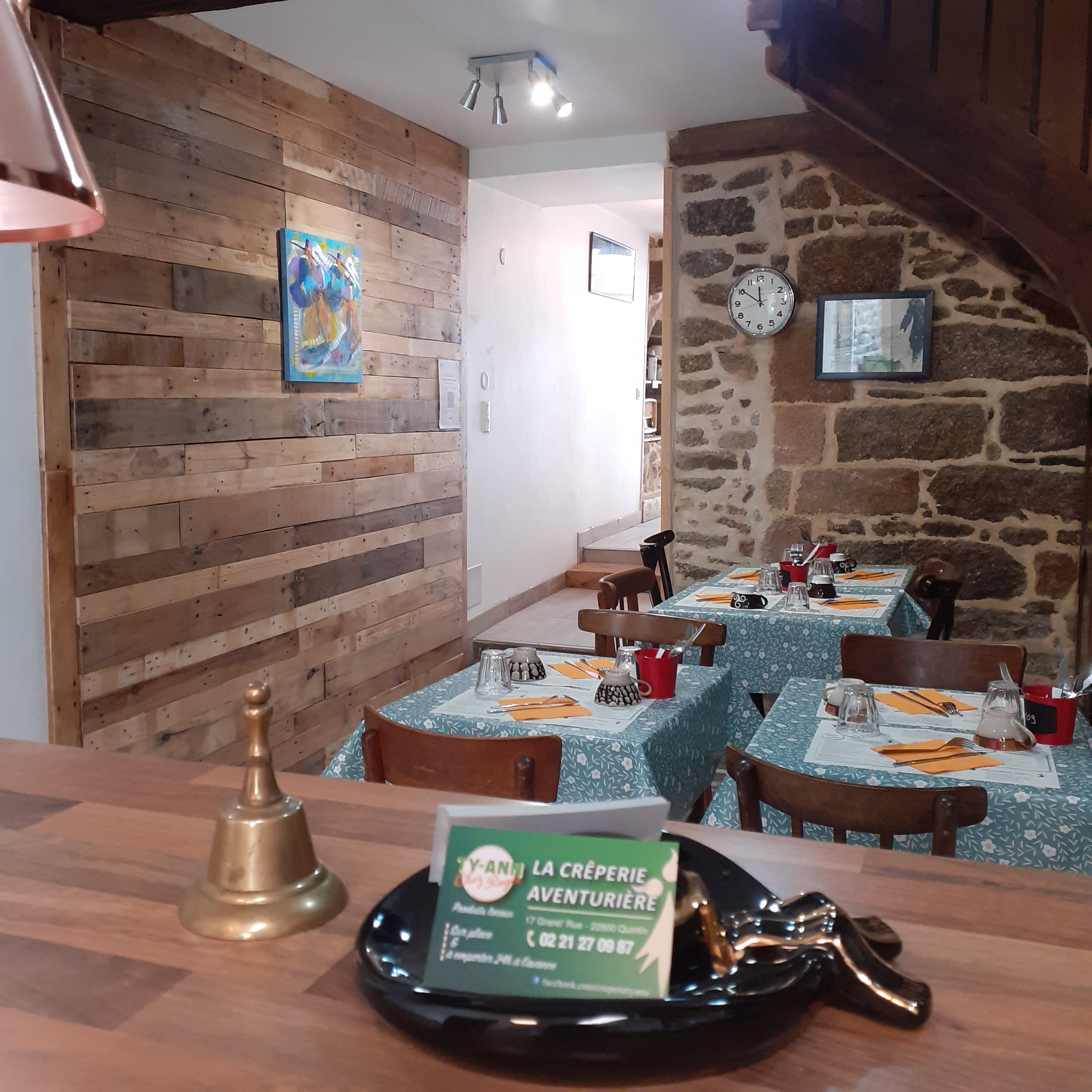 Quel plaisir d'avoir découvert cette crêperie tenue par un couple de passionnés...et les galettes/crêpes sont excellentes avec des produits locaux et maison( aux prix enfin abordable pour une crêperie). Un professeur d'histoire/géographie de Quintin ( très connu et apprécié)habitait cette maison, ce qui explique les belles cartes de France...