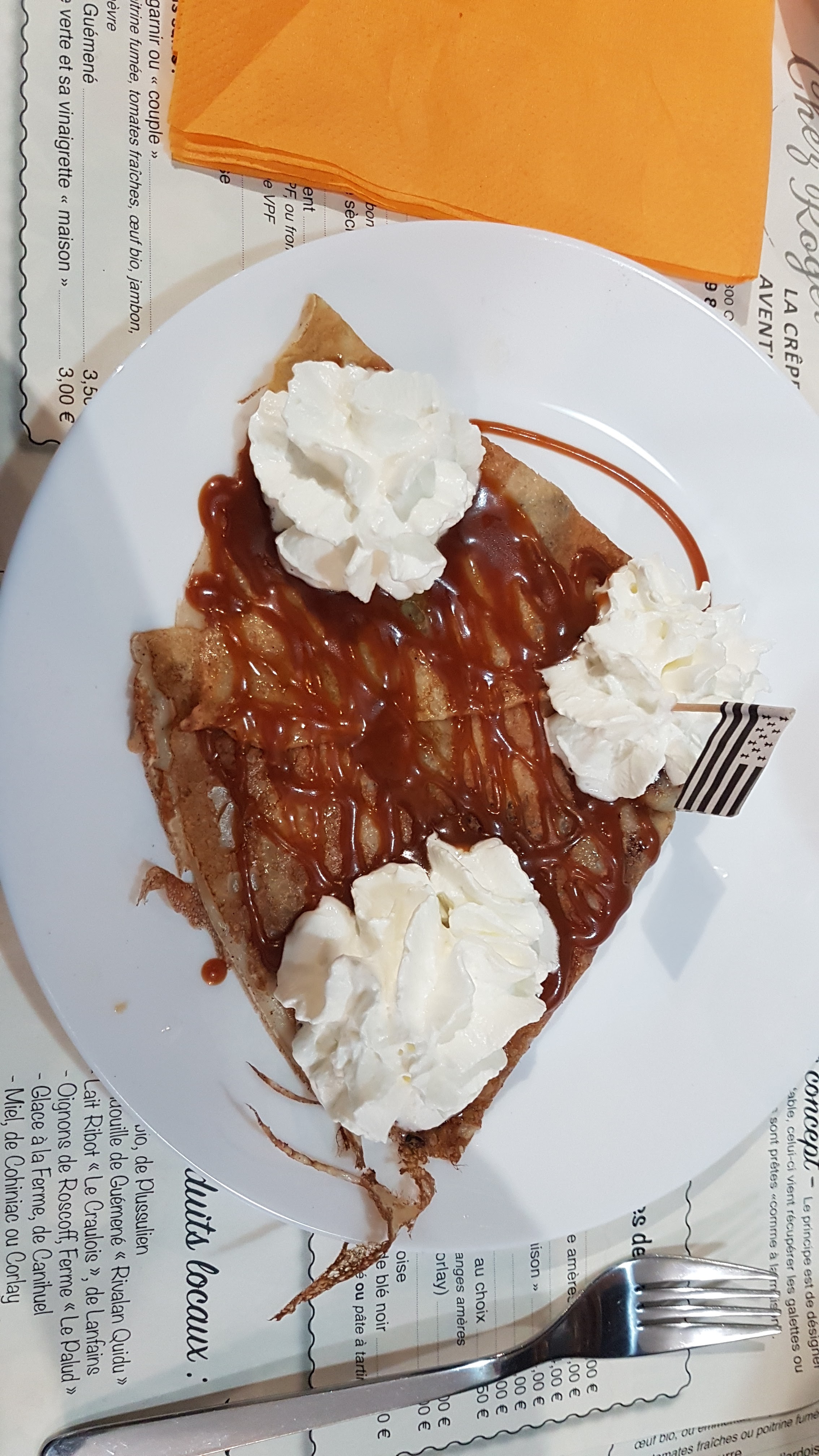 Tout y est parfait, l'accueil, la qualité des galettes, des crêpes, sans oublier le choix du cidre.. J'y joins qu'une photo de ma crêpe au lemon... Pour Les galettes j'ai oublier de les prendre en photo,, quand elles sont arrivées sur la table je n'ai pu m'empêcher de les manger en 1er 😁😁plus prudent de réserver.