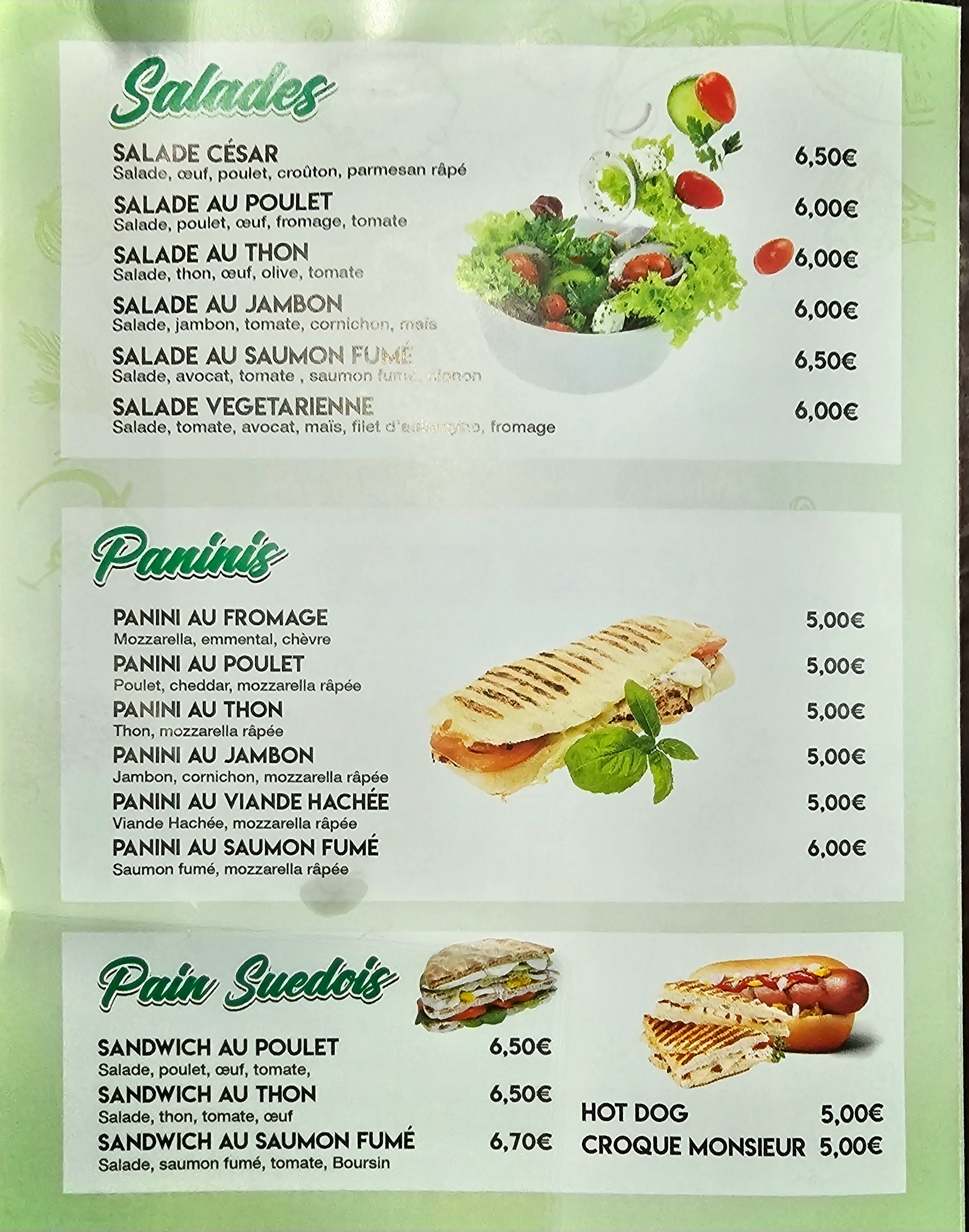 J'ai l'habitude de prendre du sucré, ce qui est un point positif. Mais aujourd'hui première fois je prend un panini poulet qui était pas du tout garnis que du fromage et il y avait une odeur d'essence dans le panini, à voir si le fromage était pas périmé Le sucré je vous le conseille mais le salé a éviter