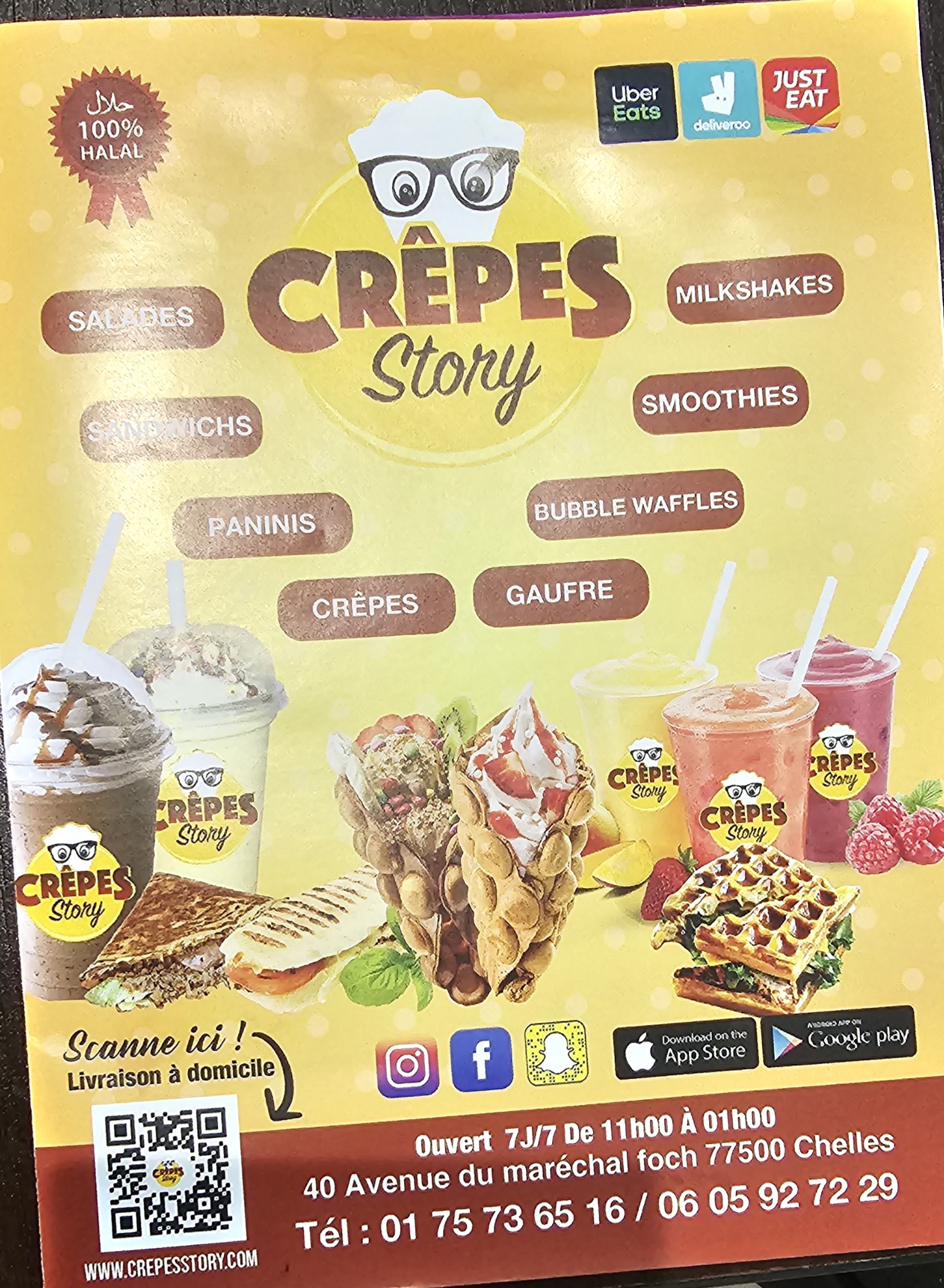 J'ai découvert crêpes story hier et franchement c'était très bon il propose des gaufres des crêpes milkshake salade hot dog ...