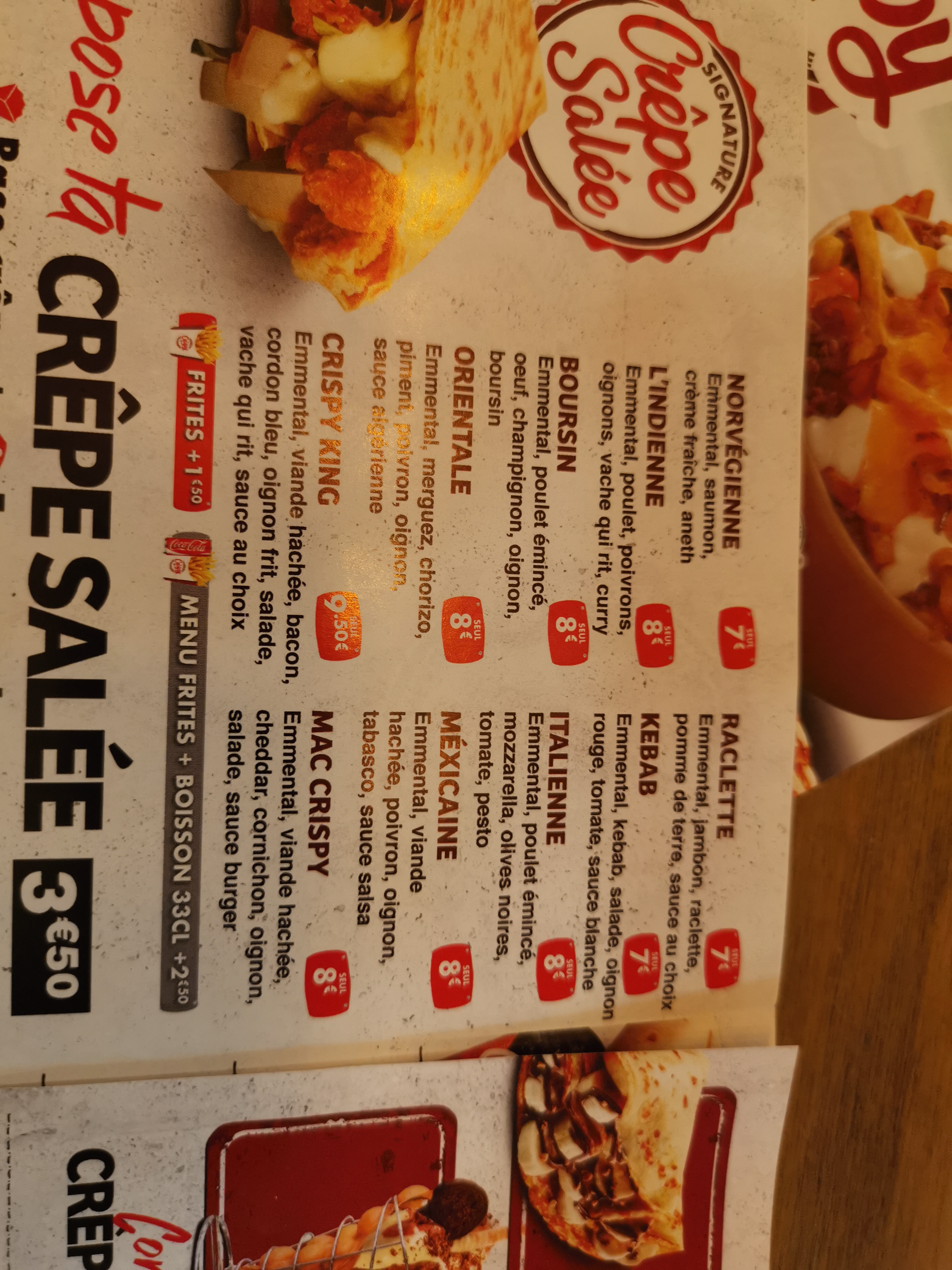 Super accueil , très bonne crêpe bien garnie perso je prends souvent la McCrispy ( style Big Mac ) et je me régale . Je recommande !