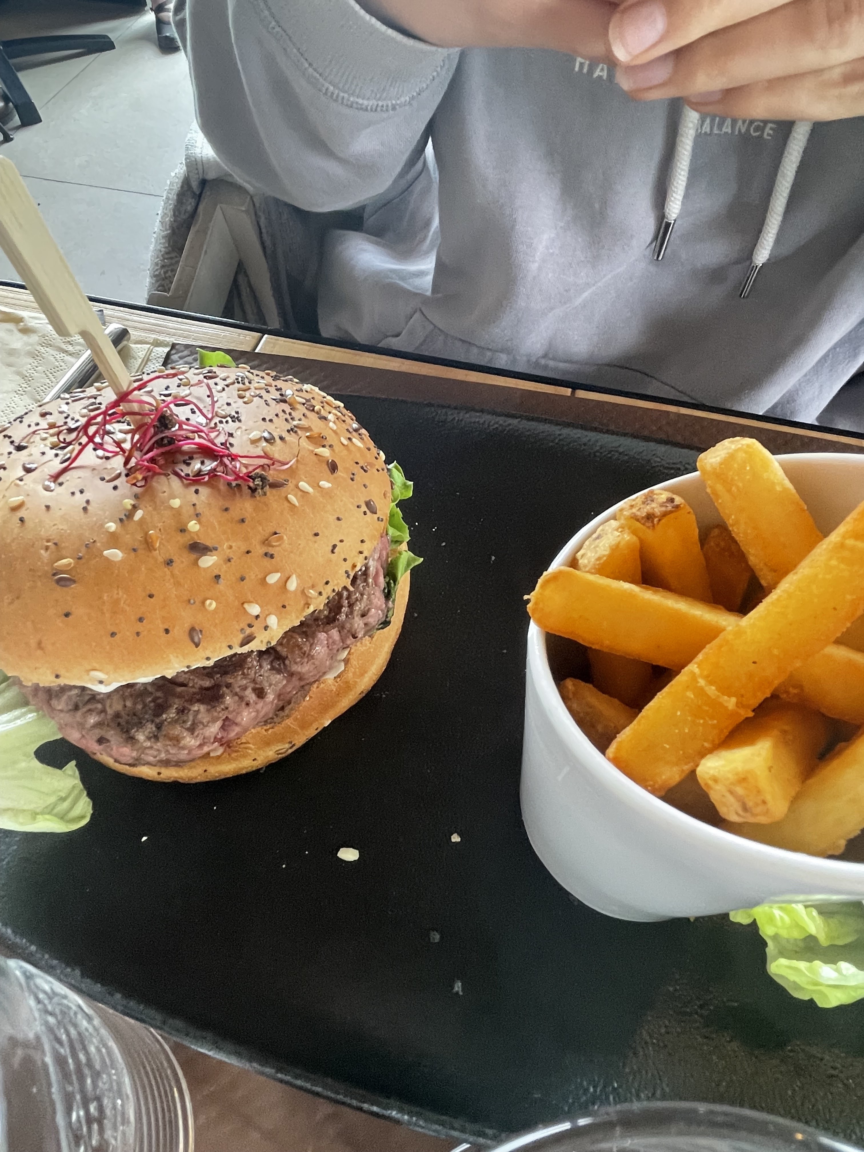 Juste le mérite d'exister ... Un burger aussi médiocre que sur une aire d'autoroute ou un parc d'attraction. Pain même pas grillé et froid ! Viande peu goûteuse, ketchup et mayonnaise pour accompagner les frites très bas de gamme !! bref très (trop) cher pour la qualité. Très déçu