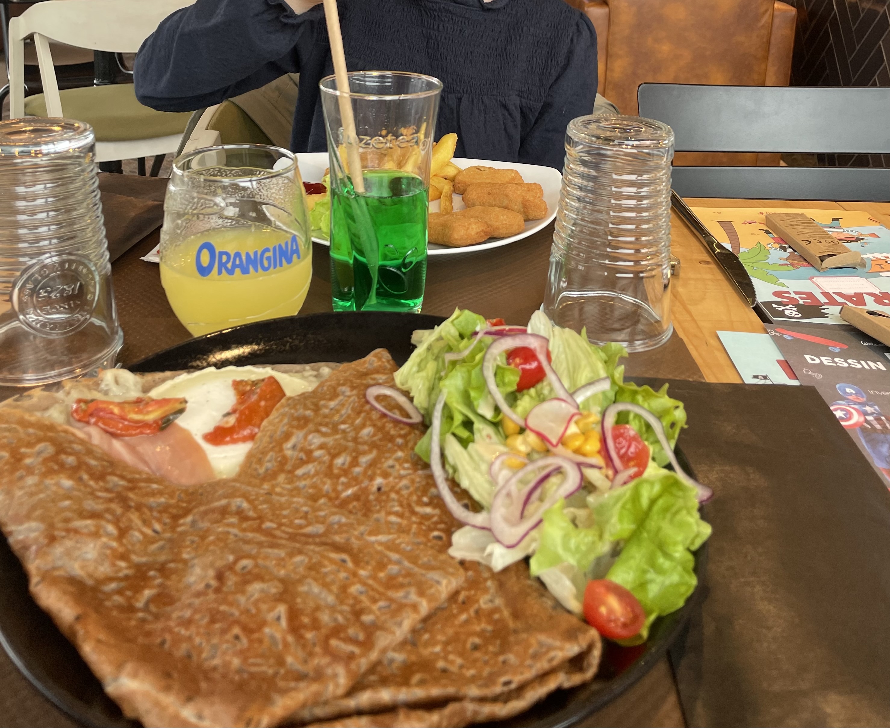 Très bonne crêpes 🥞 repas parfait et copieux endroit très Propre Super ambiance équipe au top a l'écoute je recommande vivement