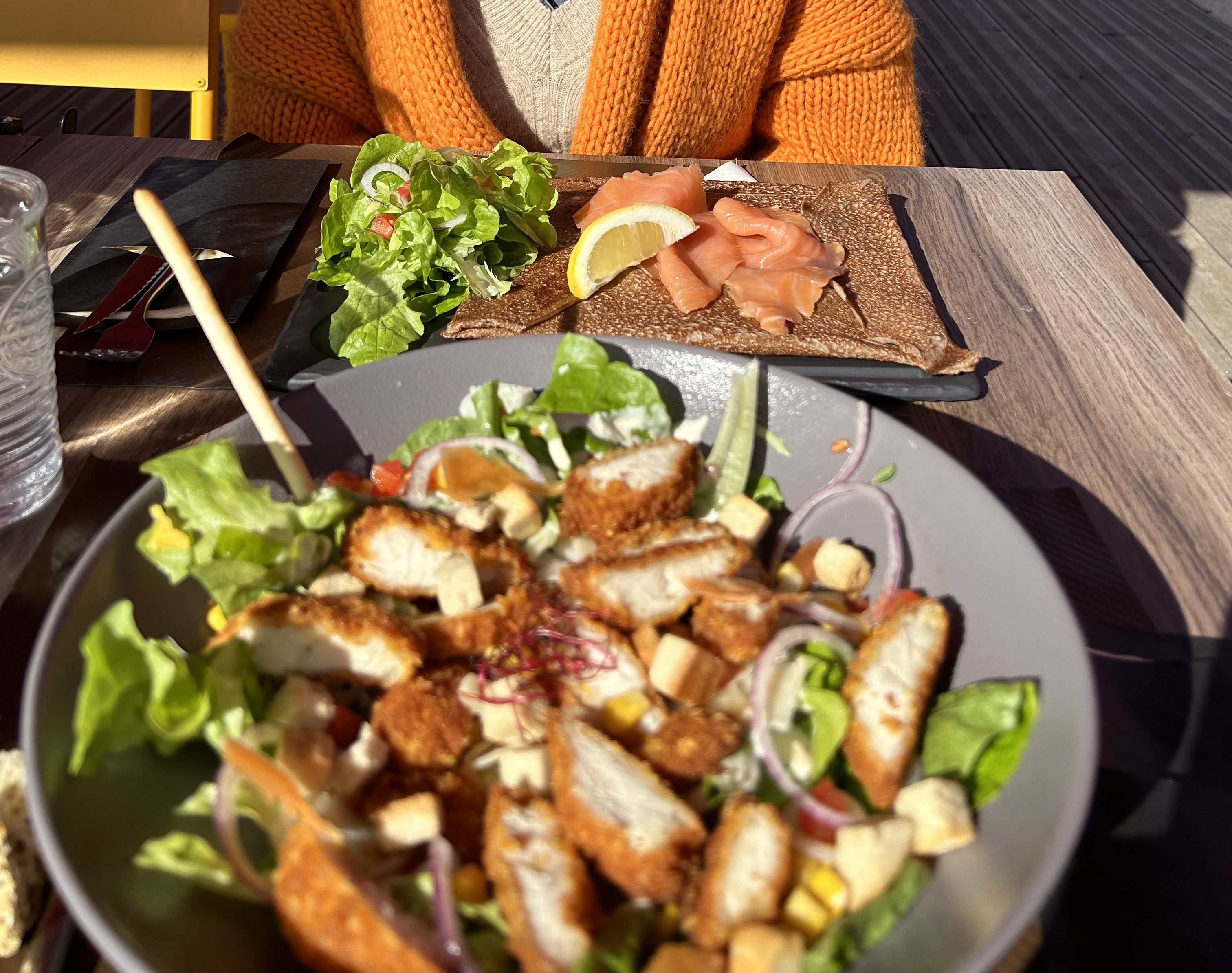 Je reviens d'un séjour de 3 semaines en Bretagne, et bien leur crêpes et galettes tiennent à peu pres la comparaison. Salades et burgers sont très correctes comme leur glace. Une bonne petite adresse pour manager assez rapidement et bon.