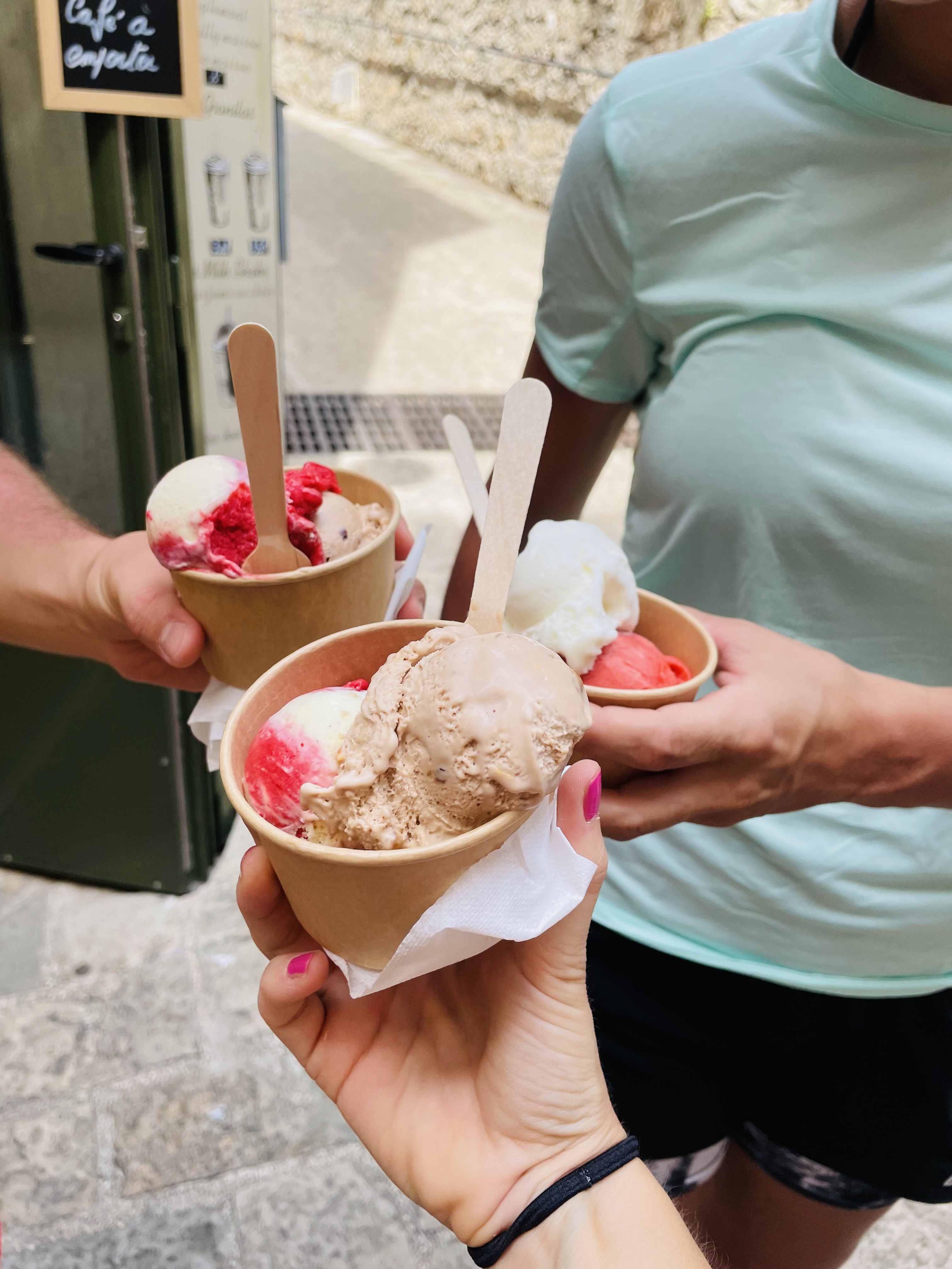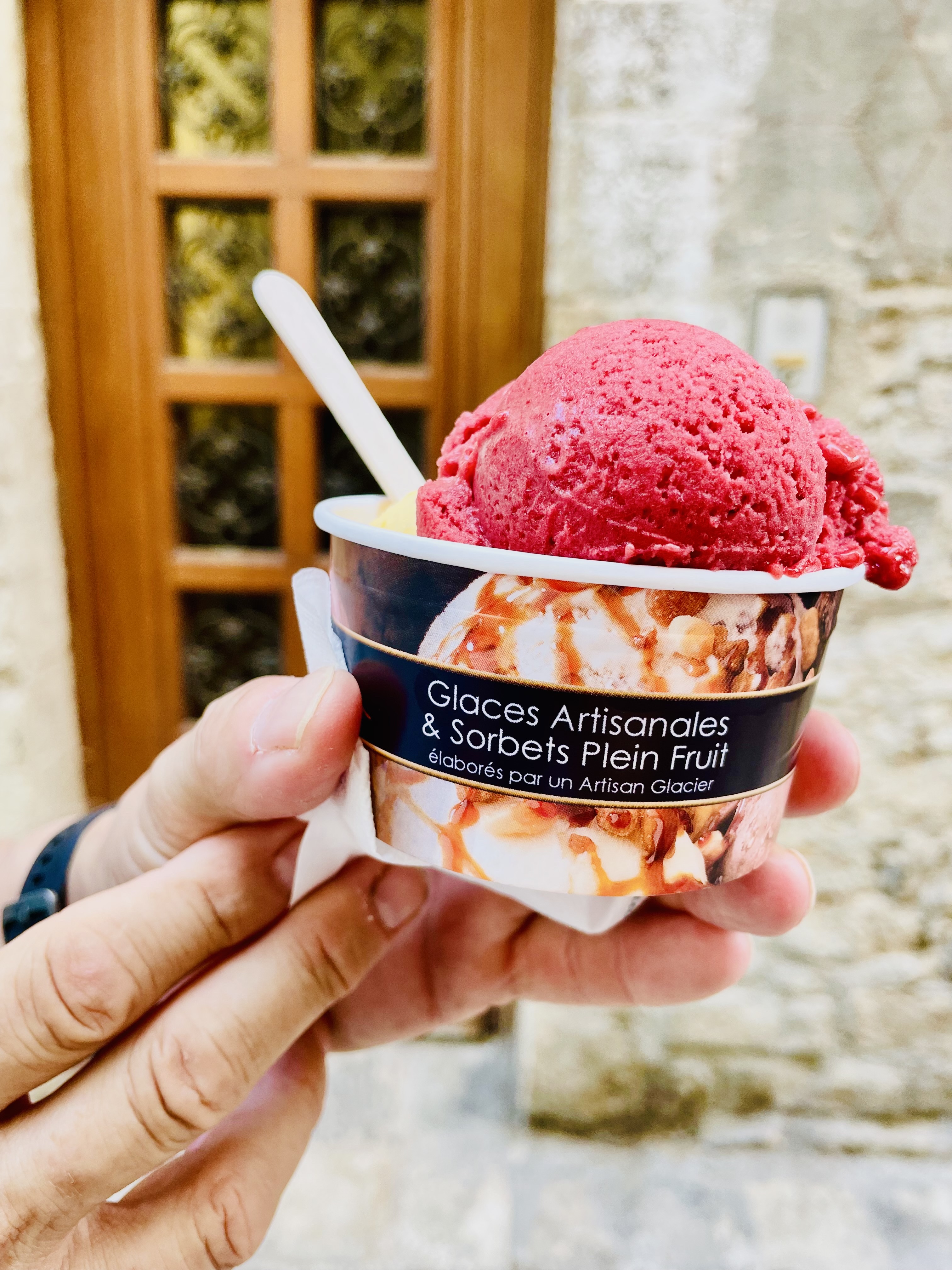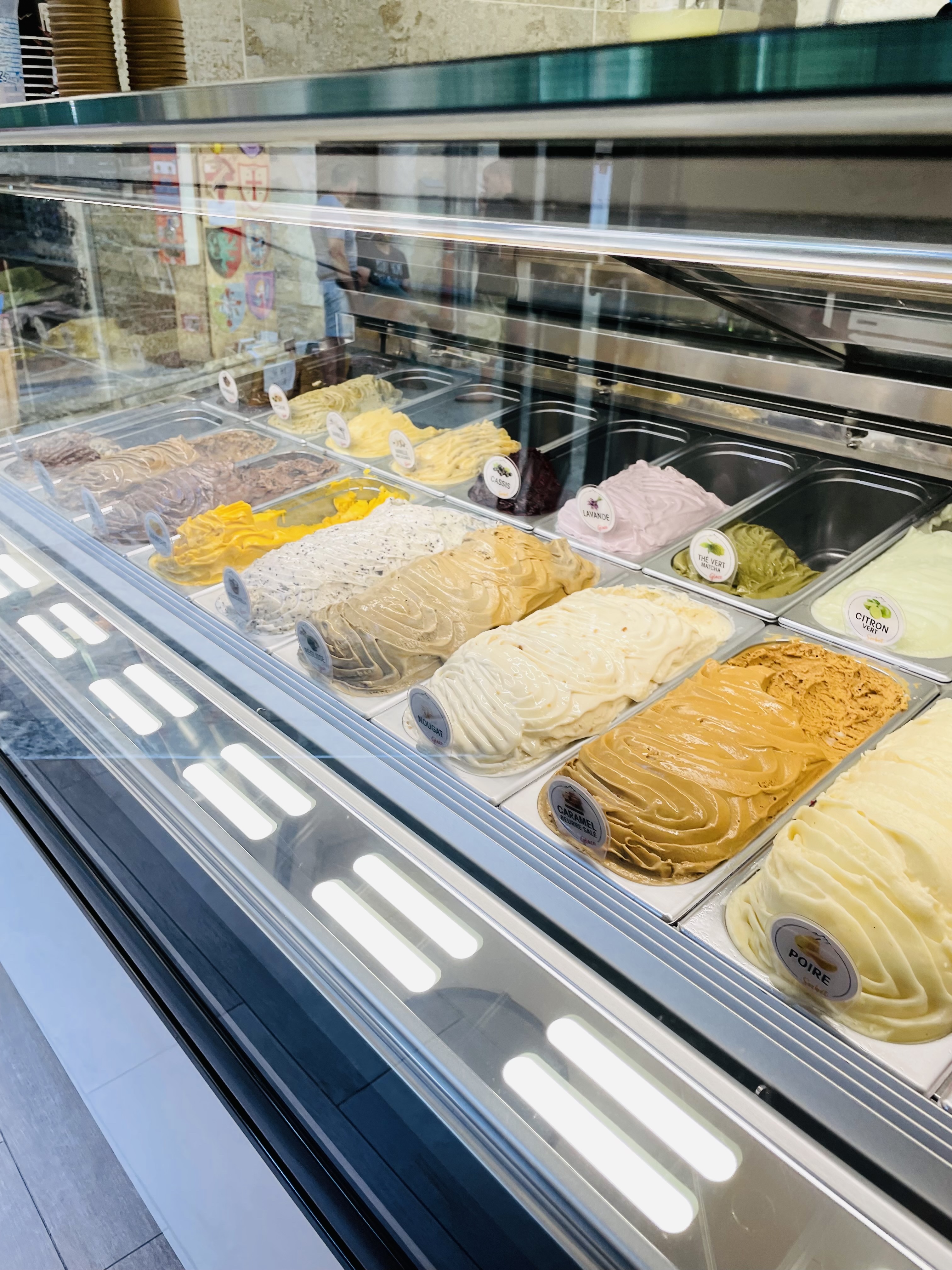 De passage dans ce magnifique village, une petite glace s'imposait avec la chaleur estivale !! Et quelle surprise !! Les glaces sont incroyables, et les quantités également ! Un pot 3 boules avec Citron Basilic, Clémentine et Melon, un régal ! 😍