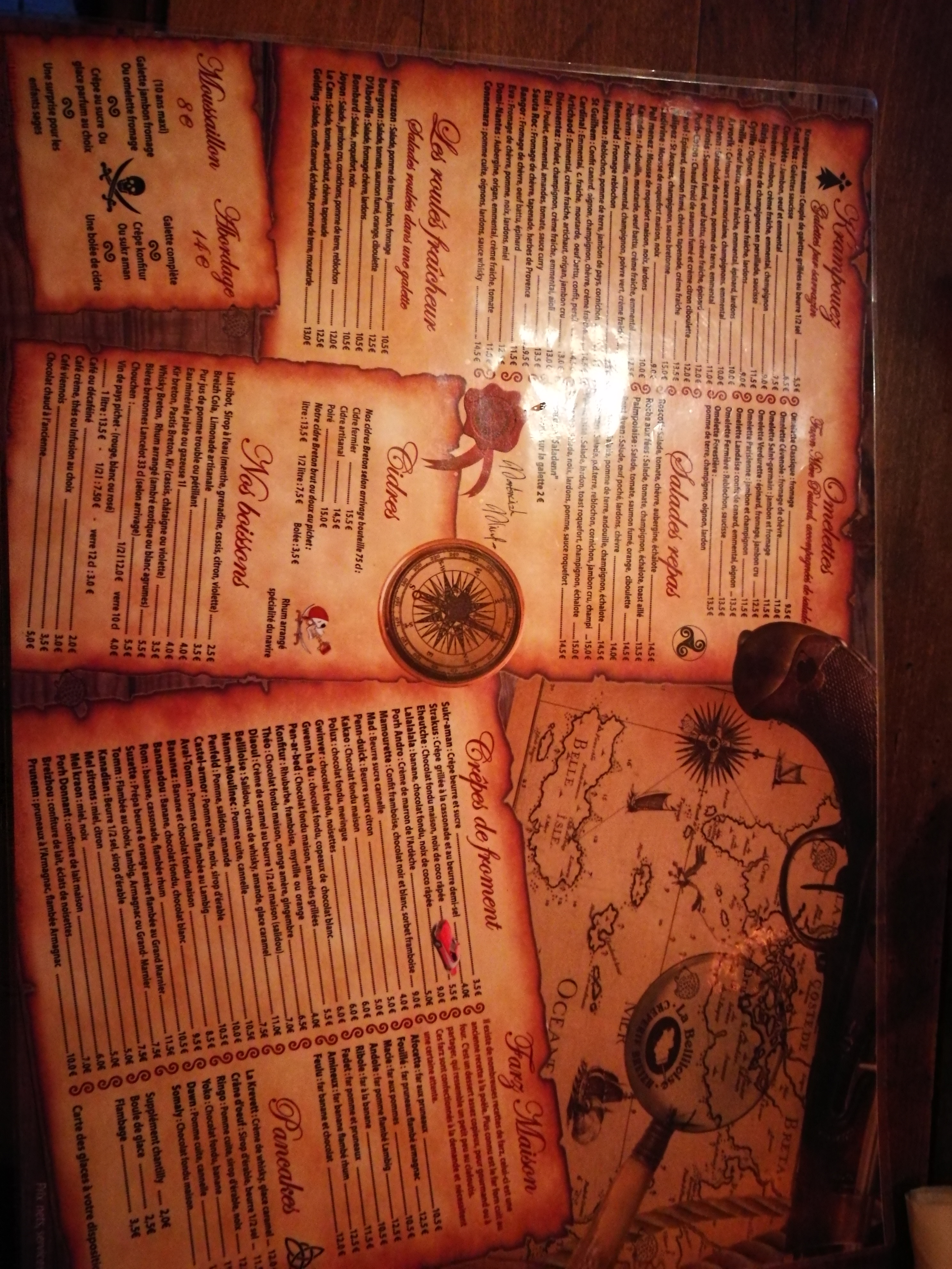Une décoration sur le thème des pirates,musique bretonne et le patron chaleureu. Les assiettes bien remplies et surtout des saveurs qui chatouillent les papilles. Les crêpes sont délicieuses et son whisky un régal. je recommande ce resto pour son prix qui est attractif par rapport à la qualité et quantité des assiettes.