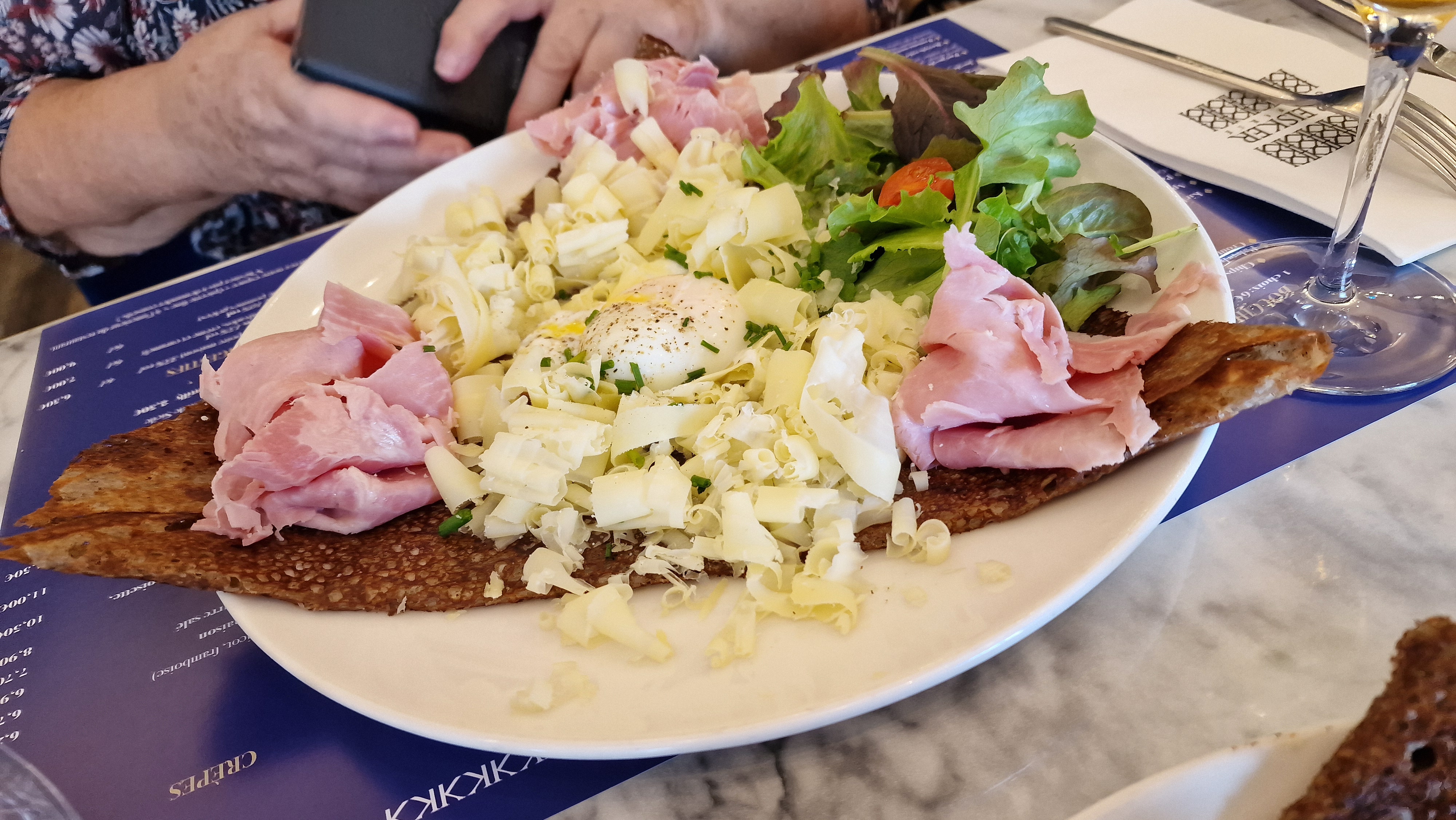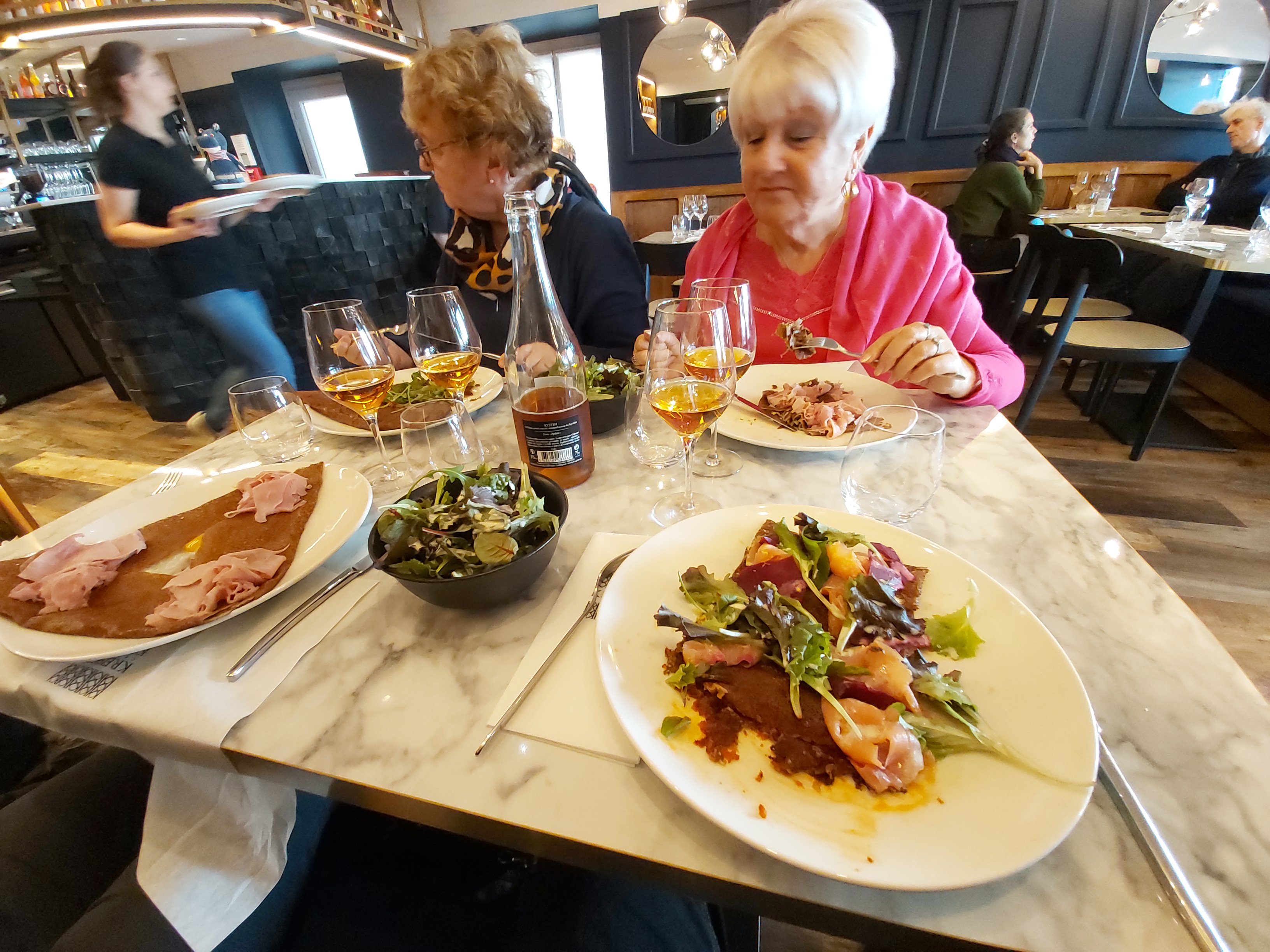Déjeuner à 3 sans réservation. Excellentes galettes et crêpes. Sûrement les meilleures que nous ayons jamais mangées. La déco du restaurant est très jolie et l'équipe de service est vraiment sympathique et souriante. Restaurant découvert par hasard dans lequel nous reviendrons avec plaisir dans le futur.