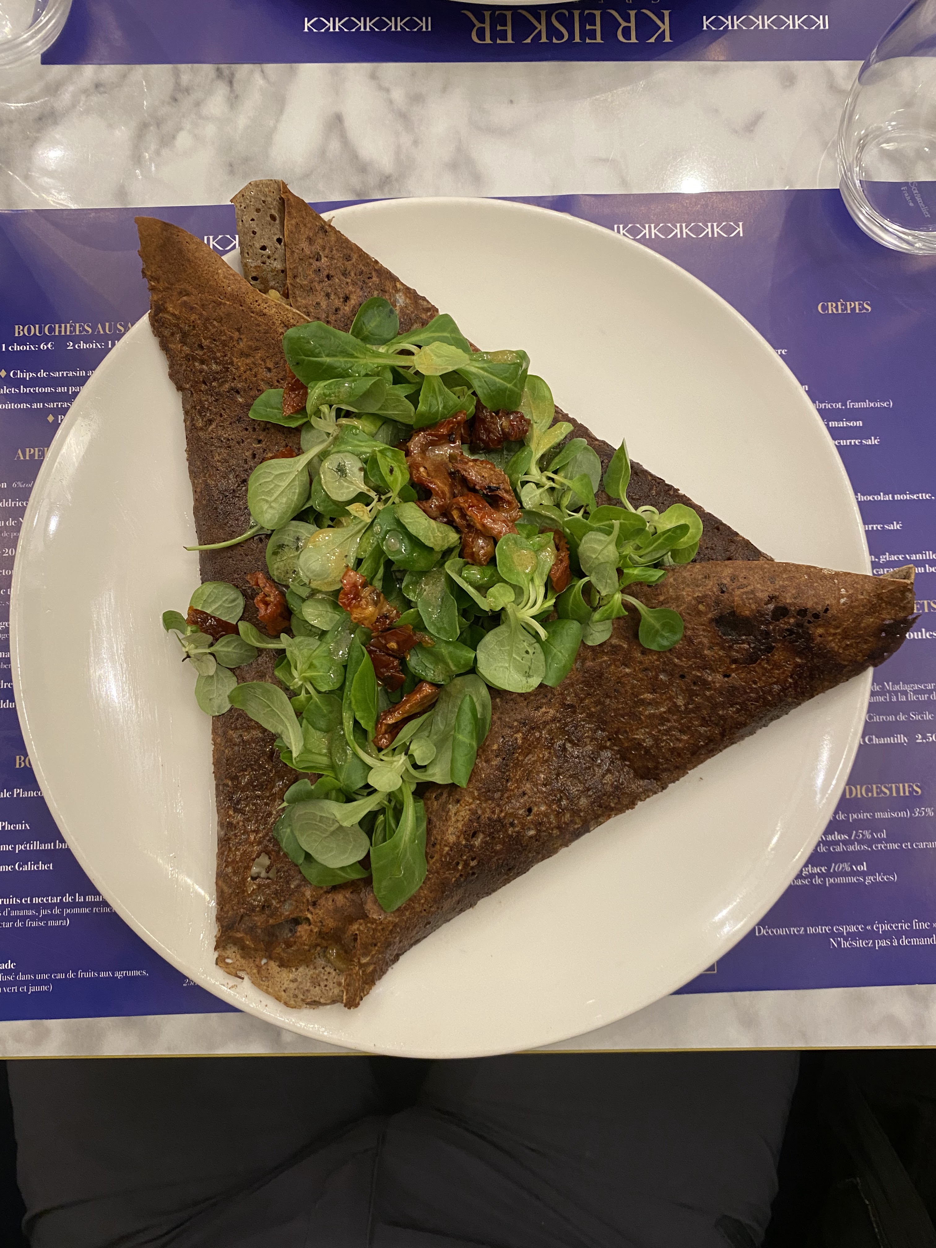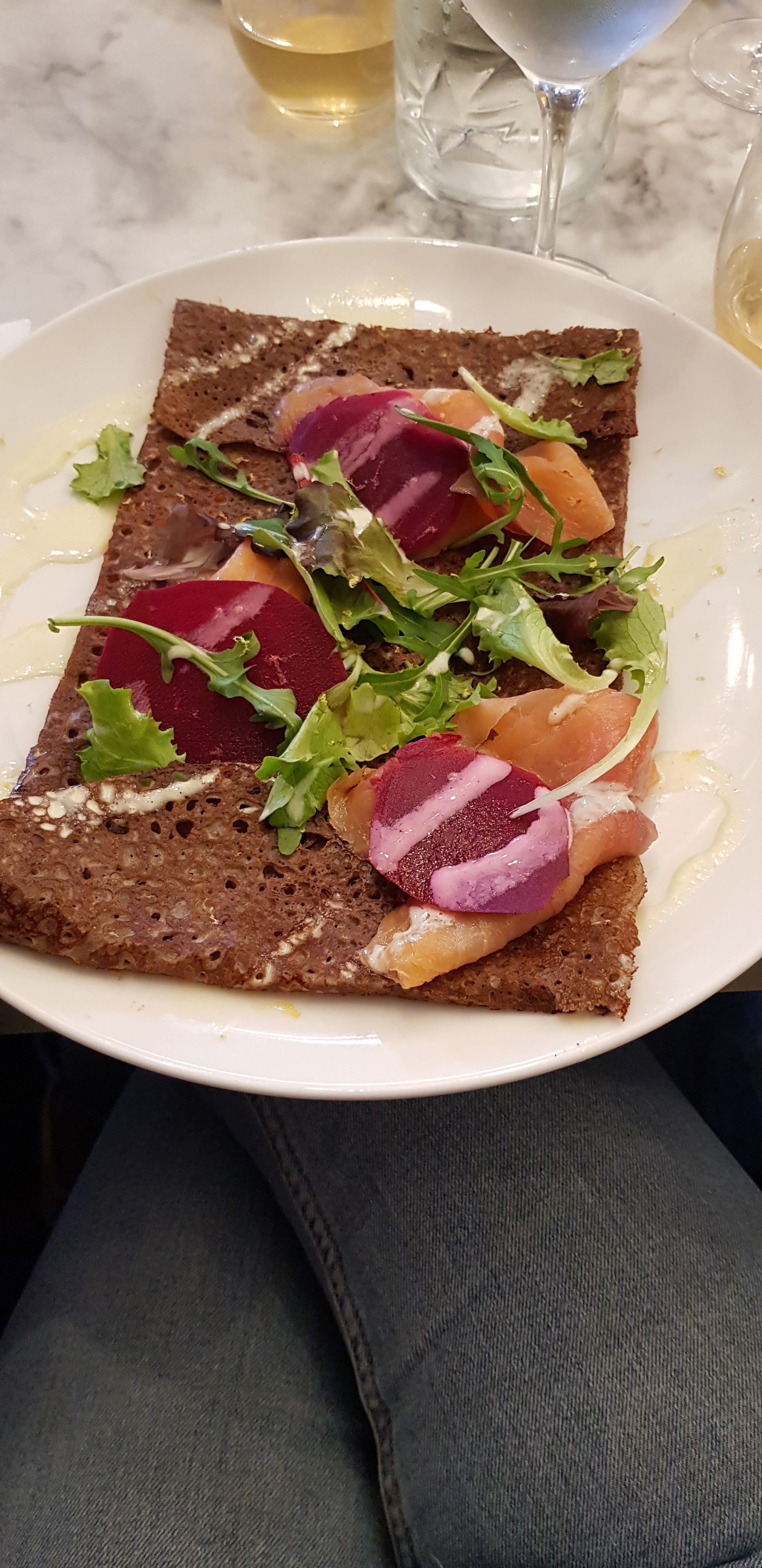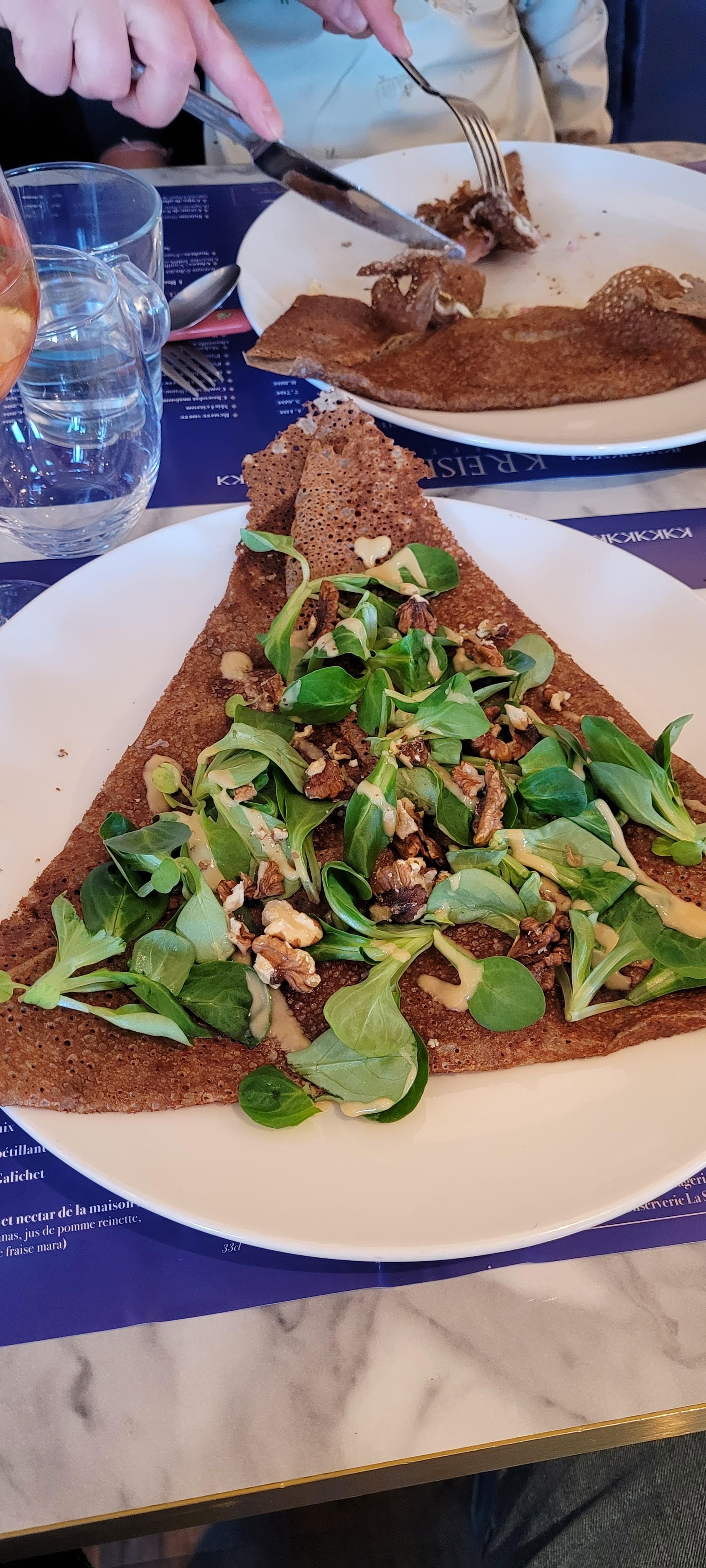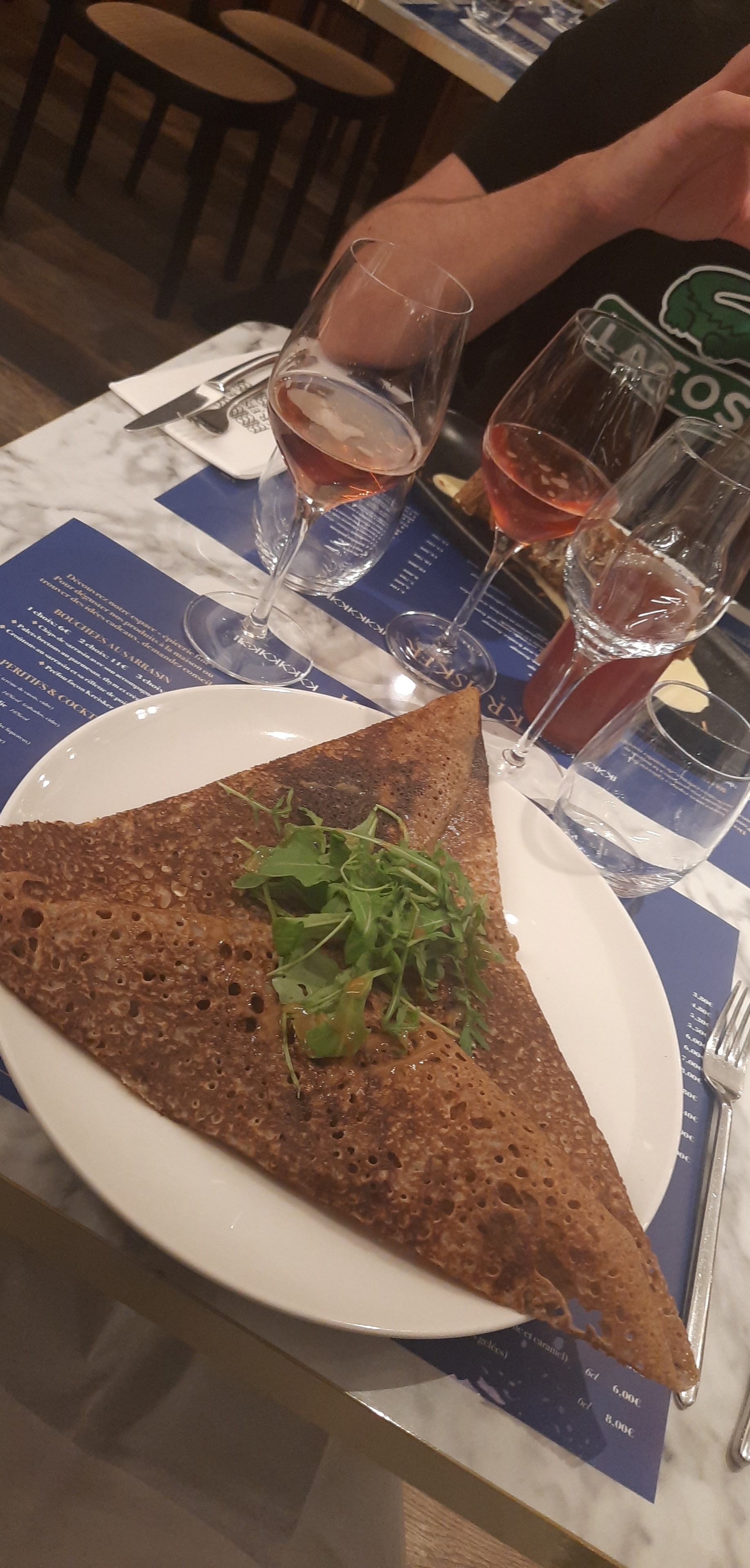 Les crêpes étaient incroyables ! Je recommande vivement, attention cependant à réserver car il est toujours complet !! Superbe décoration, serveurs très gentils et extrêmement souriants, les plats sont très bons et bien présentés. Un peu d’attente entre les plats mais ceci est due à la grande fréquentation du resto. On a adoré !