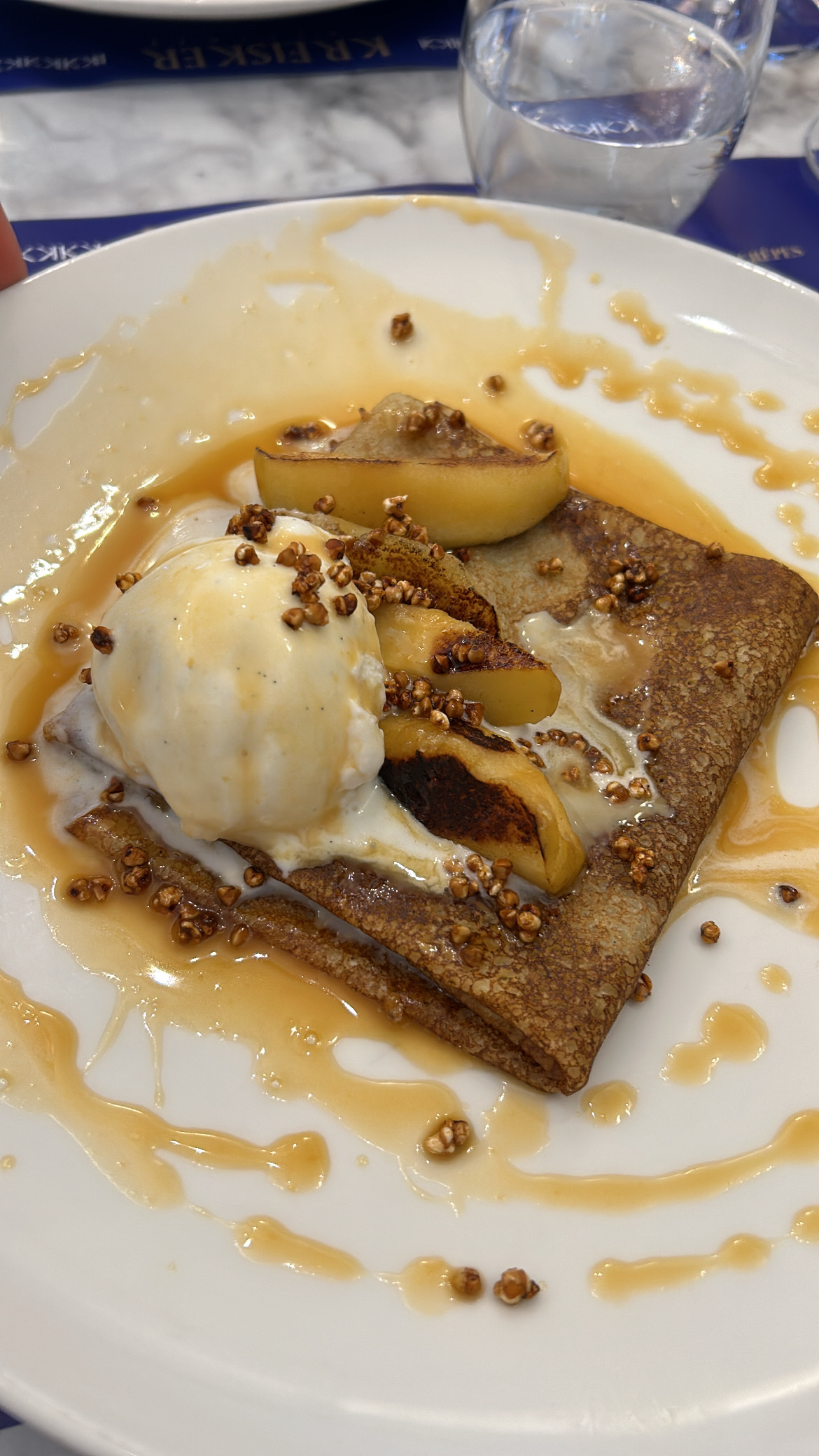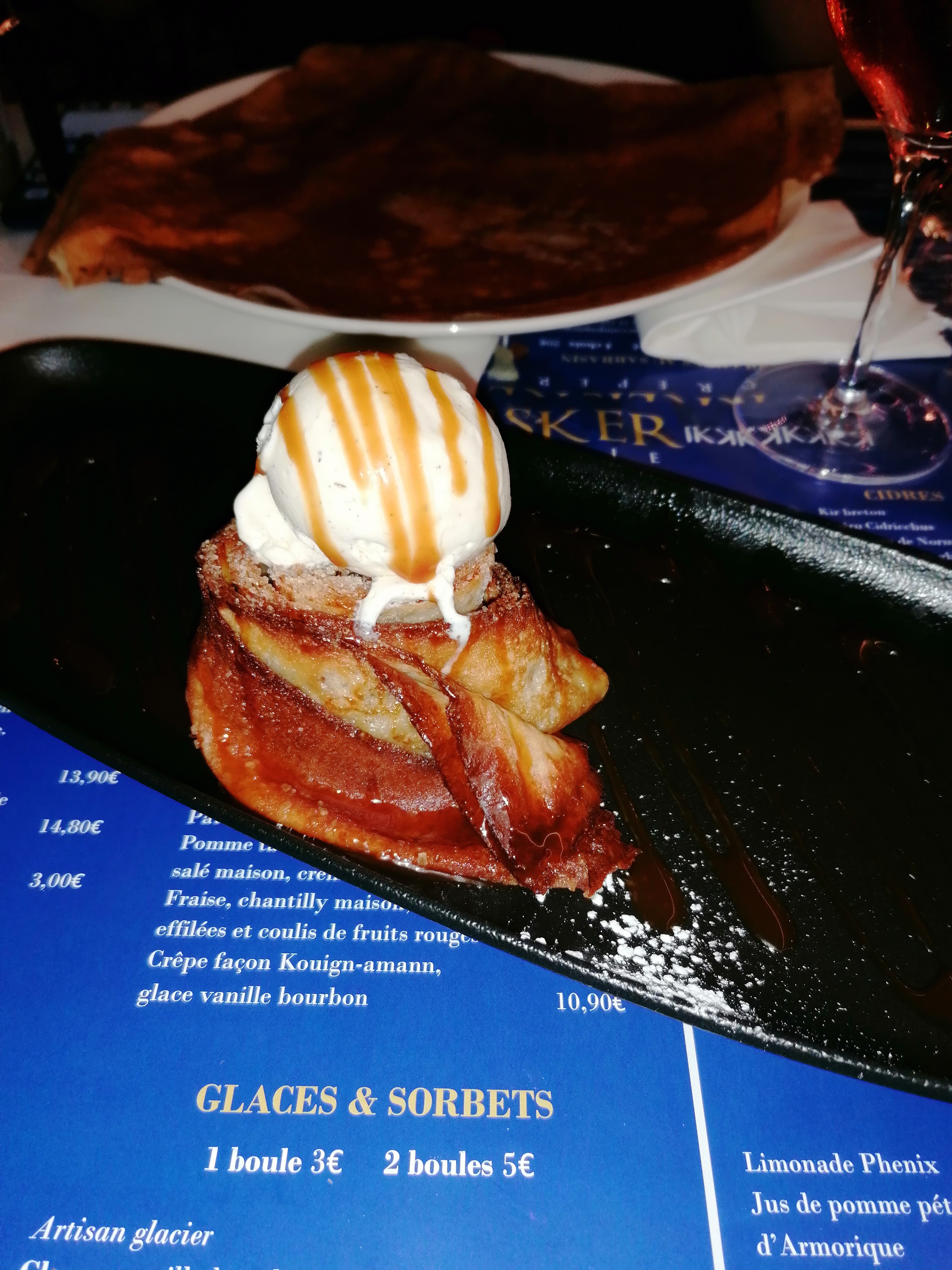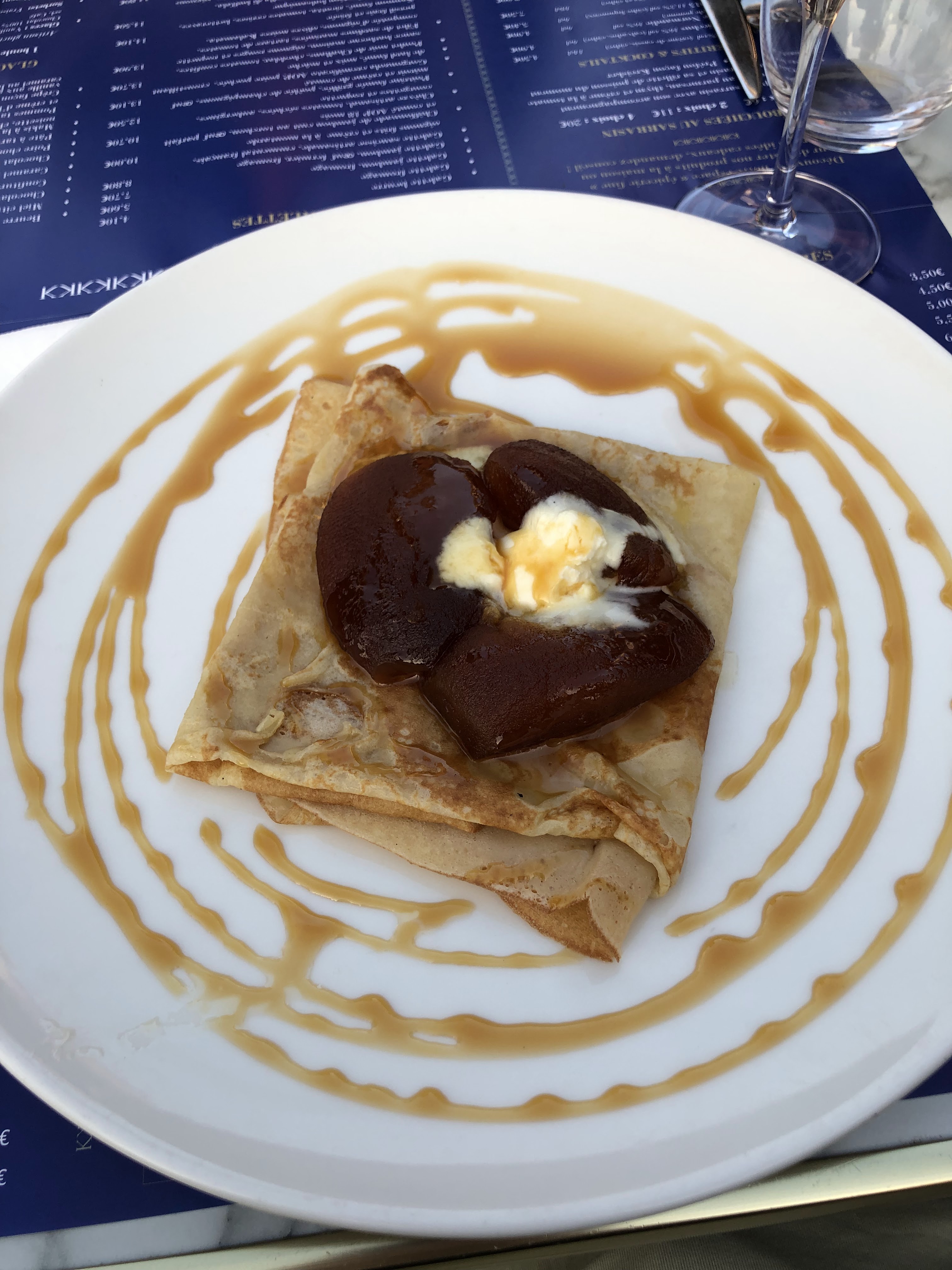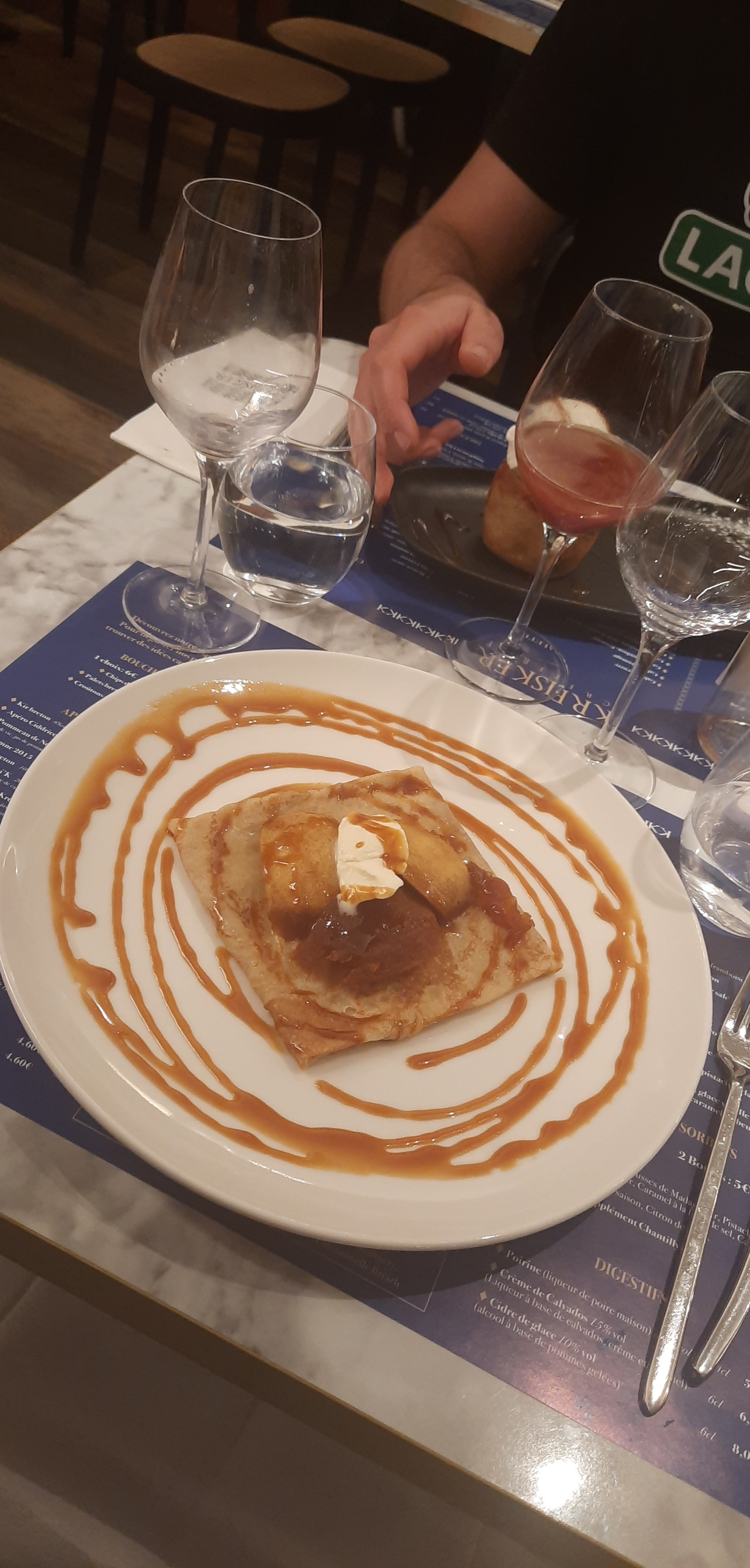 Bonne galette mais servie pas assez chaude (tiède) Crêpe beurre salé avec pommes caméralisées excellente très bonne qualité prix
