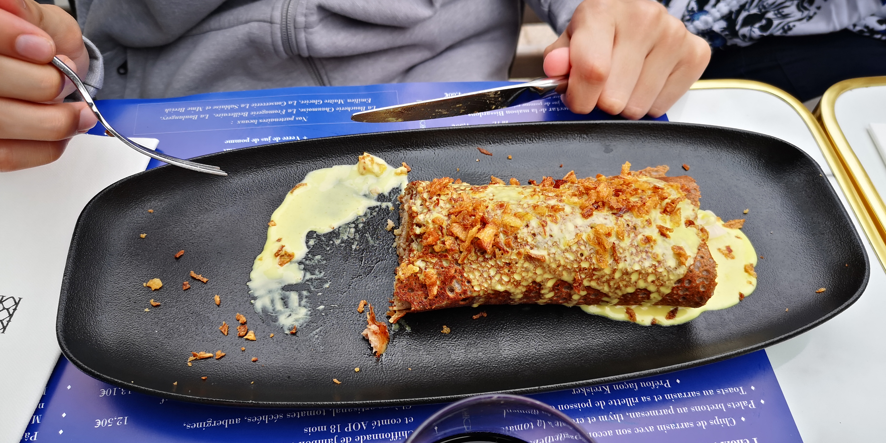 Nous avons réservé une table pour 6 ce midi et comment vous dire que l'expérience était extraordinaire. Serveuse adorable et cuisine goûteuse. On est loin de la vulgaire crêpes jambon fromage sans goût. Nous sommes d'origine bretonne et nous avons rarement manger d'aussi bonne galette. Le prix est justifiée au vu de la qualité des produits. Seule les bols de salades sont un peu onéreux et encore. Le décor est magnifique. Je vous le recommande les yeux fermés. Nous reviendrons sans hésiter si nous sommes de passage dans la région.