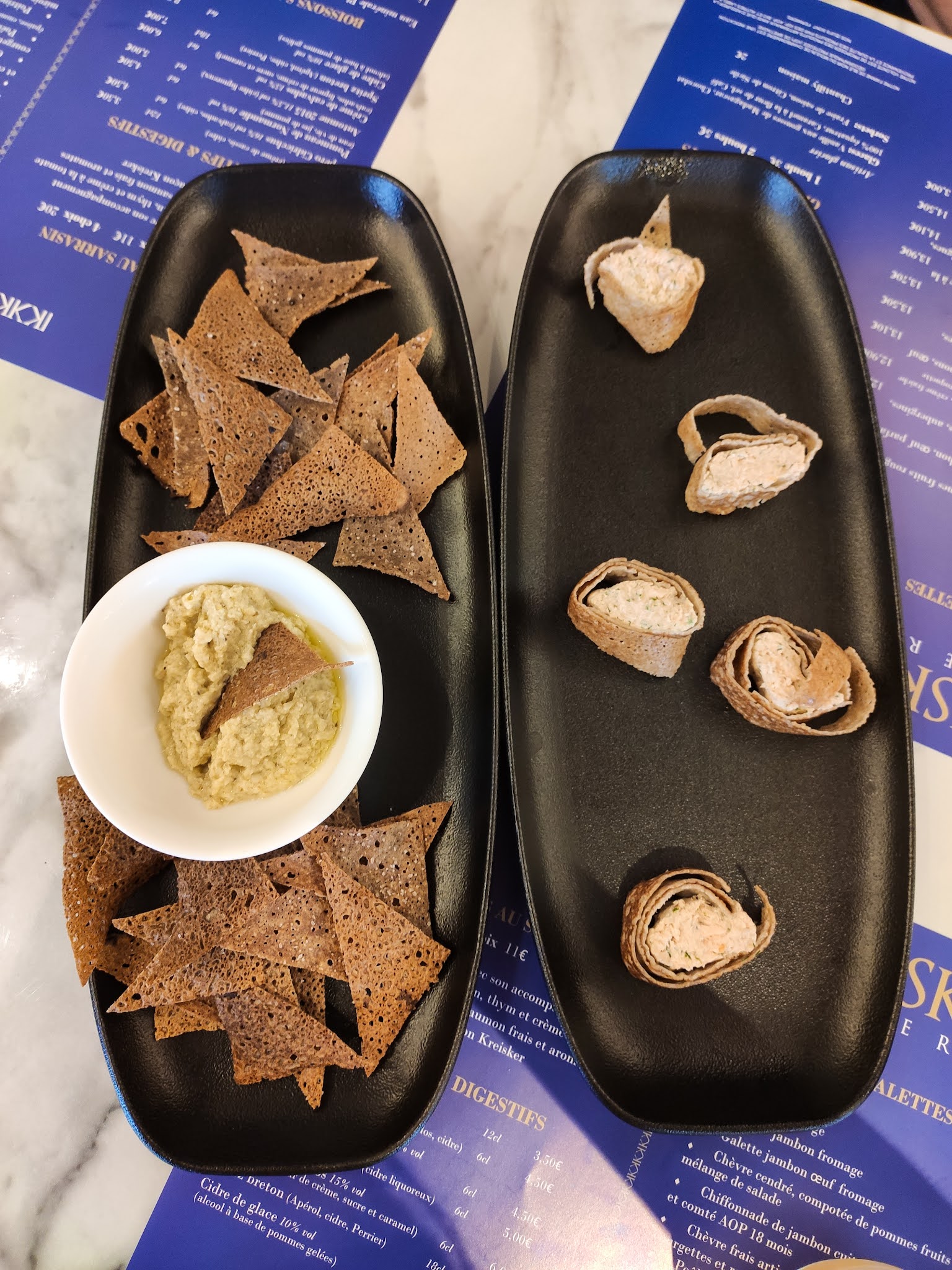 Super bon repas! Les apéritifs sont tous très bon, notamment les prefou, petite préférence pour celui à la tomate. Ensuite les galettes en plats sont revisité façon gastro et ça passe très bien Et petite crêpe en dessert très bonne, avec Chantilly faite maison. Les cidres sont aussi bien bon. Accueille chaleureux et charmant. Bonne ambiance. Et si besoin ils vous conseillent très bon. À refaire sans hésitation !