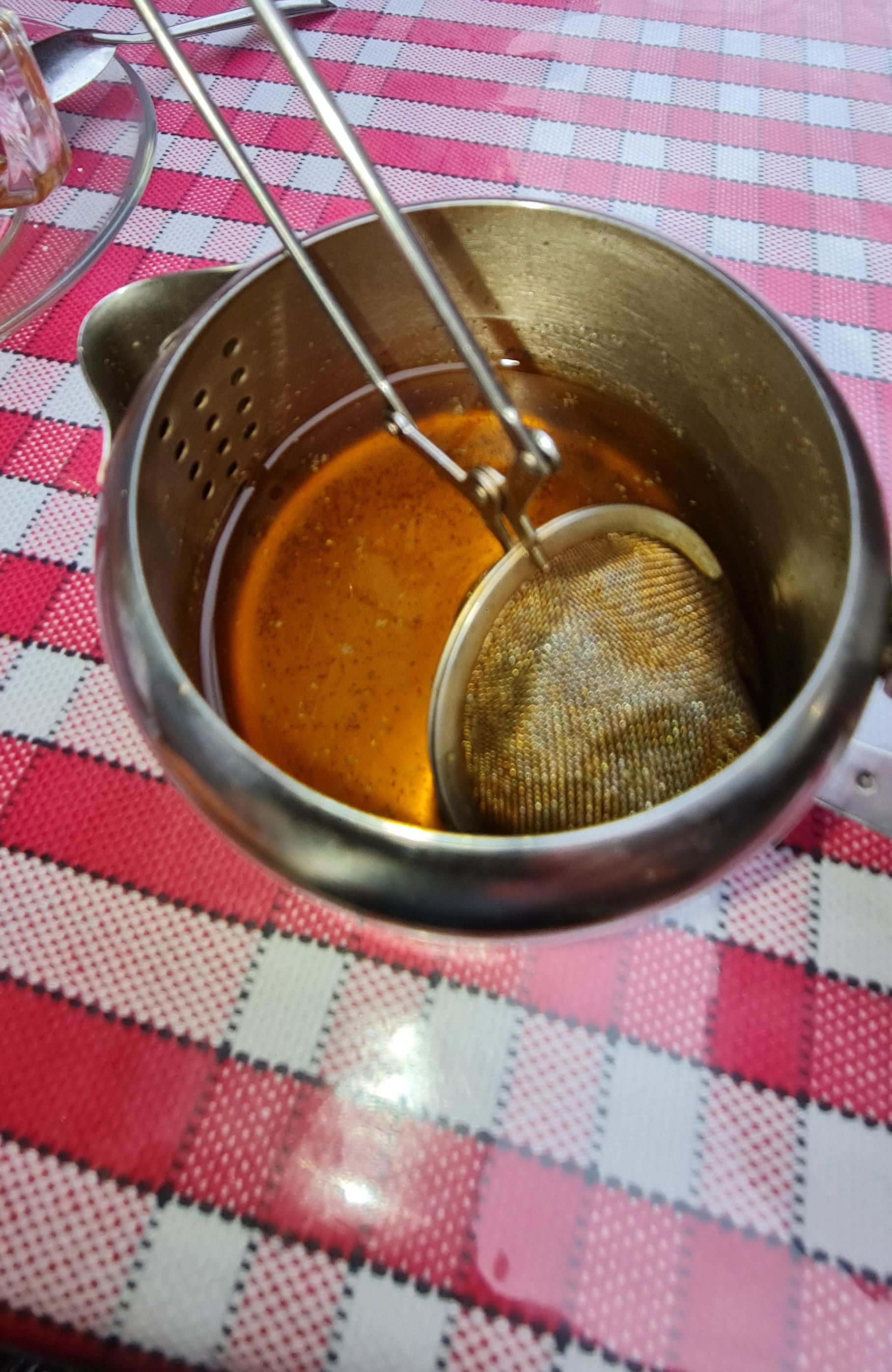 Ne commandez surtout pas de thé... il est imbuvable Le matériel est rouillé. La boule à thé ne maintient plus rien. La terasse se trouve à côté des toilettes publiques... pas top