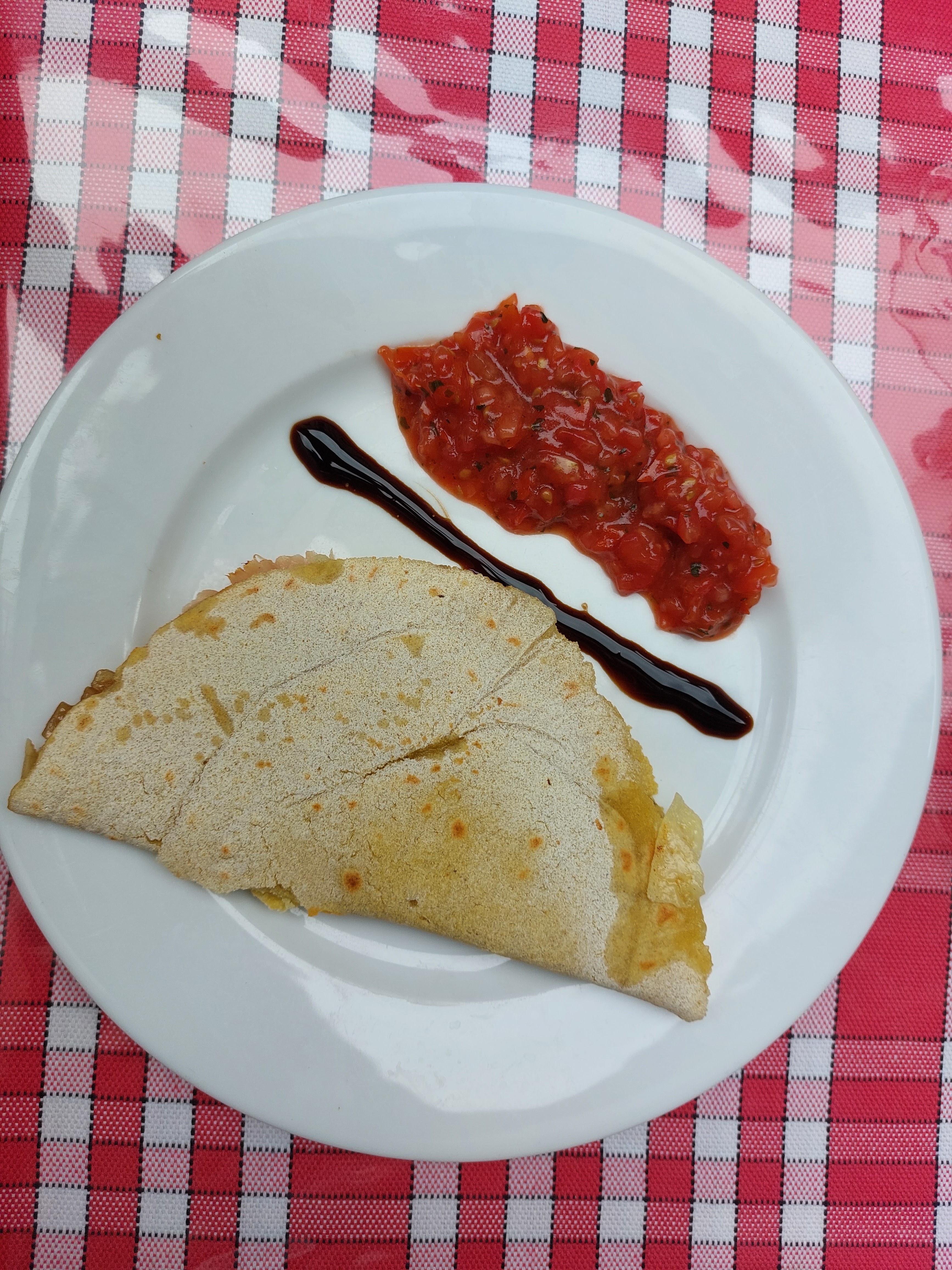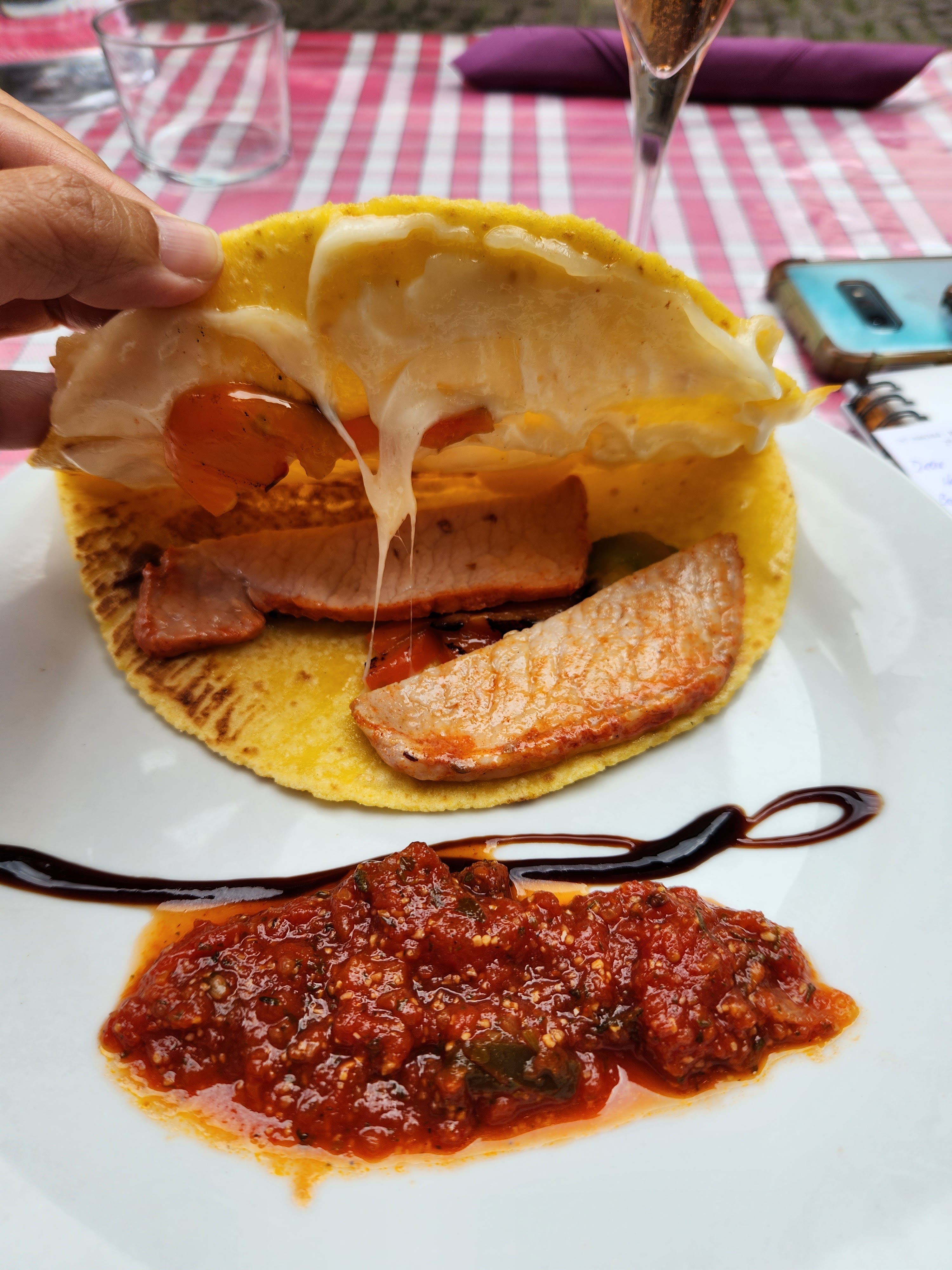 L'endroit est cosy. Nous avons mangé en terrasse car c'était une bonne soirée et le restaurant est situé dans une rue très sympa et agréable. Nous avons commandé un taco au poulet au curry exotique et un autre taco au fromage pour 8,5 €/unité. Nous l'avons trouvé cher pour ce que c'était, un rapport qualité/prix faible. Je recommanderais l'endroit pour s'asseoir et prendre un verre plutôt que pour manger.