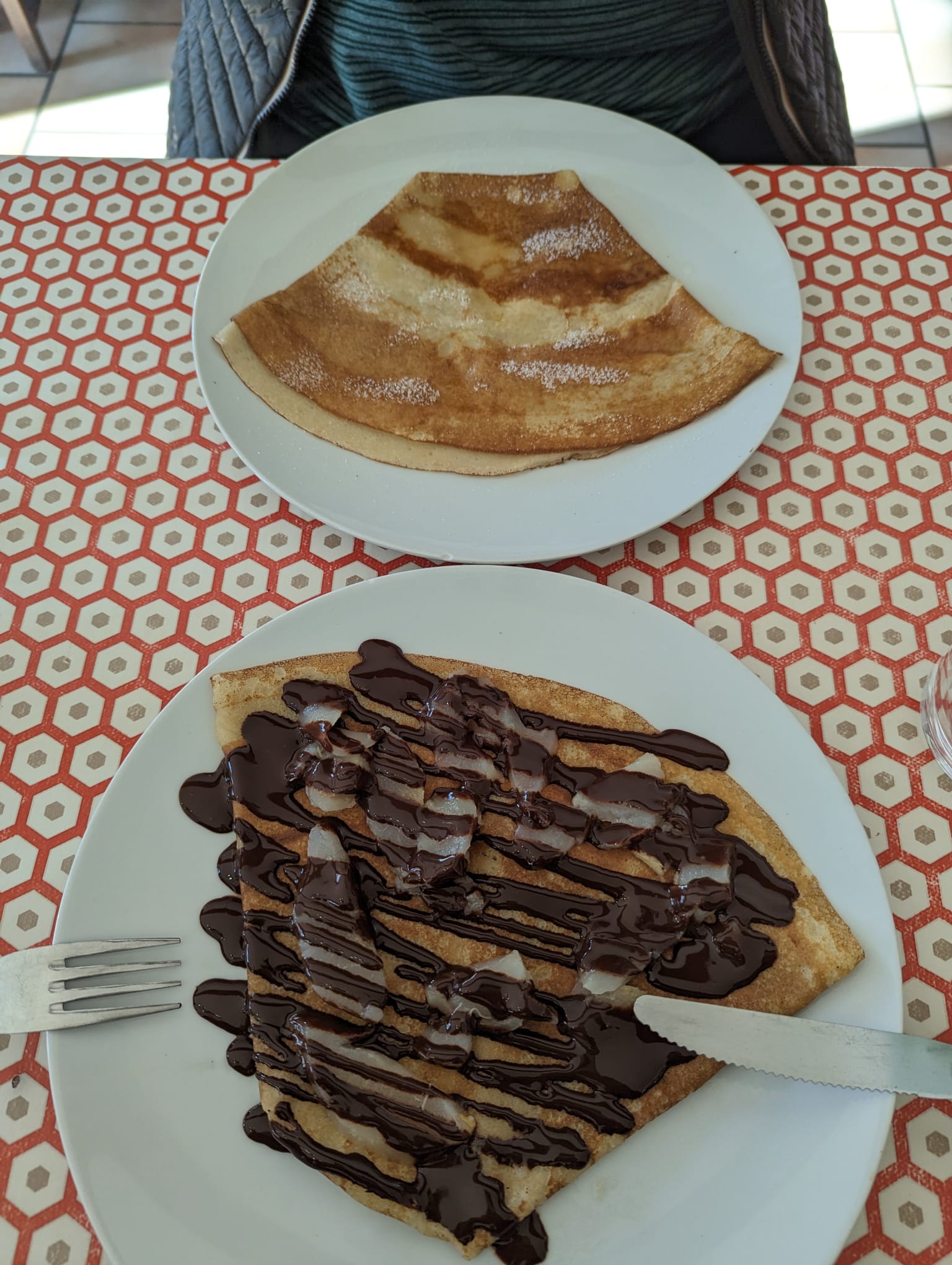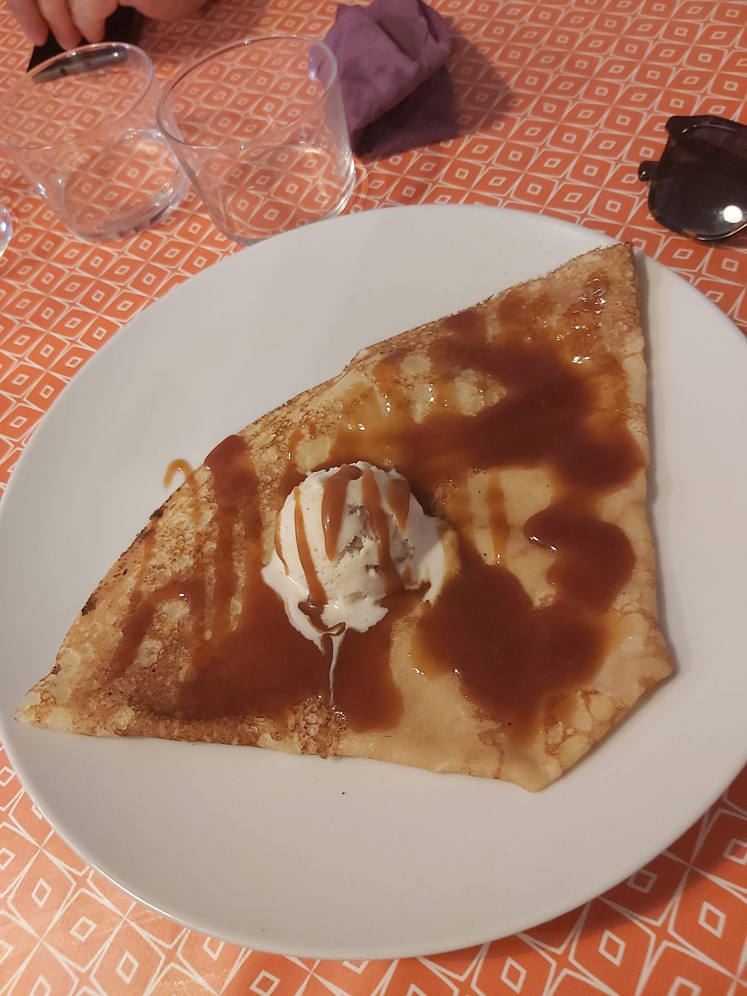 Nous avons apprécié la crêpe la plus délicieuse assise dehors à la fin du service religieux. Super endroit pour observer les gens ainsi qu'un endroit fabuleux pour dîner.