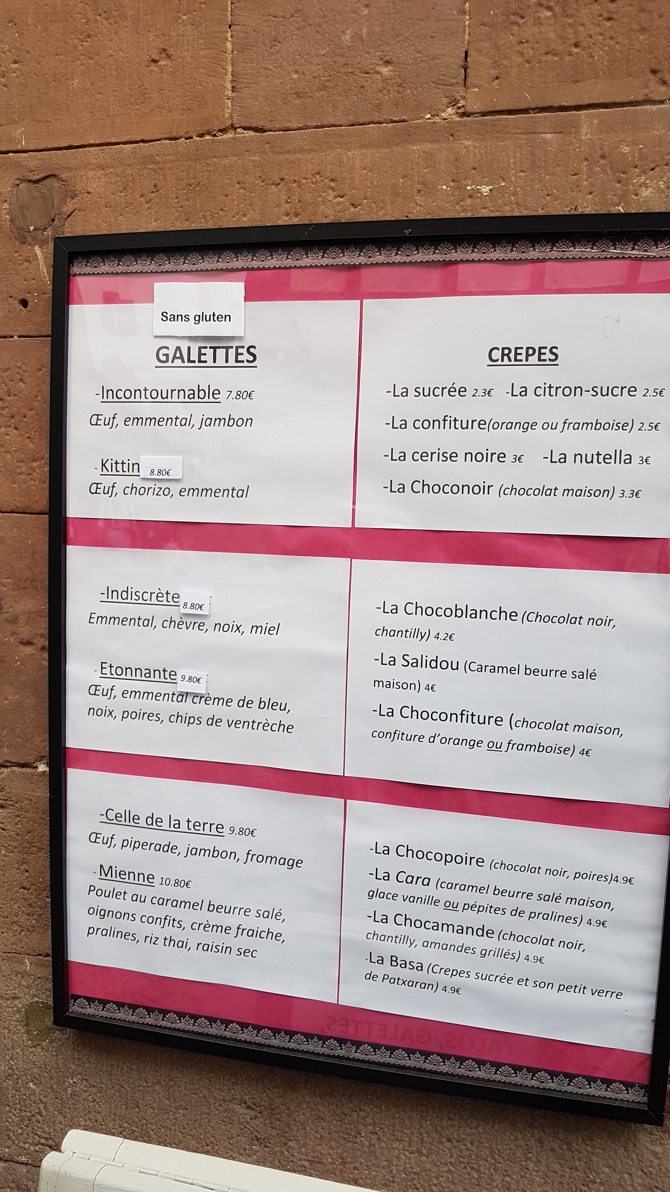 Restaurant avec une grande variété de Gallettes. Ils sont très riches. A boire, il y a de la bière basque traditionnelle et du cidre artisanal. En dessert, des crêpes avec de nombreuses possibilités. Le prix est assez bon marché, surtout compte tenu du prix élevé de la plupart des restaurants de la ville.