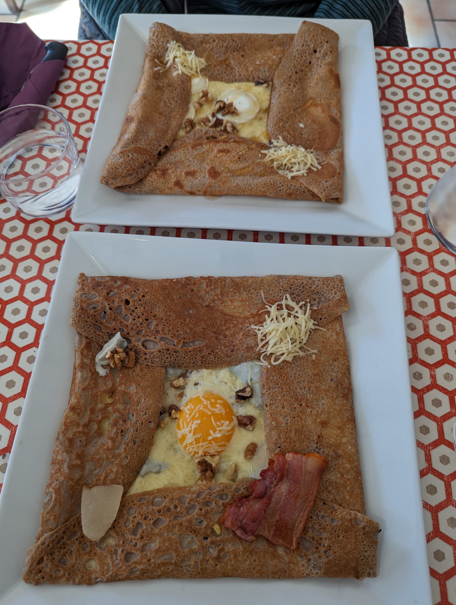De délicieuses galettes, nous avons commandé Mienne et Nafarroa. J'ai adoré La Mienne, Nafarroa manquait de gp, cela me paraissait rare et trop simple. En dessert, la Cohoconfiture et la Chocoblanche. Accompagné de cidre basque. Le tout très délicieux et dans une ambiance très agréable.