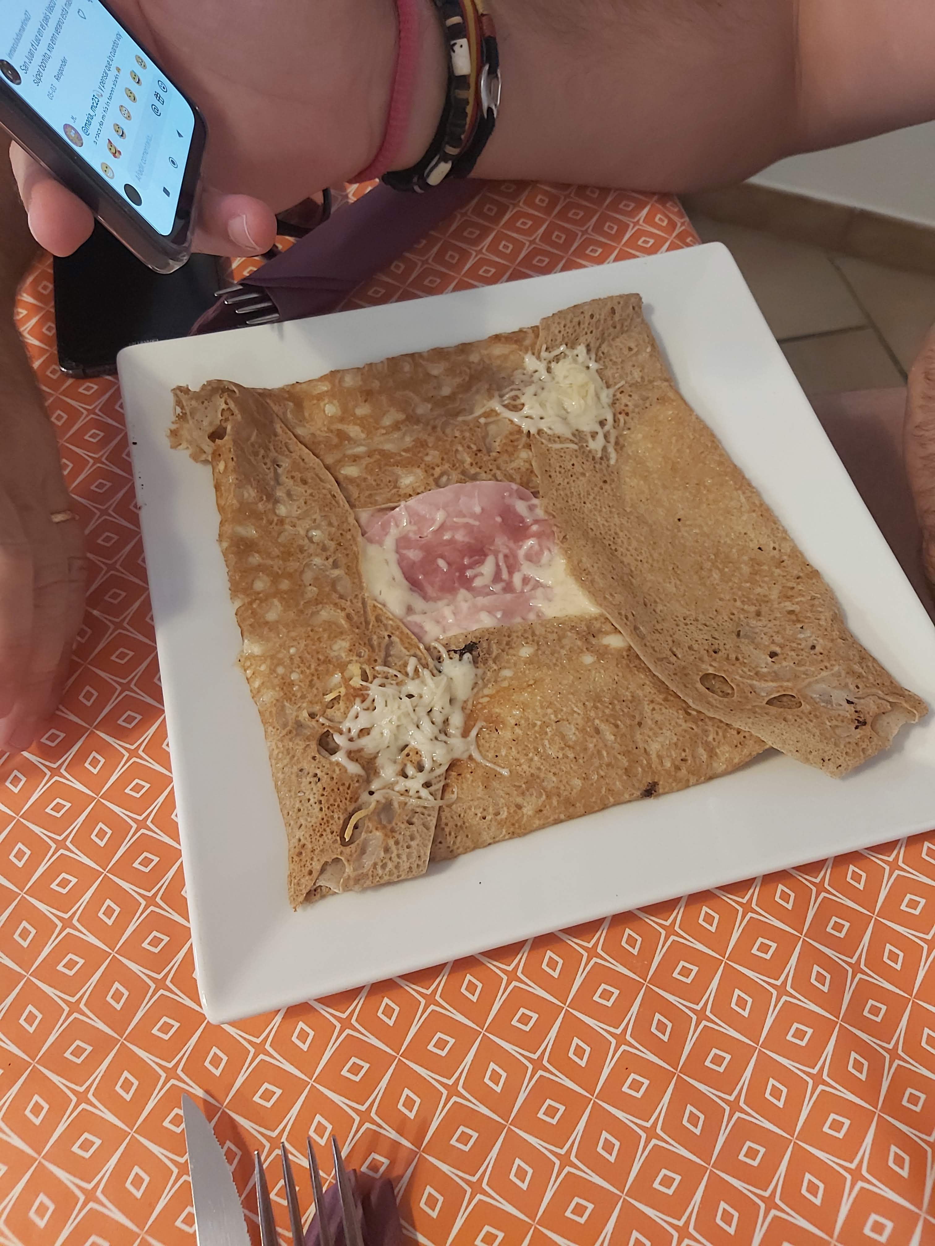 L'emplacement est bon et l'endroit est magnifique, mais cela nous a déçus. Les crêpes salées étaient natures, assez sèches et très cuites, les sucrées étaient meilleures mais elles mettaient tellement de temps à les apporter que nous en avons perdu l'envie. Le service ralentit un peu à mesure qu'il se remplit. Je pense qu'il vaut mieux prendre un café et une crêpe au chocolat que manger.