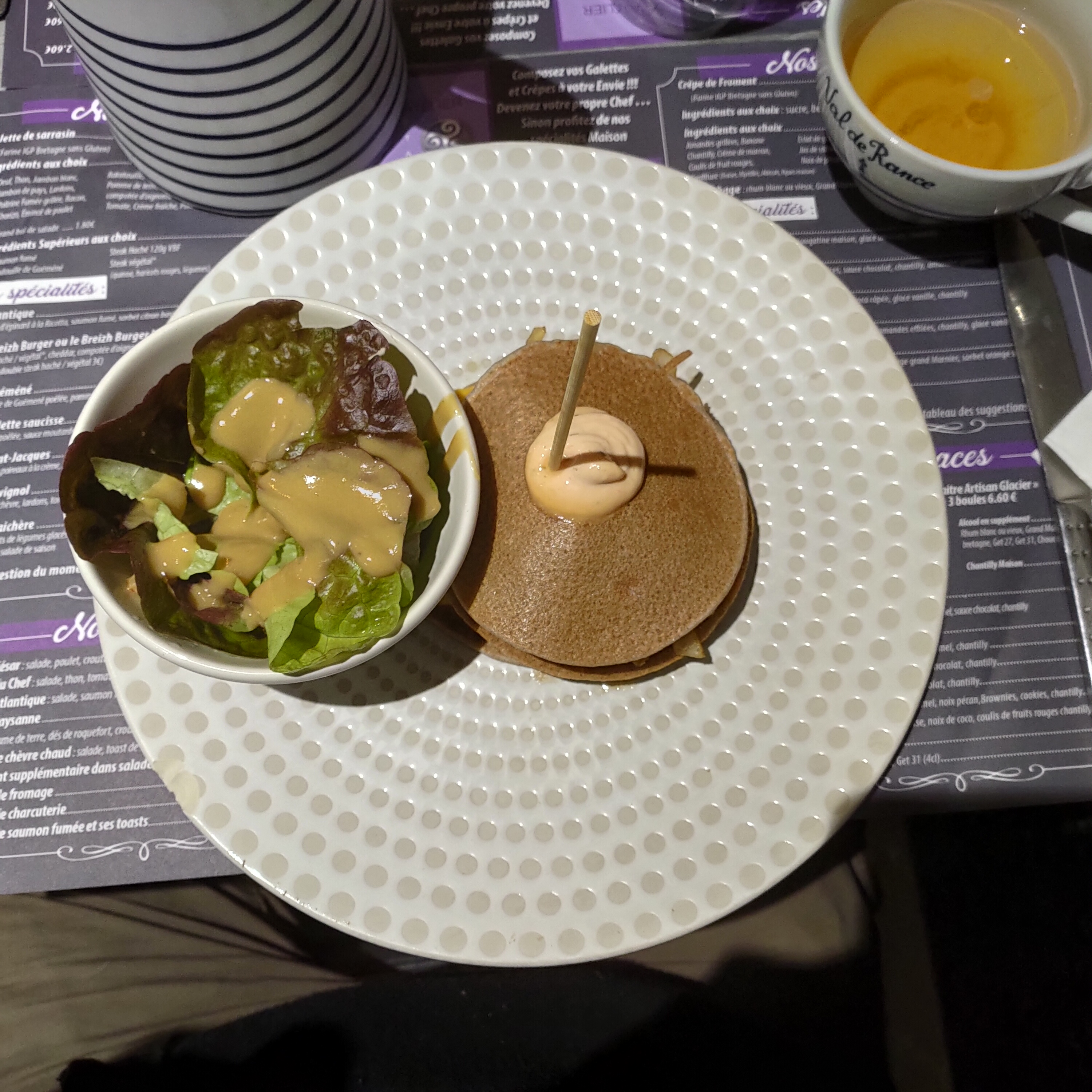 Pain dur, les crêpes n'étais pas aussi bonne qu'avant et peu de salade pour accompagner les accompagnées.