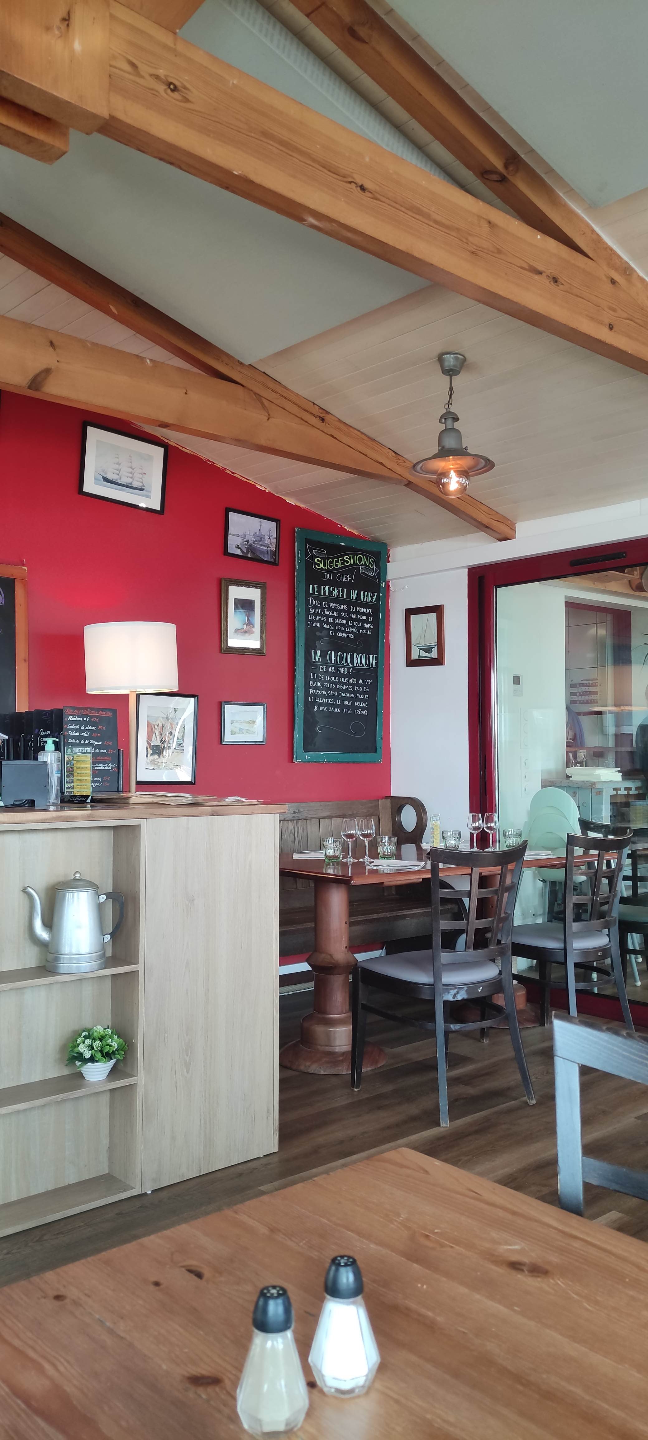 Bar face à la mer, cadre intérieur superbe et chaleureux, tout en bois, nous avons discuté avec le patron très sympa, cidre à la tireuse délicieux.