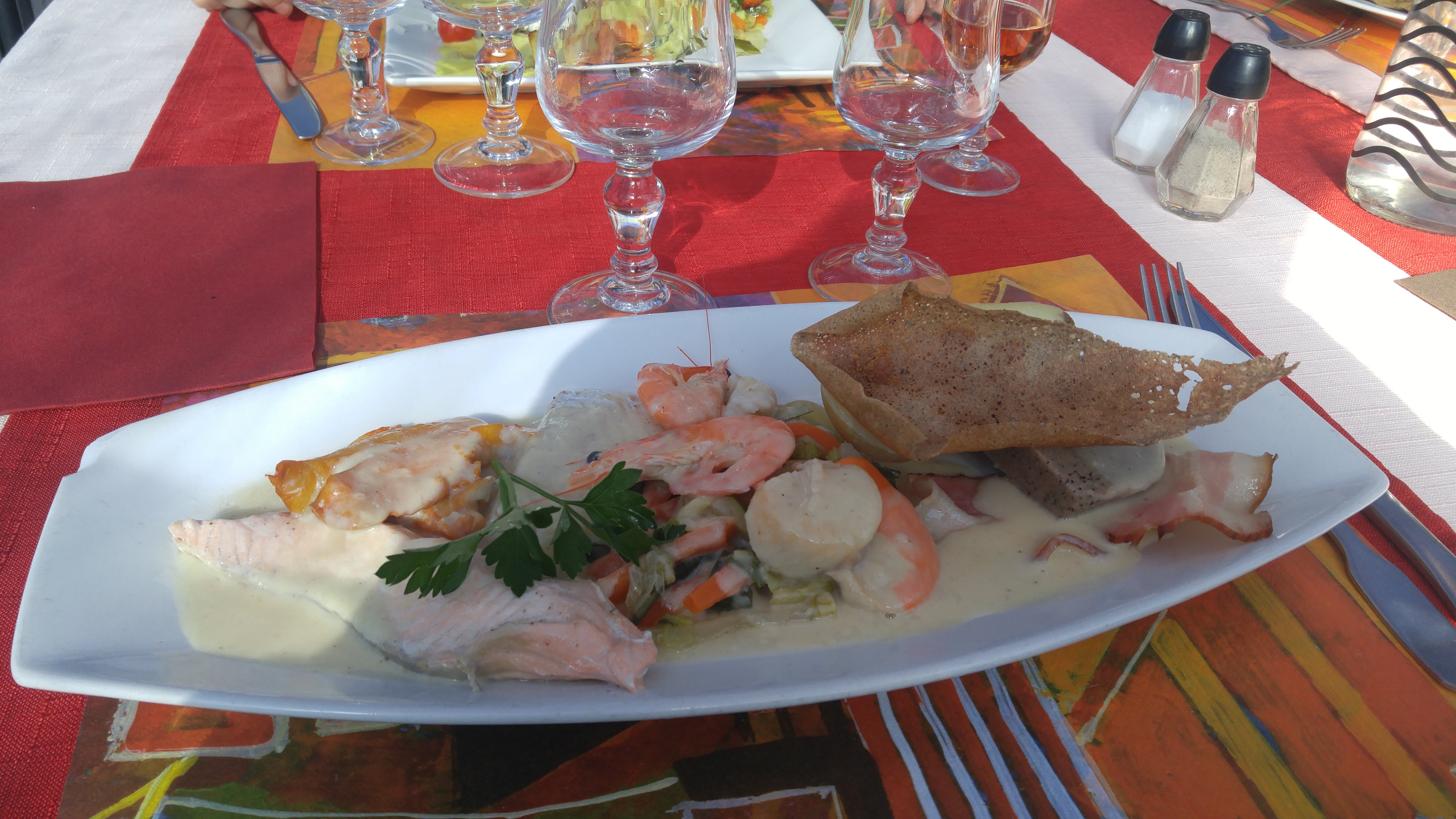 Parfait et si en plus vous avez la chance que le ciel soit dégagé, en terrasse vous aurez droit à ce paysage qui ne gâche rien! Service très agréable. La crêpe Saint Jacques sauce maître d'hôtel à tomber. Coup de coeur allez y sans hésiter!