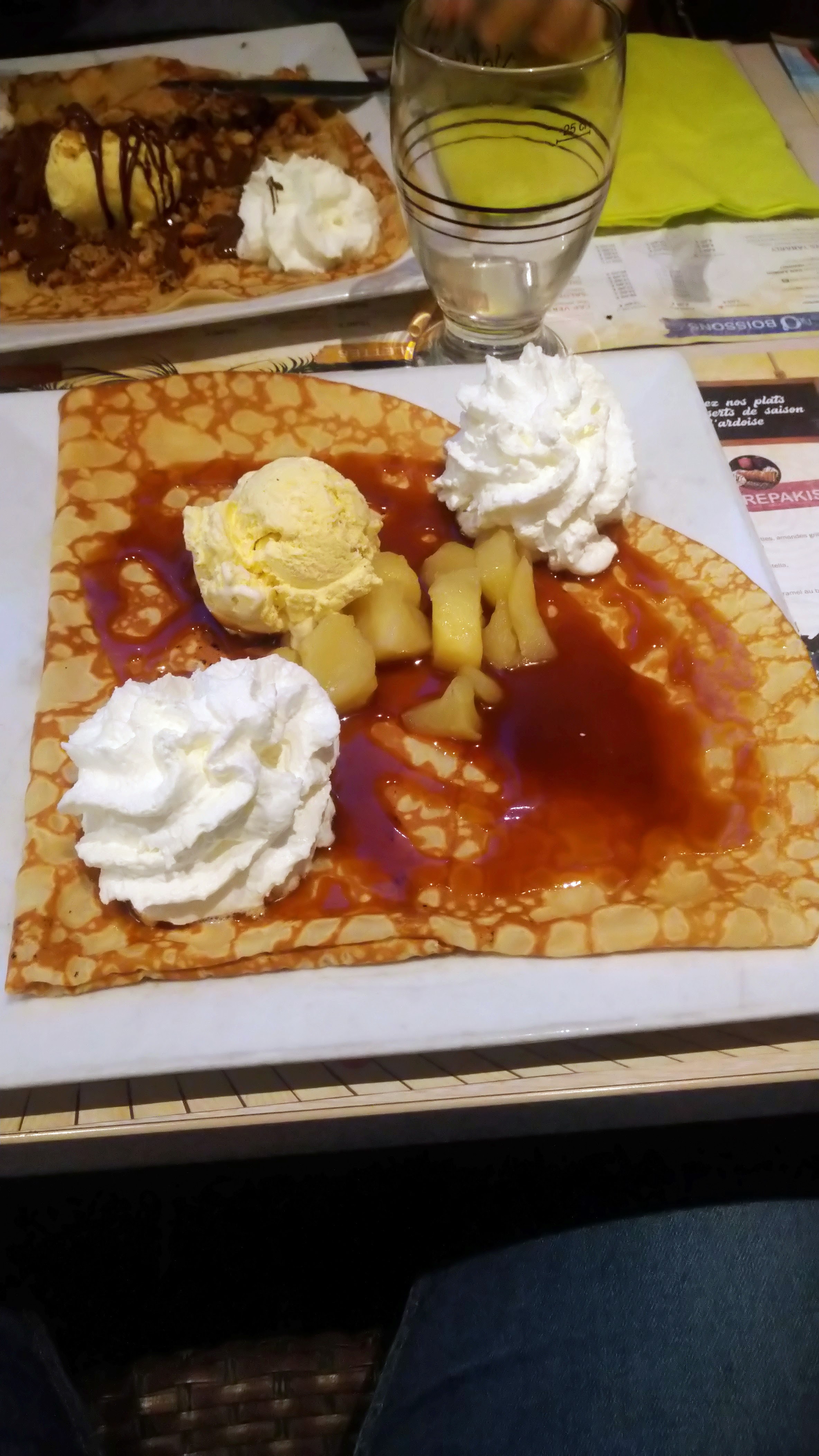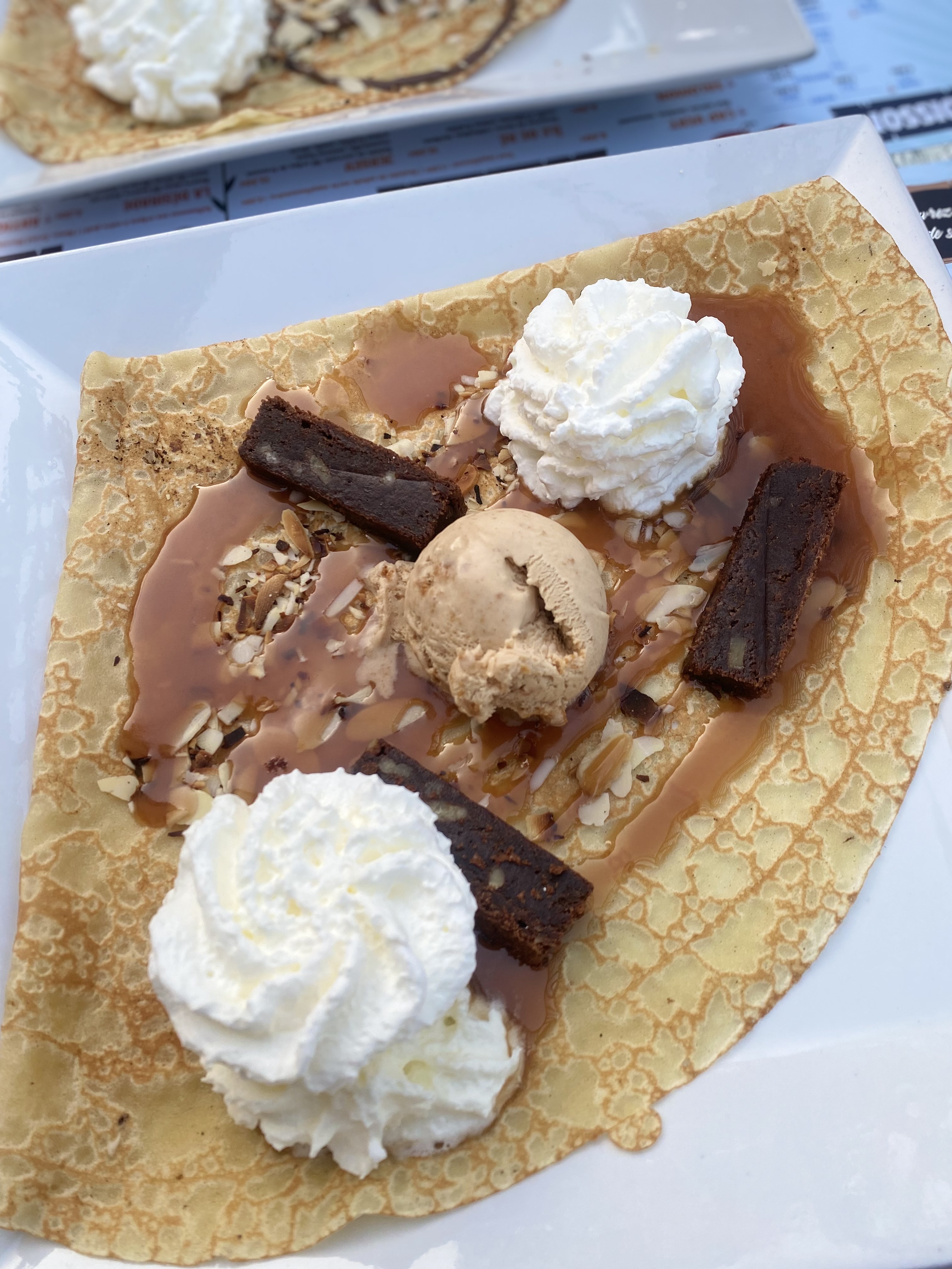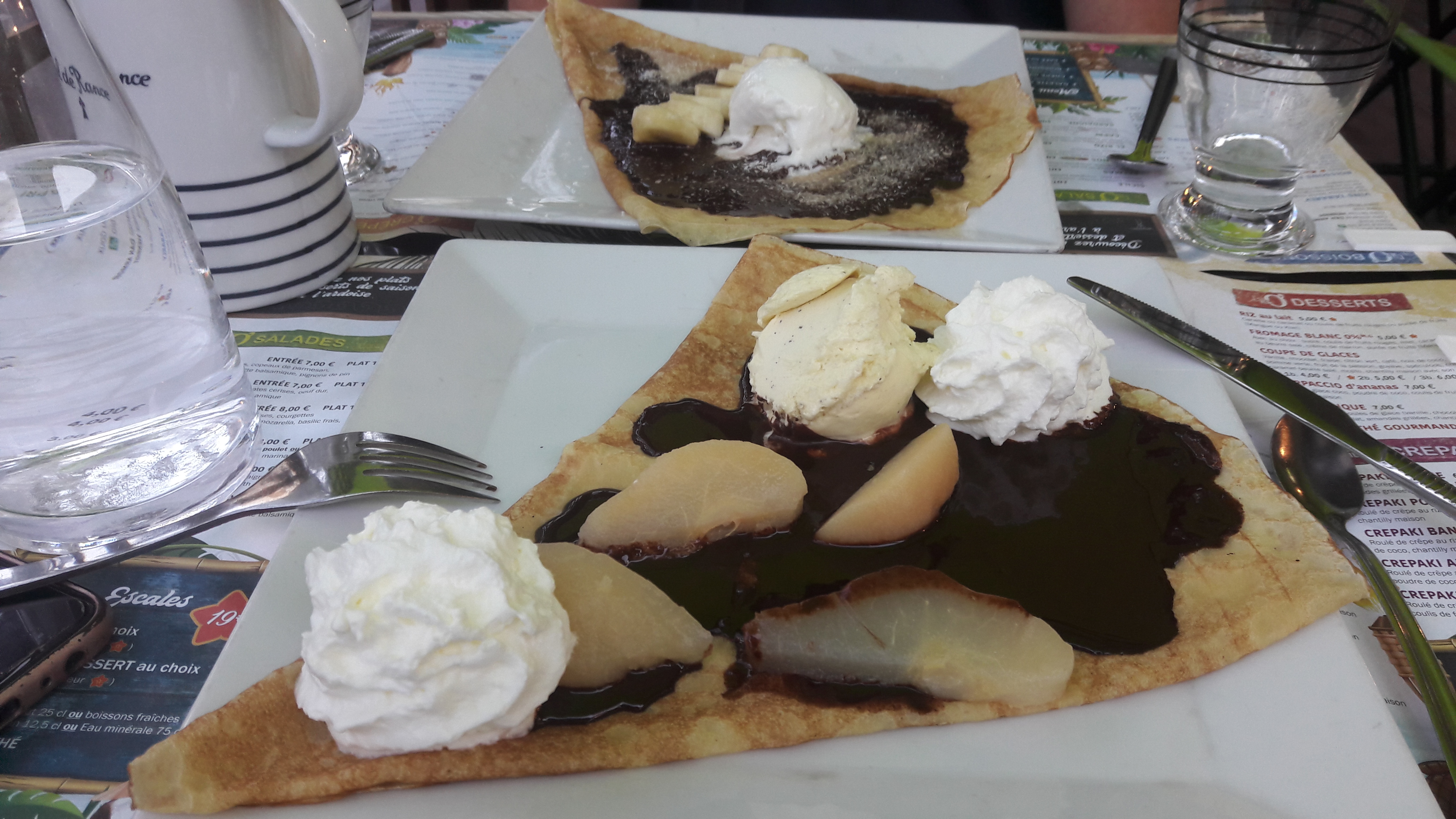 Grandes variétés de galettes et crêpes sucrées. Très bon!