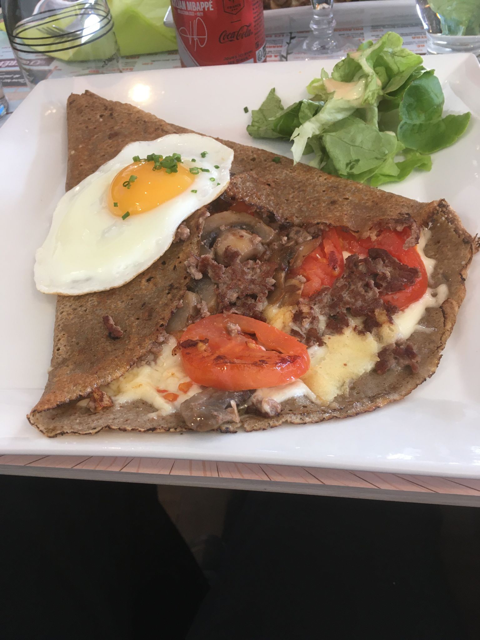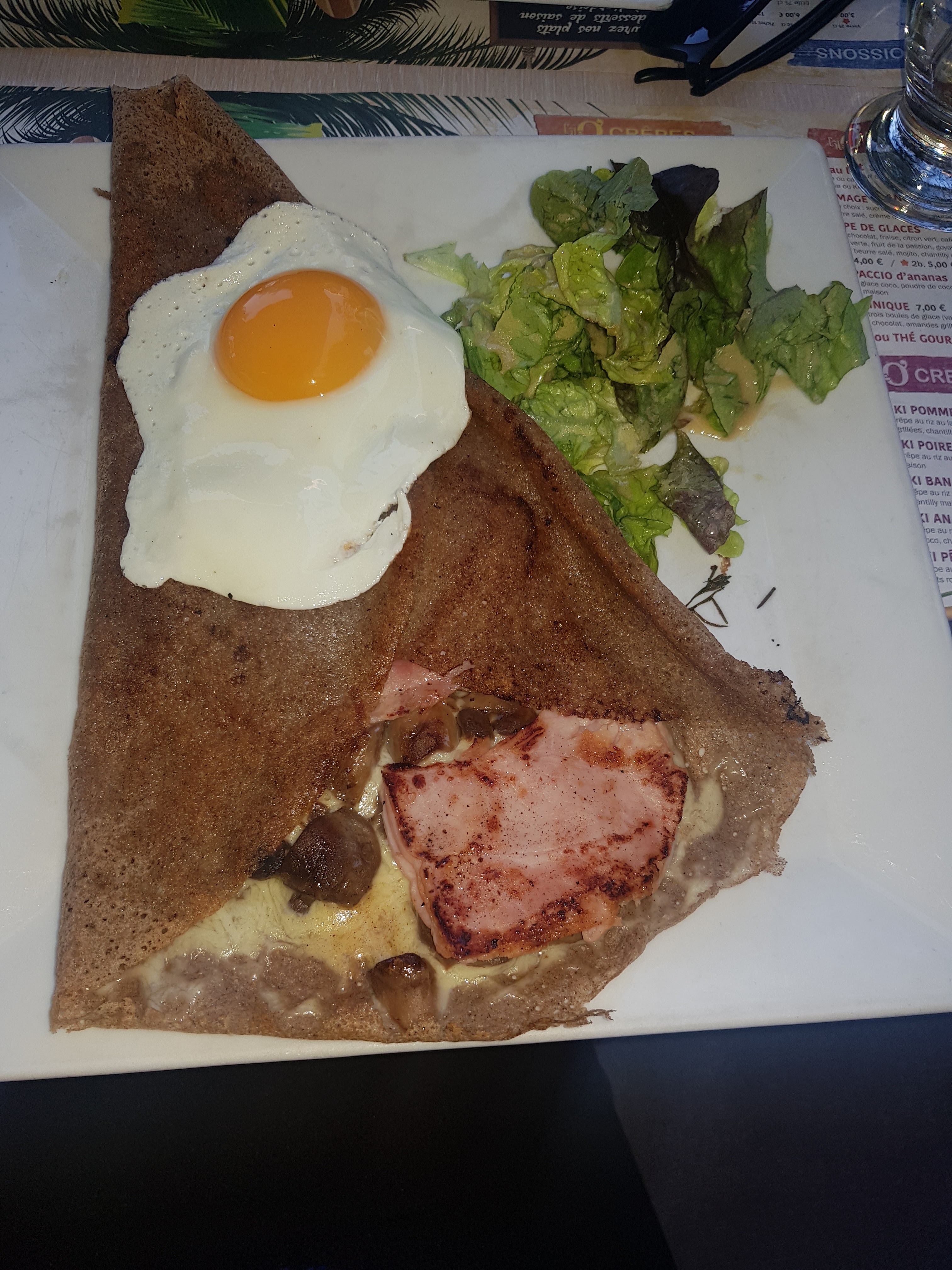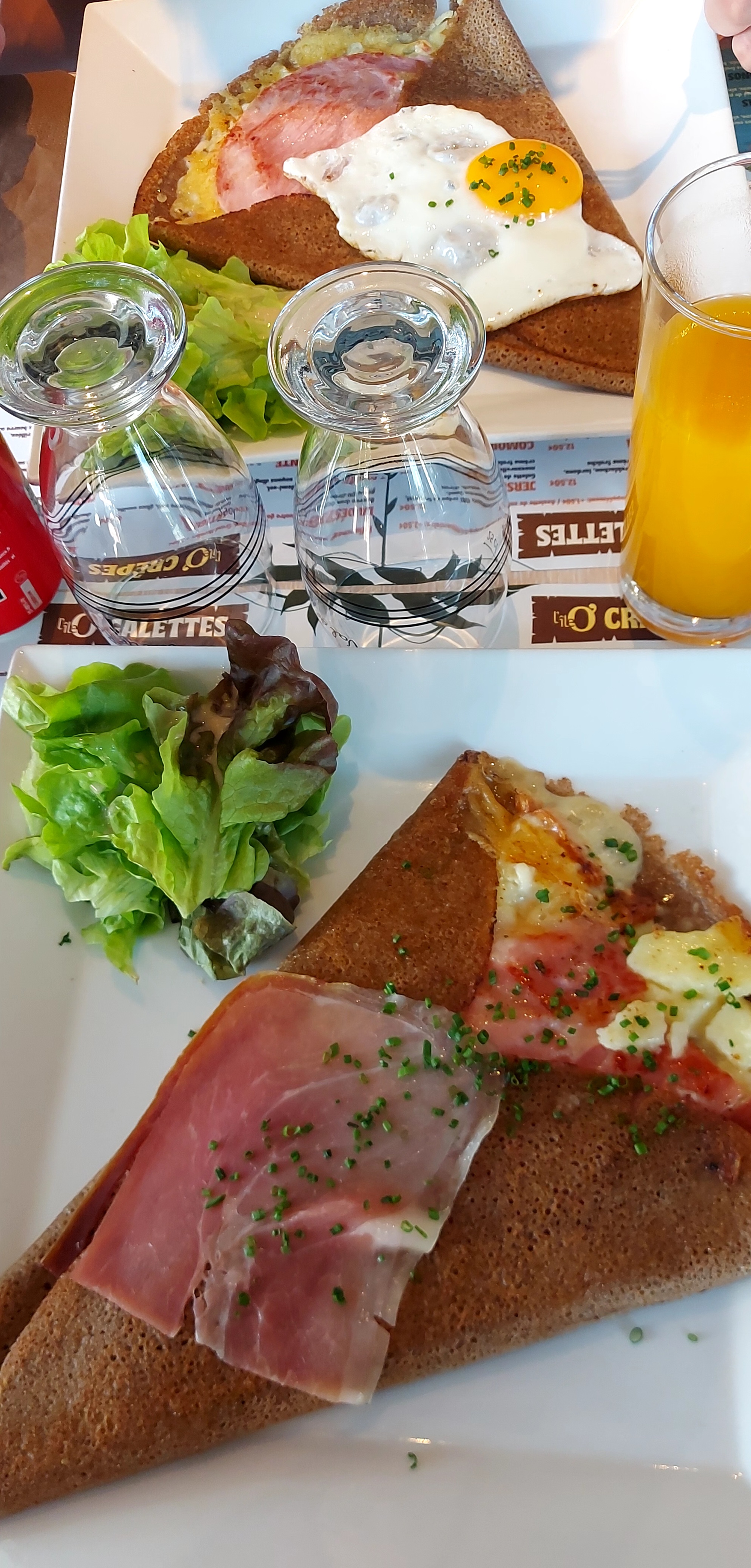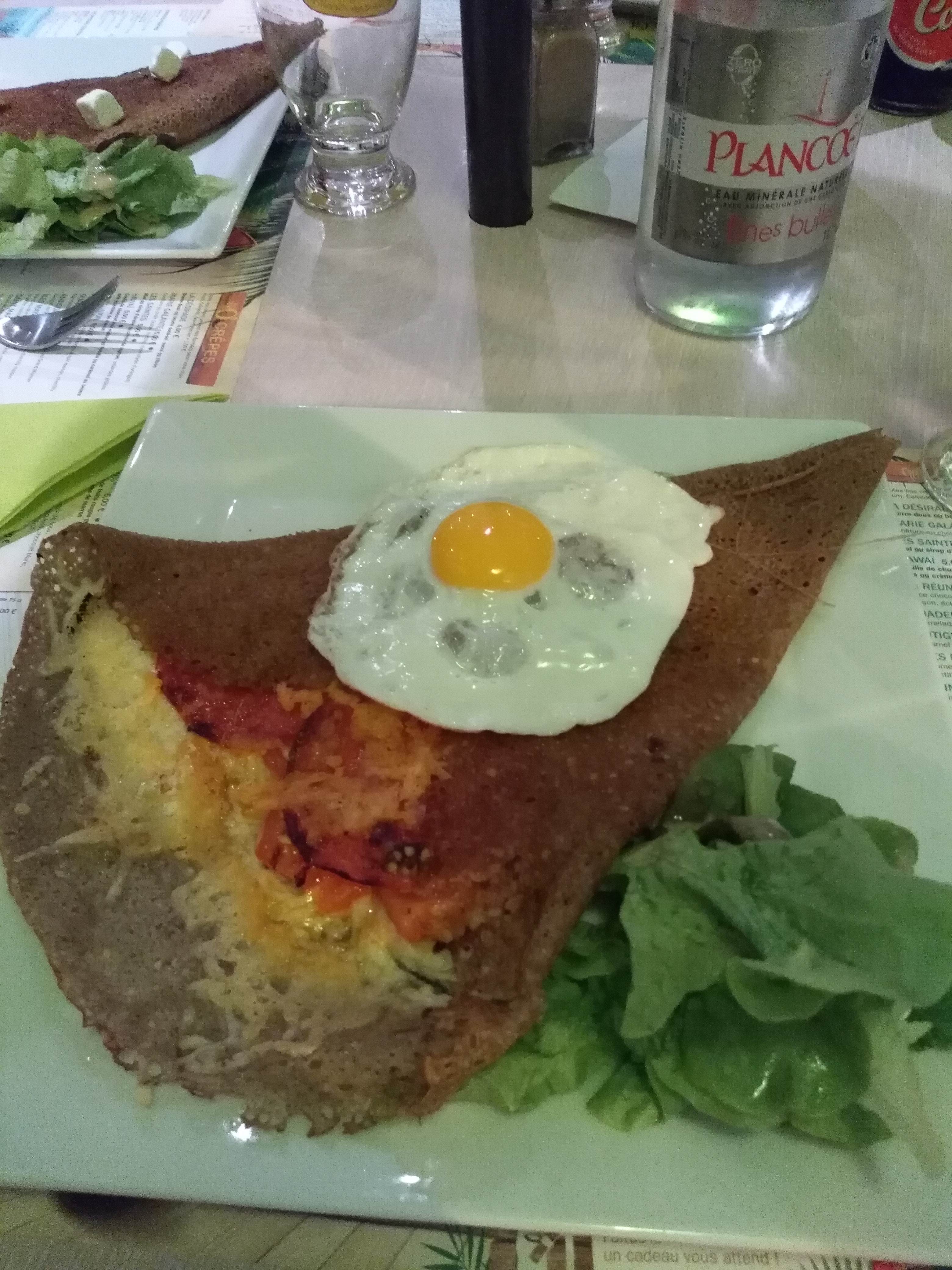 Galette cuite à l'avance et réchauffée au dernier moment ! Horrible ! Très déçu ! Crêpe sucrée bonne.